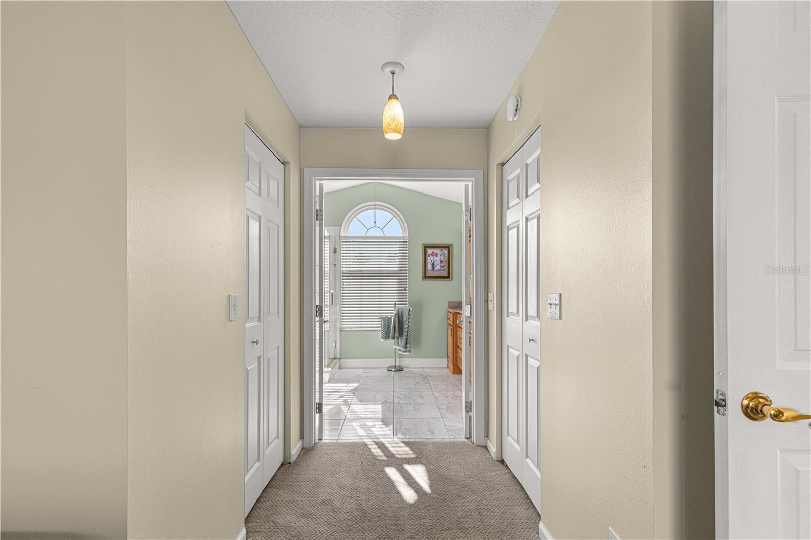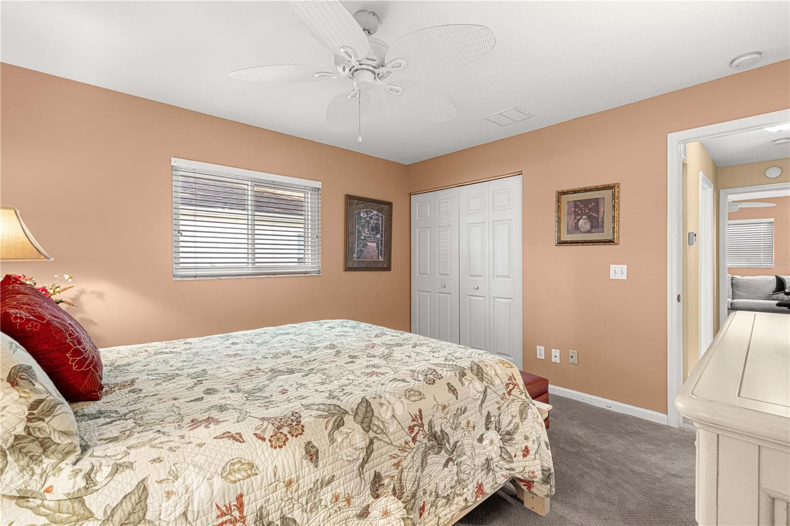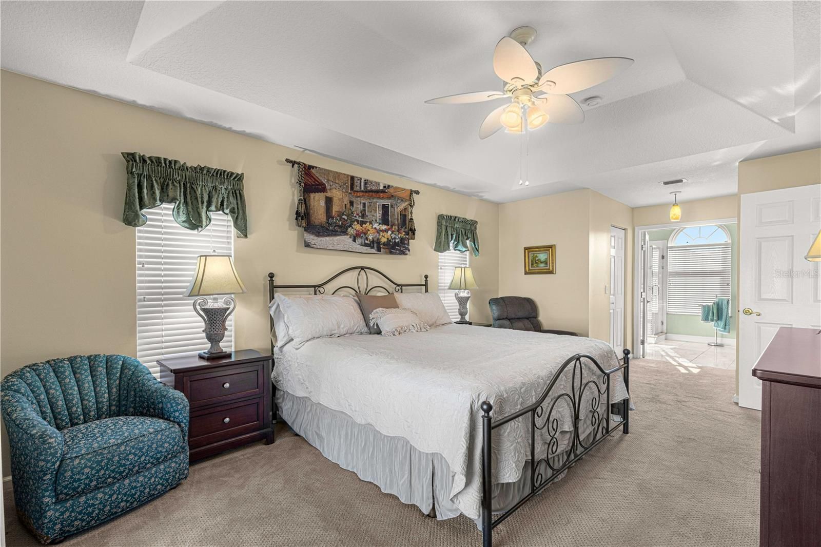 - Ceiling Fan(s), Eat-in Kitchen, High Ceilings, Living/Dining Room, Solid Surface Counters, Solid-Wood Cabinets, Split Bedrooms, Stone Counters, Thermostat, Tray Ceiling(s), Walk-In Closet(s)