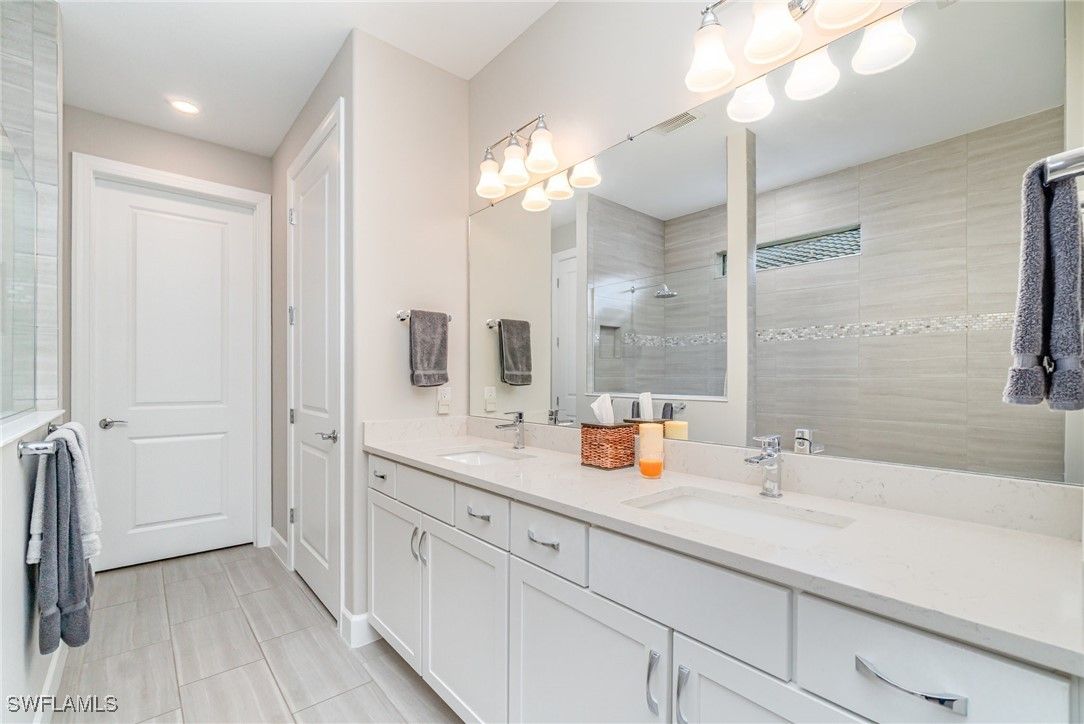 Exceptional Pulte Summerwood home perfectly positioned on a premium lakefront lot with expansive, southwest-facing views, ideal for enjoying breathtaking sunsets from the extended lanai, which is designed to accommodate a future pool. This 3-bedroom, 2-bath residence features over $82,000 in builder upgrades, along with high-end owner enhancements, all within a meticulously maintained home. Interior highlights include designer tile flooring throughout, 9’ ceilings, 8’ doors, and a spacious open-concept layout. The gourmet kitchen boasts upgraded white maple shaker cabinetry, quartz countertops, stainless steel appliances, a vented range hood, reverse osmosis system, tile backsplash, and under-cabinet lighting. The luxurious owner’s suite offers a massive 14’x10’ walk-in closet, a fully tiled 7.5’ shower, and premium finishes. Smart home wiring includes CAT6 and CATV in every room, surround sound, multiple TV mounting points, and prewiring for wireless access points. The extended garage provides golf cart parking, polyurea floor coating, overhead storage, and whole-house surge protection. Additional features include a Generac 22kW generator with a 500-gallon propane tank, accordion storm shutters, upgraded lighting, window treatments, and a fully finished laundry room. Residents of The Place at Corkscrew enjoy resort-style amenities including a grand clubhouse, restaurant and café, state-of-the-art fitness center, resort pool with a 100' waterslide, spa, splash pad, pickleball, tennis, and basketball courts, a covered playground, dog park, and more, offering an unmatched lifestyle in a vibrant, gated community. Conveniently located just 15 minutes from RSW Airport, 10 minutes to shopping and dining, and 30 minutes to Bonita Beach and Barefoot Beach.