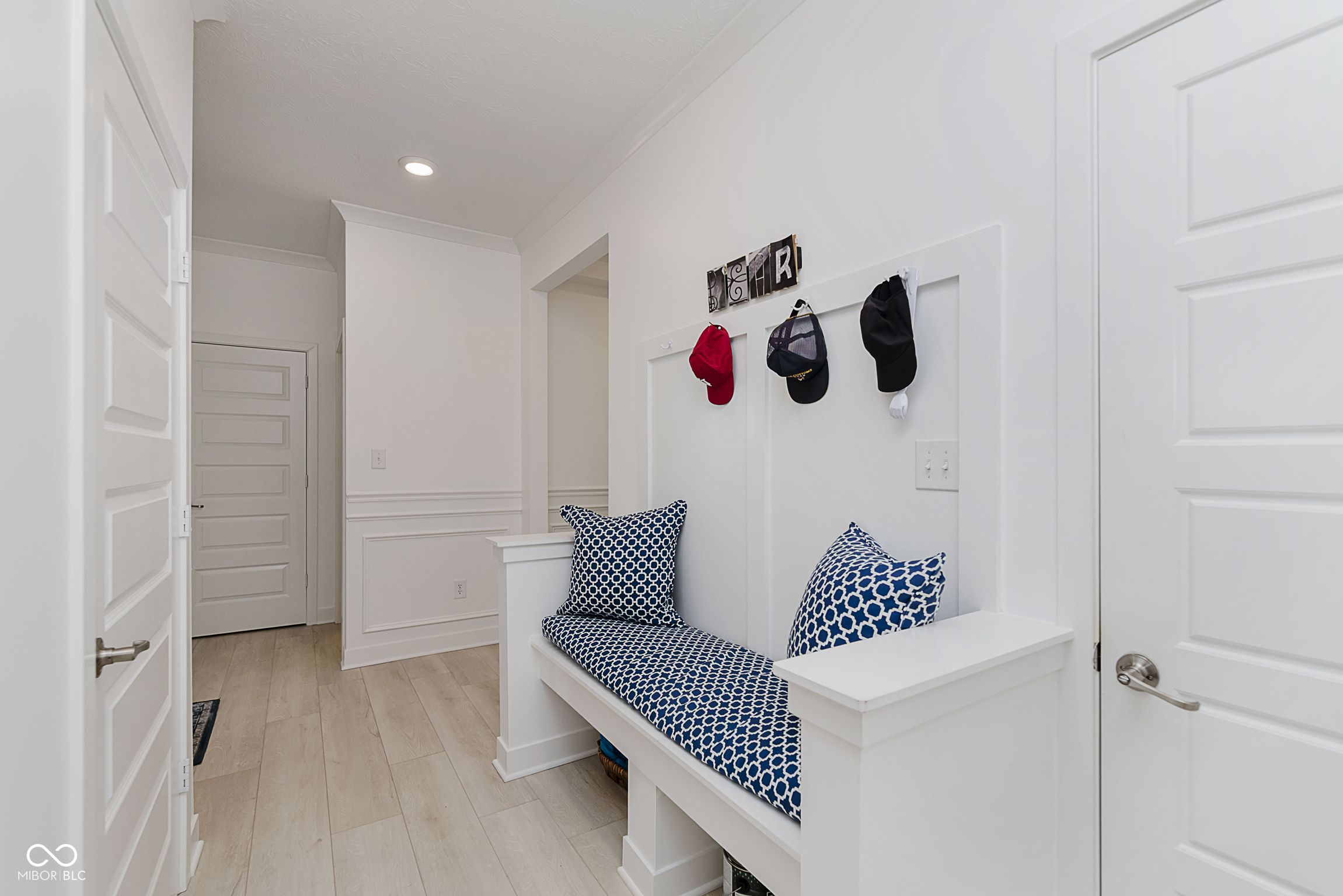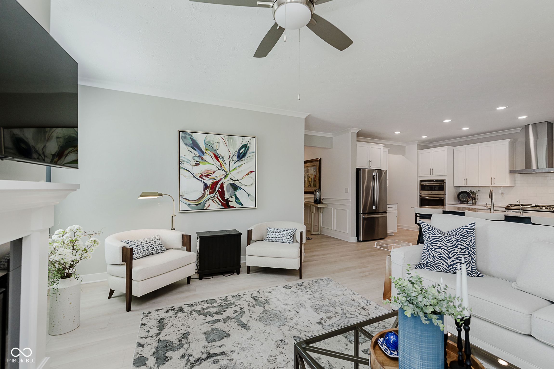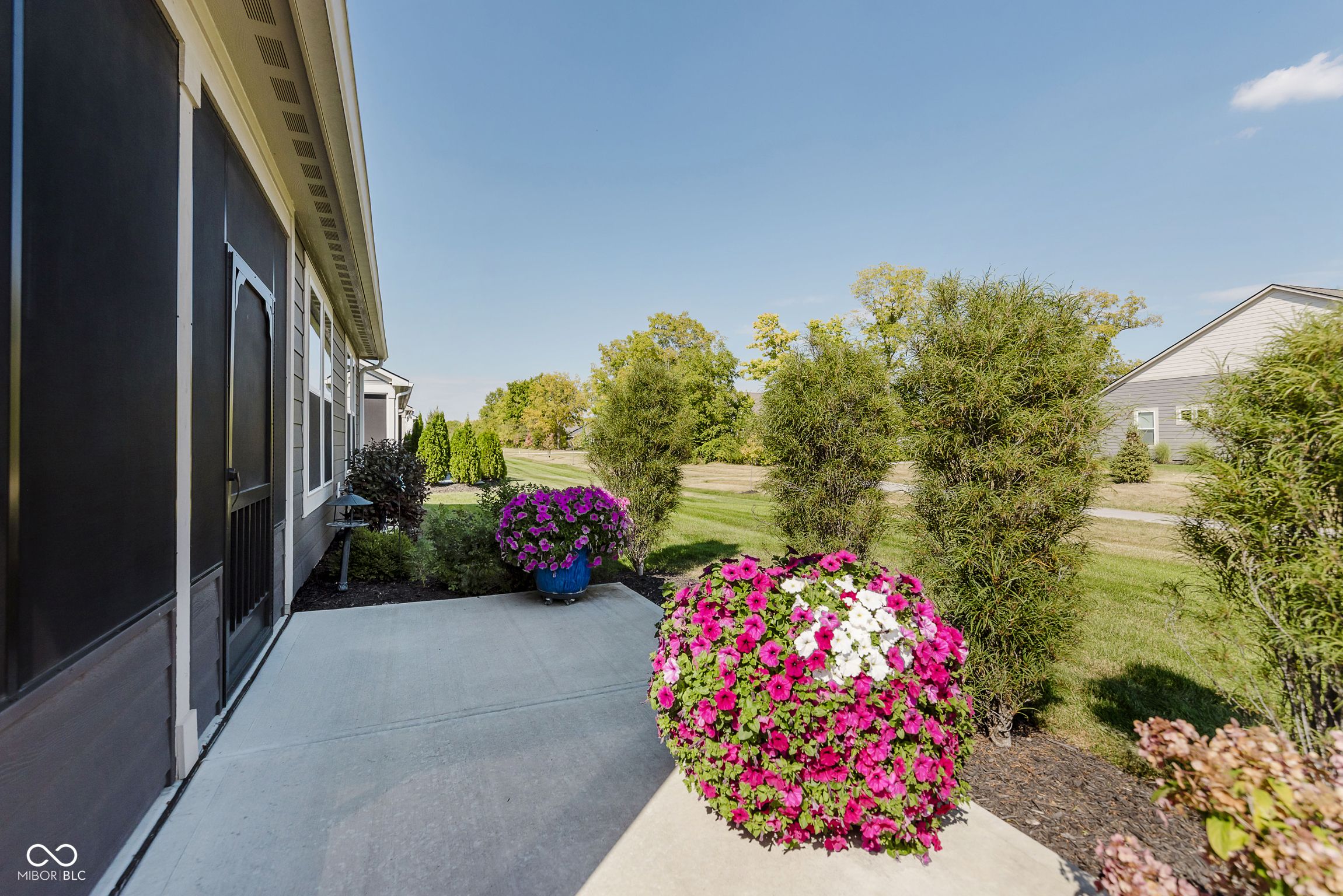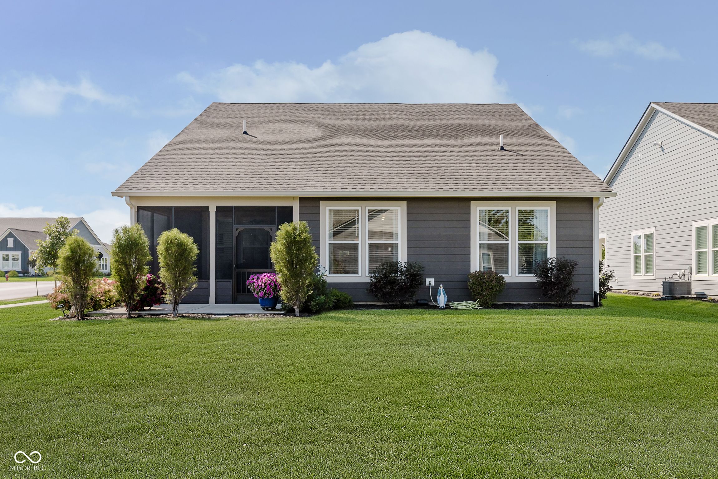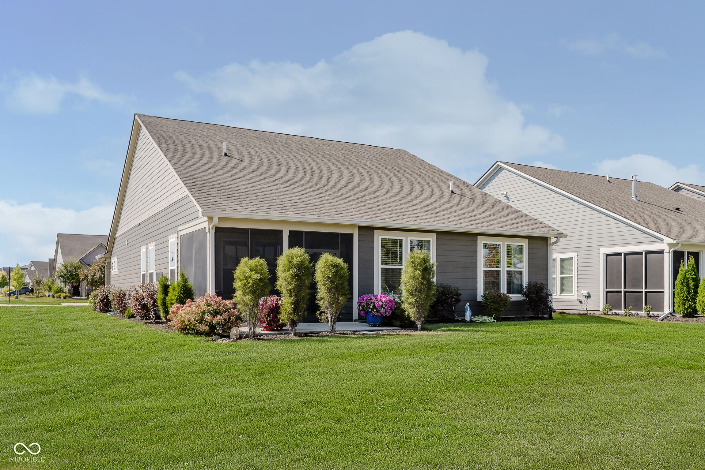 Westfield's 55+ community near Grand Park features two clubhouses, pools, fitness center, pickleball and tennis courts and 3 miles of scenic trails. Full lawn care and snow removal. This immaculate home is the popular Shafer floor plan. Step inside from the inviting covered front porch, to an elegant entry hall designed with wainscoting and tray ceilings. The home features newer luxury LVP flooring, accent walls, and a gas fireplace with black granite hearth. Truly a gourmet chef's kitchen with wall oven/microwave plus separate gas range and wall mount chimney hood. Third bedroom/ flex room with charming barn doors & plantation shutters. Storage galore w/ custom shelving in walk in closets and pantry. Built in bench & hooks for convenience are located just inside entry from the garage. Garage even offers a 4 foot bump out extension. Tranquil Master suite includes tray ceilings, luxurious walk in shower. Adjoining laundry room with washer/dryer included. Enjoy the outdoor living spaces, from screened in porch to extended patio, located by walking paths. Upgraded features include: Tankless water heater, chlorine filter, water softener, Smart home with Schlage smart lock and Ruckus wireless zone flex Wi-Fi access and ring doorbell. Handicap accessible