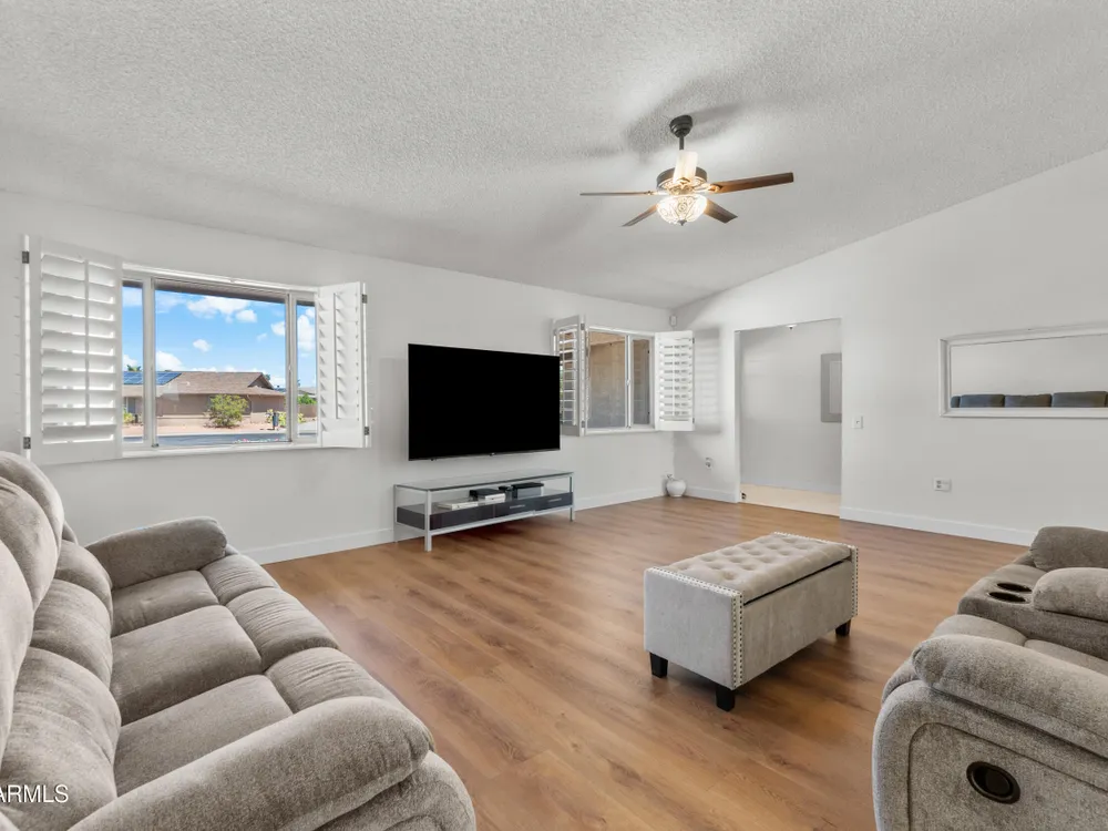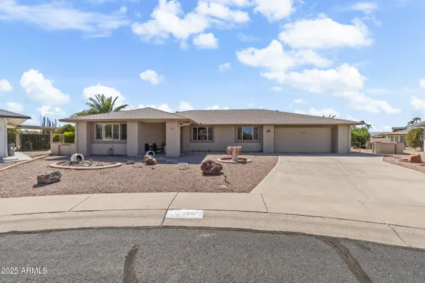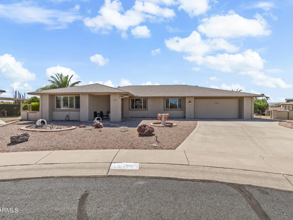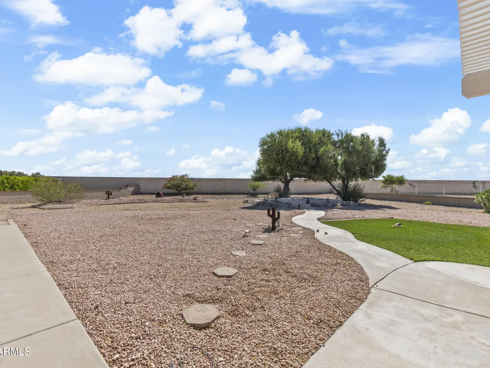 This oversized 2 bed / 2 bath home sits on an 18,000+ sq ft cul-de-sac lot with beautiful views from every room. Features include recently remodeled bathrooms, new LVP flooring, a newer water softener & RO system, spacious rooms, and fresh neutral paint. The backyard is perfectly landscaped, sunshine, shade, and wide-open skies. Just 1.1 miles from Stardust Golf Course and close to the Sun City West Rec Center for pickleball, swimming, and more.