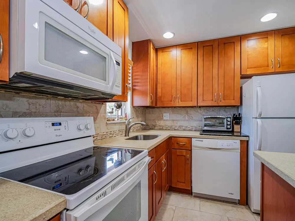 Completely redone with tile floors throughout, updated kitchen with newer appliances, impact windows on lanai -- overlooking grounds. Dues include cable, wifi, water, sewer, garbage, all maintenance and unlimited golf!