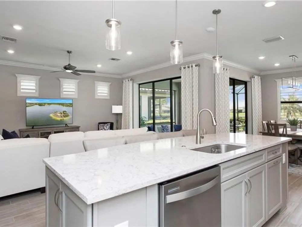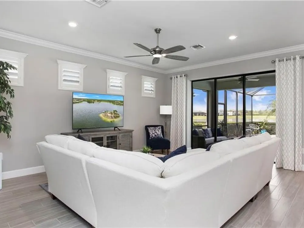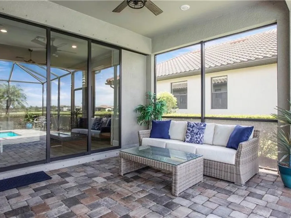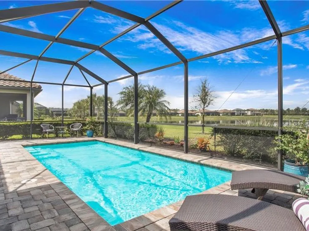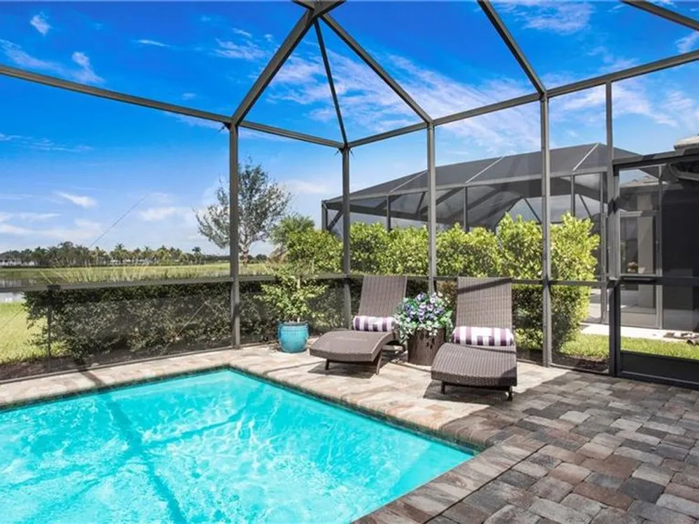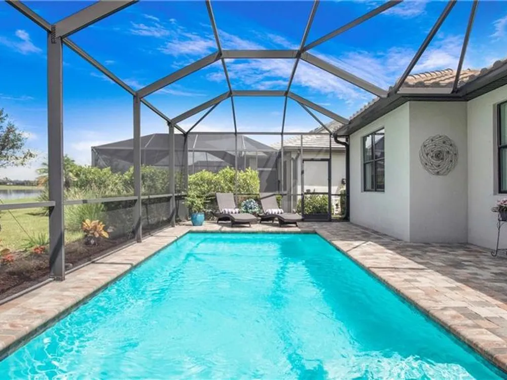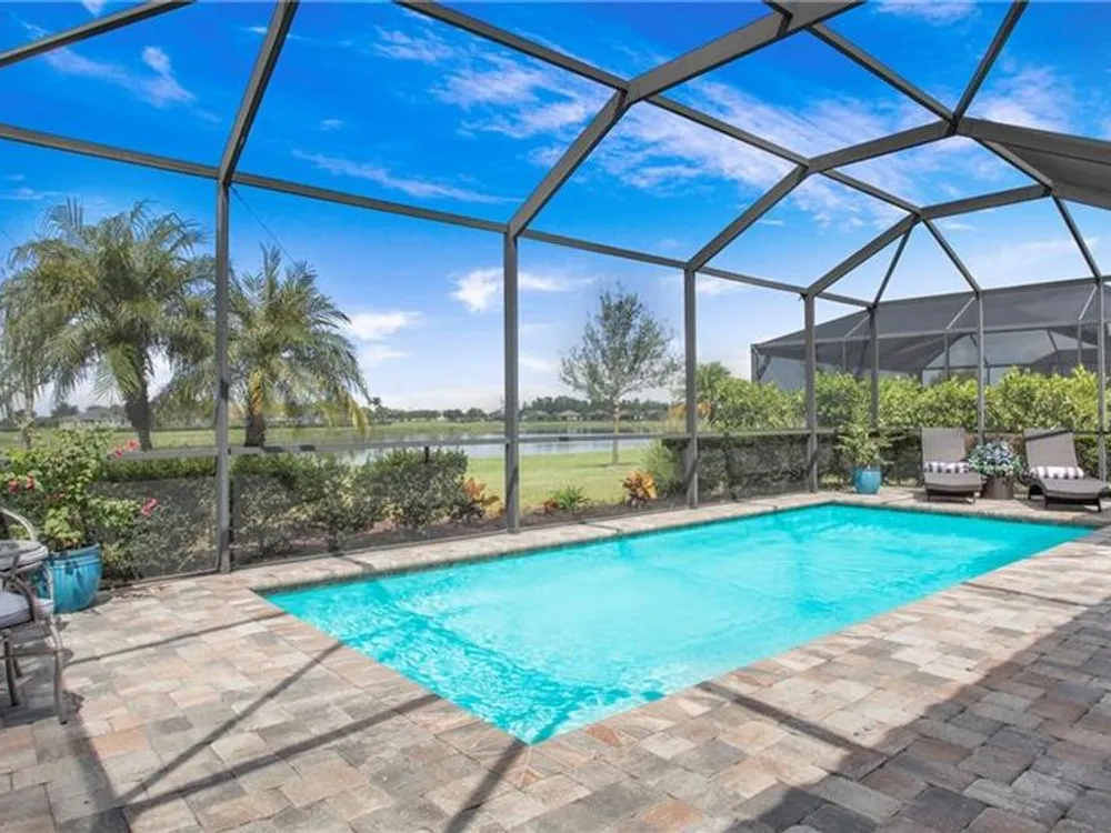 NOW this is a DEAL you do not want to MISS !! POOL home on the LAKE being sold TURNKEY. The view is one of the BEST in The Place! Large lake views looking back at the clubhouse and pool with stunning sunsets from this SW exposure home. This Pulte Summerwood has beautiful furniture and decor throughout the home. Come see this three bedrooms plus den/office, 2 bath home with tile throughout including the bedrooms! Very nicely optioned with plantation shutters throughout and custom drapes, custom closet in primary bedroom and walk in pantry. Enjoy the pool and lanai area which is equipped with lounge chairs as well as outside furniture to relax and enjoy those wonderful SW sunsets. Life at The Place at Corkscrew is unparalleled, offering world-class amenities including an 11,000-square-foot resort pool with a 100-foot water slide, waterfalls, and splash pad, an on-site restaurant, outside bar, and bourbon bar, marketplace cafe, a 2 story fitness center, tennis, pickleball, bocce ball, basketball, and volleyball ! It is conveniently located near FGCU, Ft. Myers airport, Miromar outlets, Gulf Coast Town Center, and Hertz Arena. Brand new Publix, Dunkin Donuts, nail salon, UPS store is now open less than one mile away. Don't miss your chance to own a piece of paradise in one of SW Florida’s most sought after communities. Schedule your private tour today!