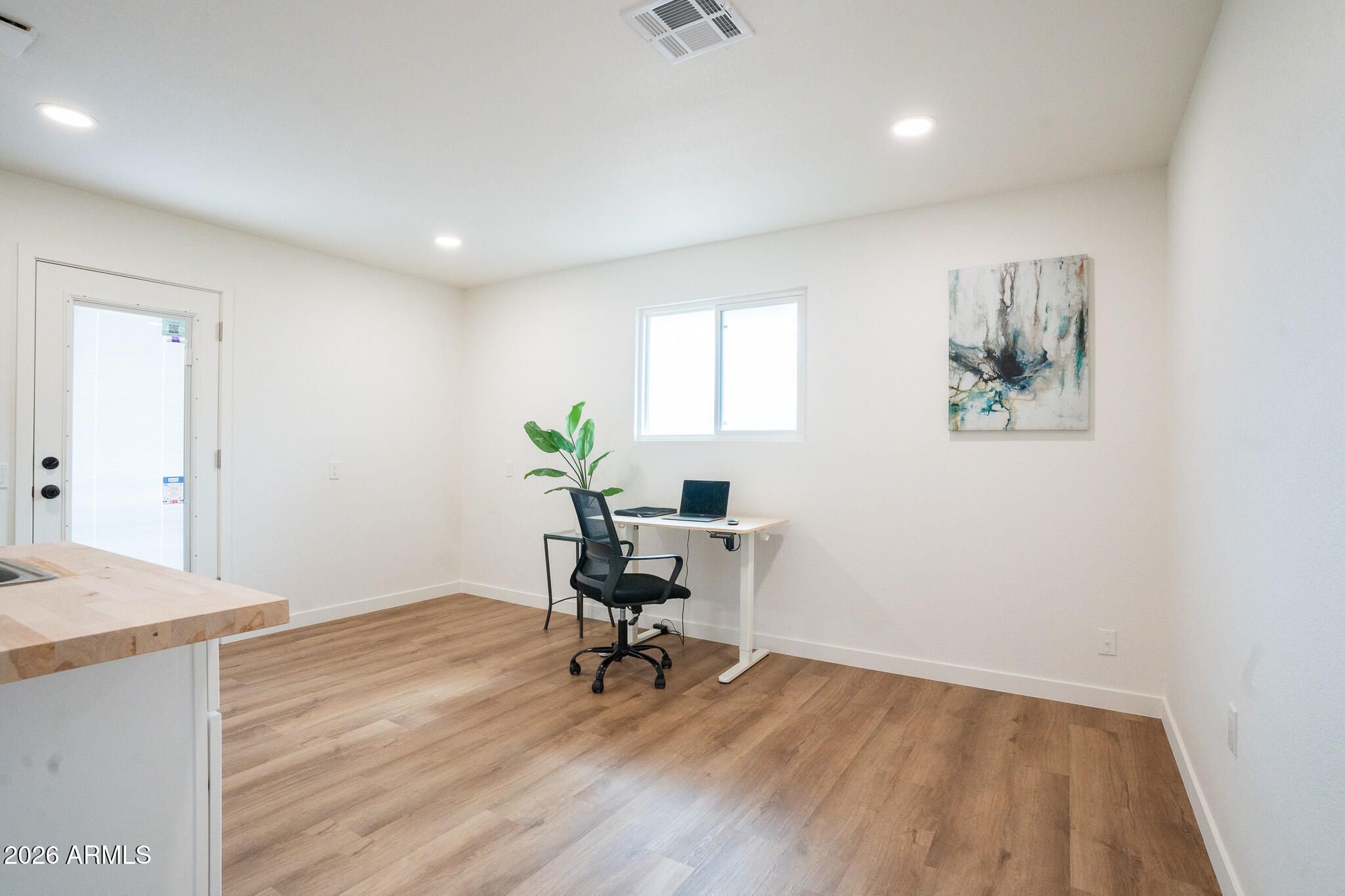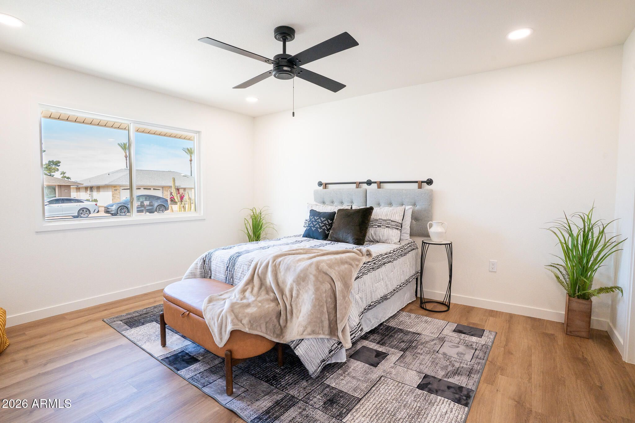 This home is truly one of a kind. Completely reimagined from top to bottom with a fresh 2026 modern design, it offers direct golf course access in a highly sought-after 55+ Sun City community with no HOA. The thoughtfully redesigned open-concept layout creates bright, airy living spaces with clean lines, upscale finishes, and seamless flow, making the home ideal for both everyday living and entertaining. Featuring two spacious bedrooms plus a versatile den or office and two beautifully updated bathrooms, every detail reflects quality craftsmanship and intentional design. The primary suite includes a spa-inspired bathroom with an upgraded walk-in tub designed for comfort, ease, and relaxation. Major system upgrades have already been completed, including a newer AC system, updated plumbing, and a newer roof, providing peace of mind for the next owner. Large windows bring in abundant natural light, enhancing the open layout and highlighting the modern finishes throughout the home. Situated in a quiet and well-maintained neighborhood just moments from the golf course, recreation centers, shopping, and dining, this property offers the perfect balance of lifestyle and convenience. Fully renovated homes with golf course access, modern upgrades, and no HOA restrictions rarely become available in Sun City, making this a truly exceptional opportunity.