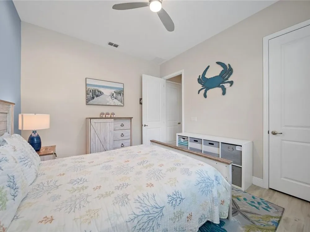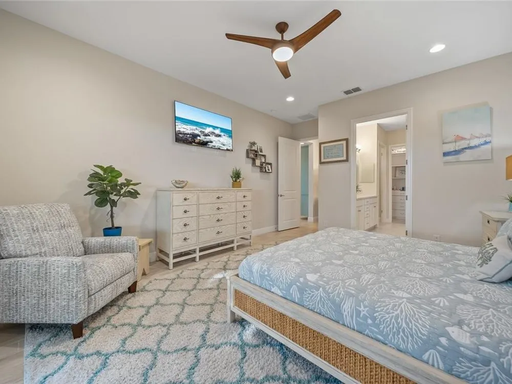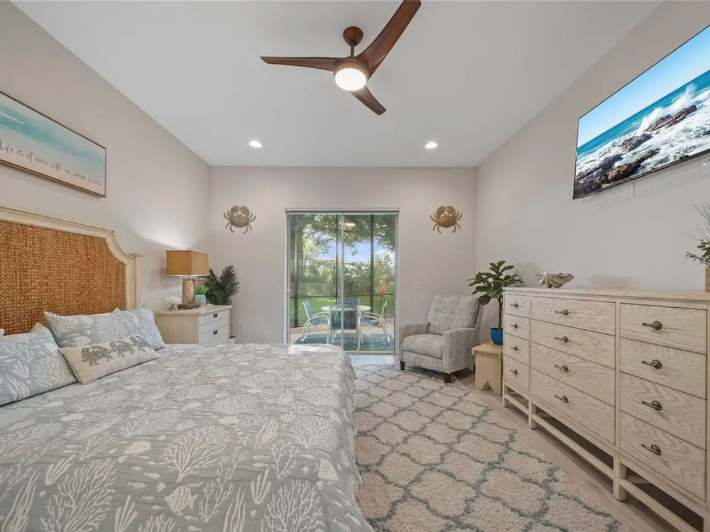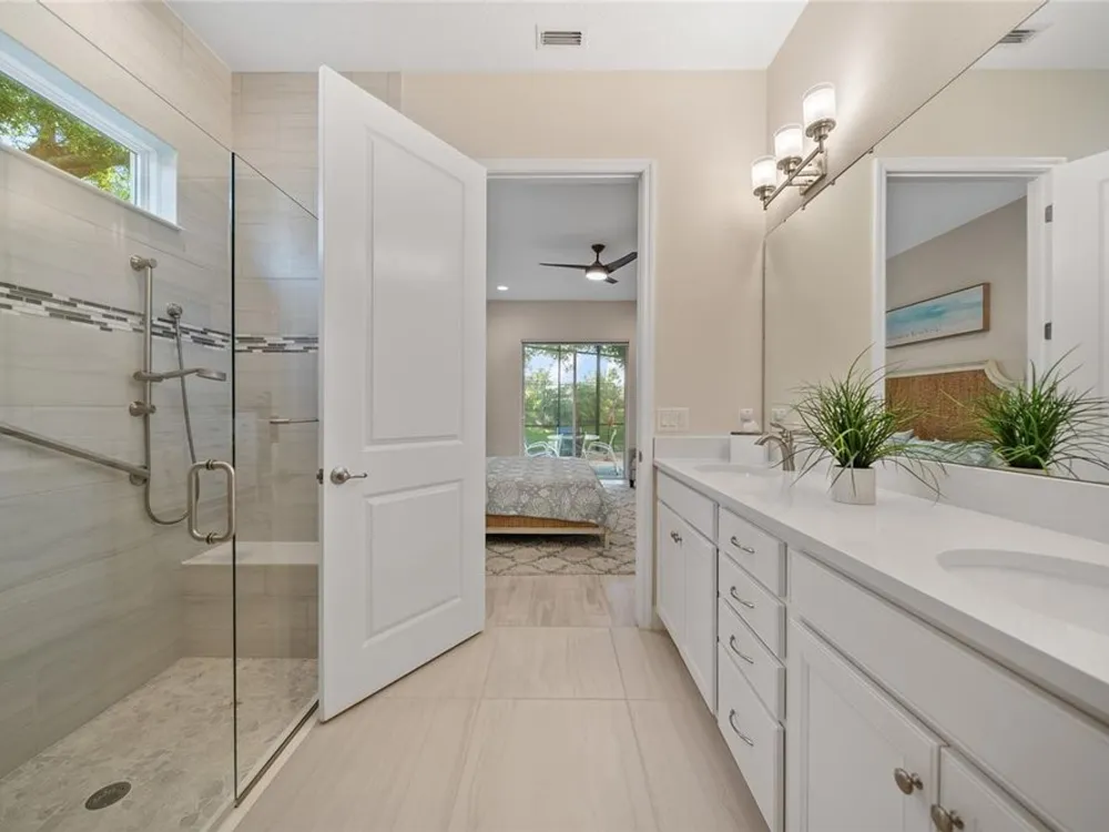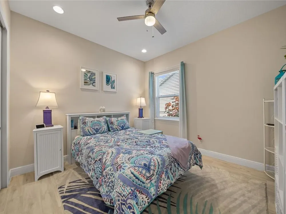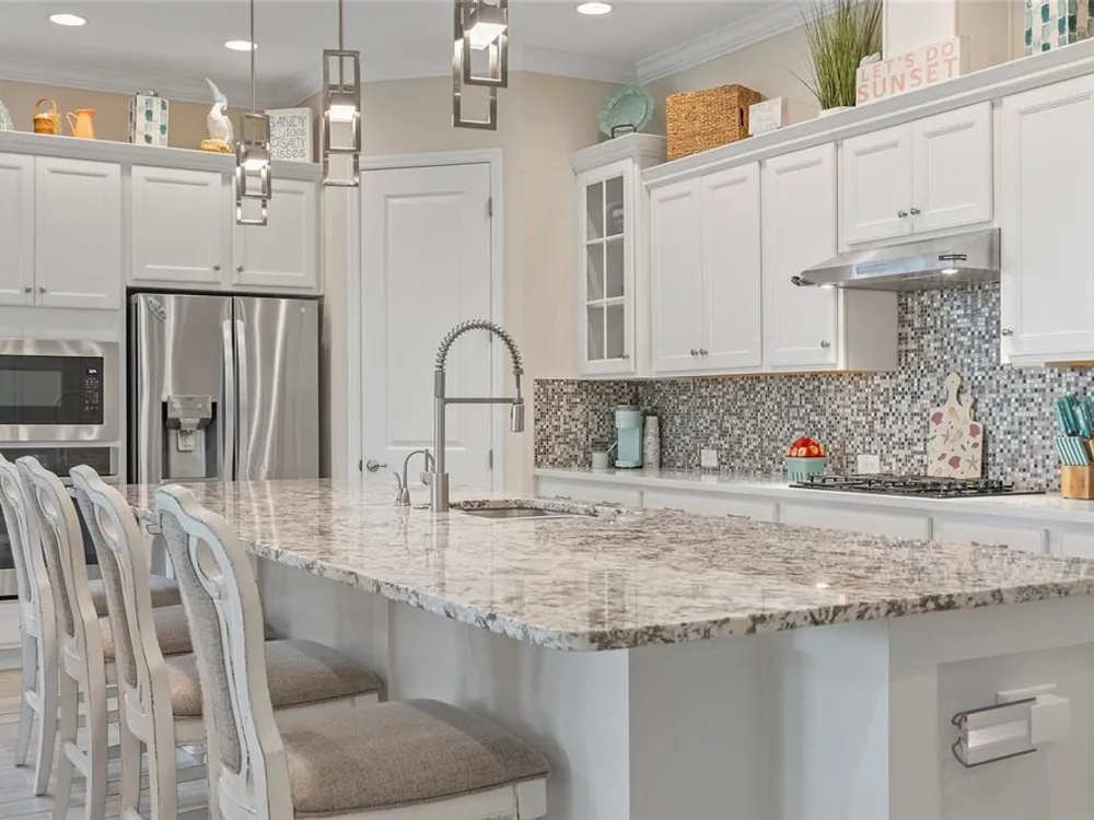 Discover this beautiful 4-bedroom, 3-bathroom home, offering the perfect blend of comfort and convenience. This property features an open floor plan with tile flooring throughout, creating a seamless flow between living spaces. The heart of the home showcases a modern kitchen equipped with a gas stove, stainless steel appliances, and a large island with seating. A walk-in pantry provides ample storage, while the open design offers lovely views of the backyard and pool area. The primary suite overlooks the sparkling pool and spa and includes a custom walk-in closet and bathroom with a stand-up shower, quartz countertops, and double sinks. An additional highlight is the separate in-law suite with its own entry door and laundry hookup, perfect for guests or extended family. Outside, the lanai provides space for relaxation while enjoying the pool, spa, and golf course views. Practical features include a garage with epoxy floors, inside laundry with sink, plantation shutters, and a custom built in mudroom entrance. Located just minutes from Walt Disney World, shopping, and dining, this home sits within a guard-gated community offering extensive amenities including pools, pickleball, tennis, fitness center, and social activities. Convenient access to Publix Super Market at Celebration Pointe ensures easy grocery shopping. This property combines modern living with resort-style amenities in an ideal Central Florida location.