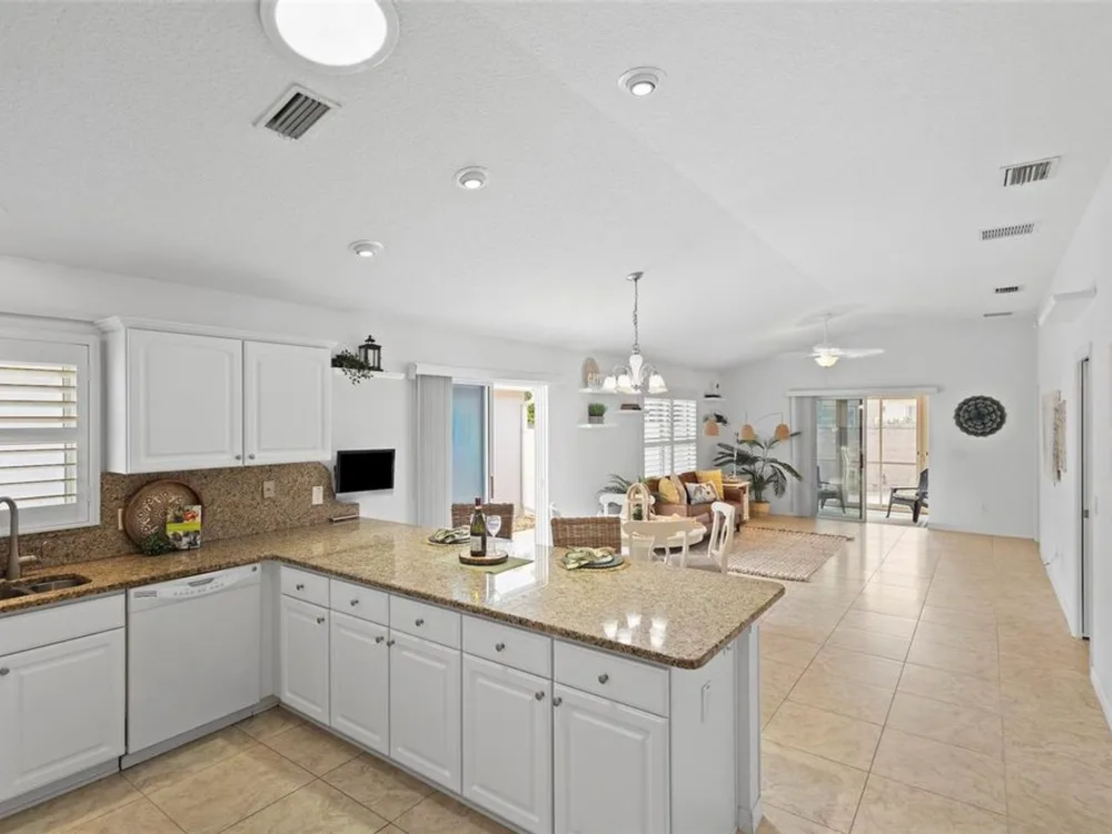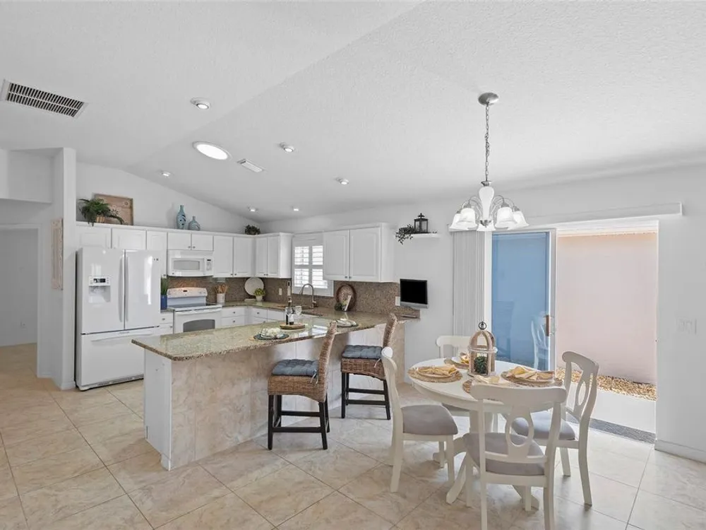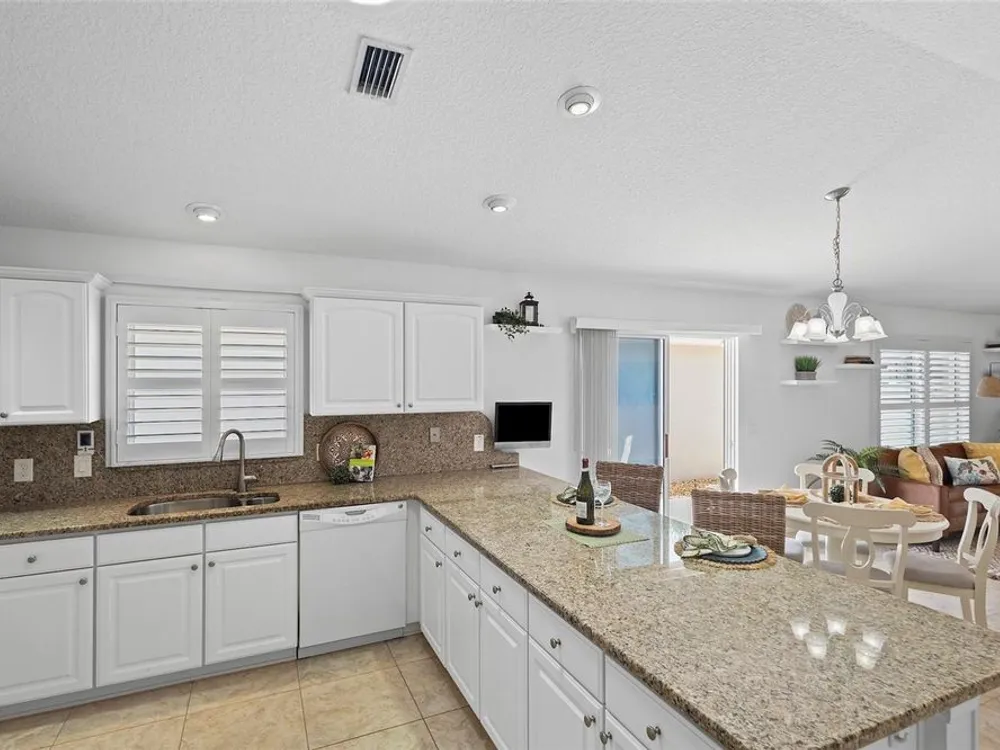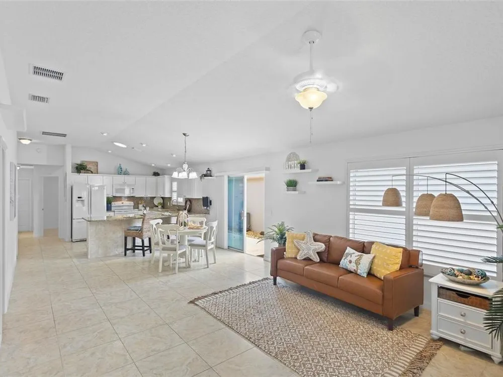 NEW IMPROVED PRICE !! FRESH INTERIOR PAINT !! READY FOR YOUR OFFER !! Welcome Home into the style and comfort with this beautifully maintained FOXGLOVE Courtyard Villa, nestled in the highly sought-after Village of PENNECAMP—a prime location near Lake-Sumter Landing, golf, dining, and recreation. This 3-BED, 2-BATH courtyard villa offers the perfect blend of elegance and low-maintenance living. From the moment you enter, you’ll appreciate the VAULTED CEILINGS, TILE FLOORING, and PLANTATION SHUTTERS that add both charm and privacy. There are NO POPCORN CEILINGS offering a clean, modern finish to every space. The OPEN-CONCEPT floor plan seamlessly connects the living and dining areas to the spacious kitchen, which features GRANITE COUNTERTOPS, abundant white cabinetry with pullouts and a convenient breakfast bar—ideal for entertaining. The primary suite offers a peaceful retreat with its own access to the lanai, a large walk-in closet, and an en-suite bath complete with granite countertops and a tiled shower. Two additional guest bedrooms are perfect for visitors or flexible use as an office or hobby space. You'll love the INTERIOR LAUNDRY room with utility sink and storage cabinets. Step outside to a GENEROUSLY SIZED REAR LANAI and a PRIVATE REAR COURTYARD with LOW-MAINTENANCE LANDSCAPING, creating the perfect setting for outdoor dining or relaxing in the Florida sun. With its prime location and stylish upgrades, this villa offers the ideal blend of convenience, comfort, and carefree living in the heart of The Villages. Your Florida lifestyle awaits!