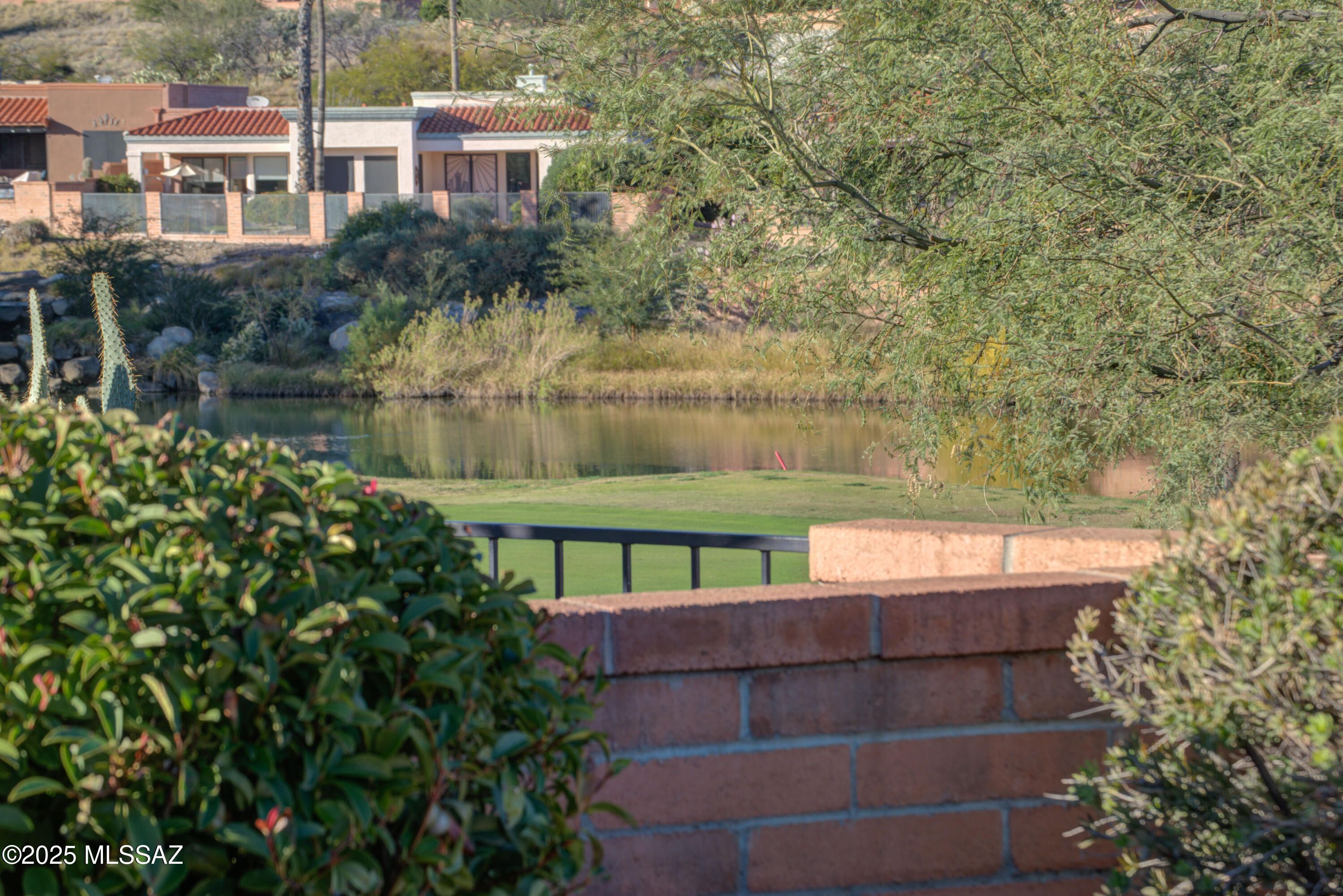 Stunning golf and water views on signature 13th hole from the back patio. 1,720 sq ft townhome features 2 bedrooms plus den,21/2 bath,and 2-car garage with built-in storage cabinets and space for golf cart and/or shop.The fully updated kitchen includes SS appliances,pull-out shelving,new granite countertops and backsplash,and a breakfast bar from which to enjoy the view.An expansive primary suite offers an oversized Jacuzzi tub,step-in shower,generous walk-in closet,and light-filled double vanity.The 2nd full bath includes sauna and shower seating.Designer-commissioned tile flooring runs throughout the home,with exception of new carpet in primary bedroom. Water softener&freshly painted exterior and interior. It's a standout home within one of Green Valleys most popular golf neighborhoods!