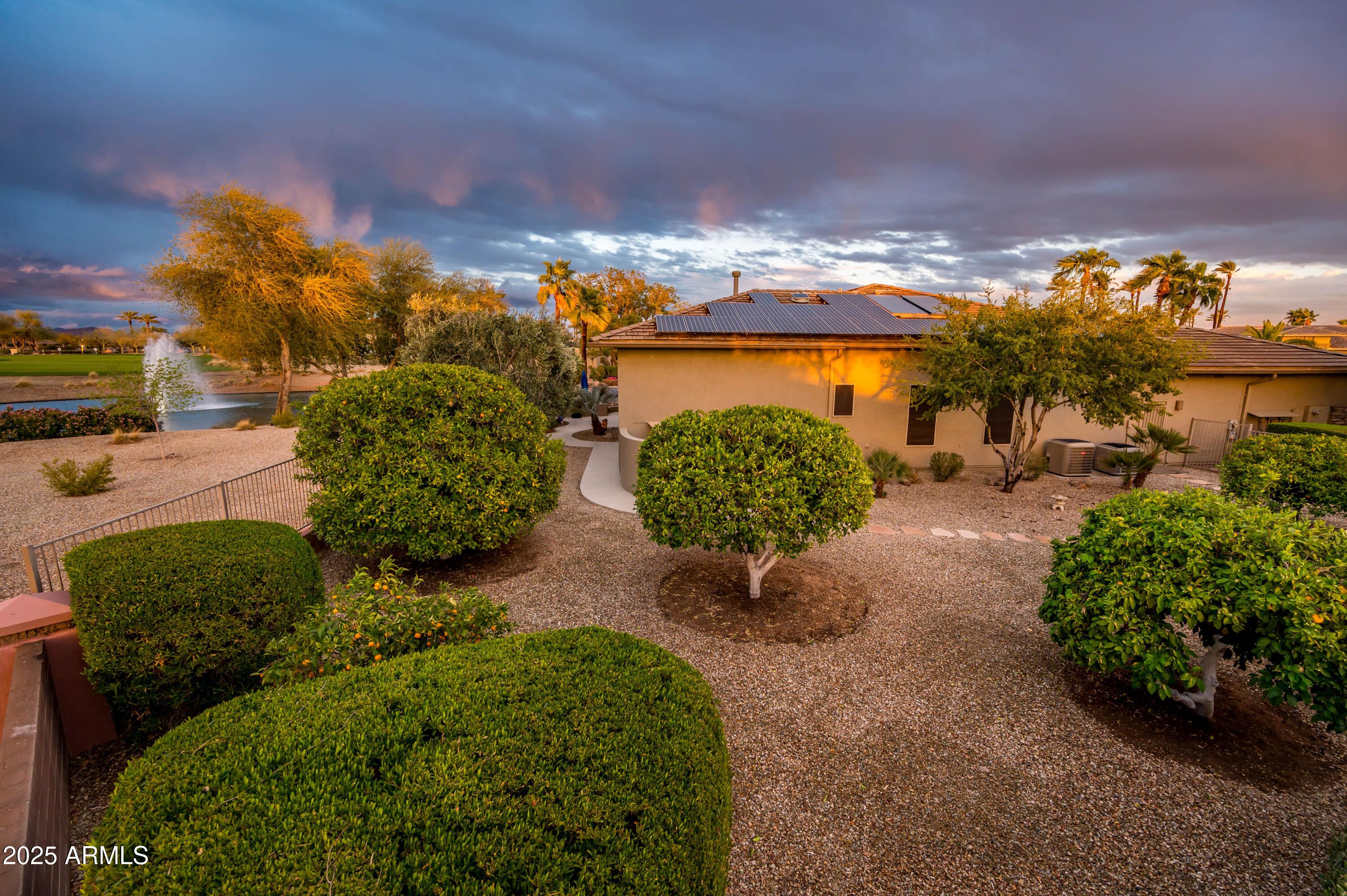 Experience resort-style living at its finest in the expanded Windsor model perfectly situated on a private oversized cul-de-sac lot along the Cimarron Golf Course. Enjoy views on the 9th green, lake, and signature fountain from your own backyard. This meticulously maintained home has too many updates to mention. The elegant residence offers an open, light-filled floorplan designed for both comfort and entertaining. The chefs kitchen, is equipped with Wolfe appliances, a Vinotemp builtin wine fridge, granite countertops, and custom cherry cabinets. The fully owned solar system and new pool equipment help keep energy costs low, so you can enjoy the heated pool all winter long. Don't miss the opportunity to own in SC Grand and start enjoying the active adult lifestyle you have been craving!!