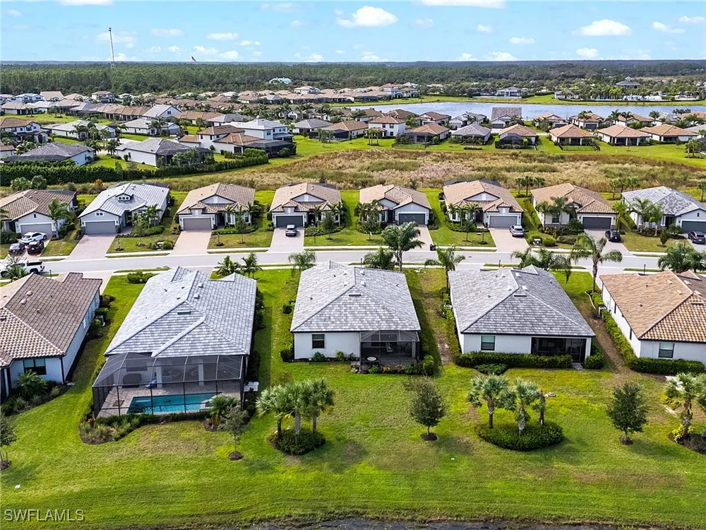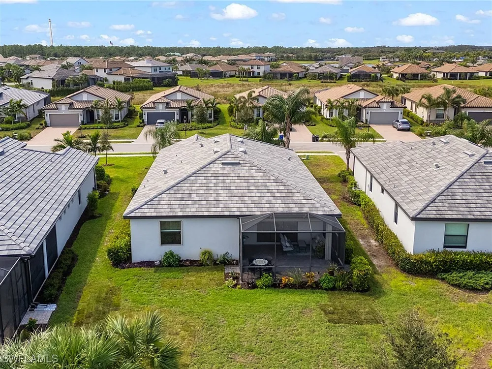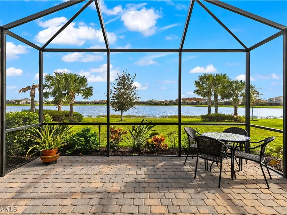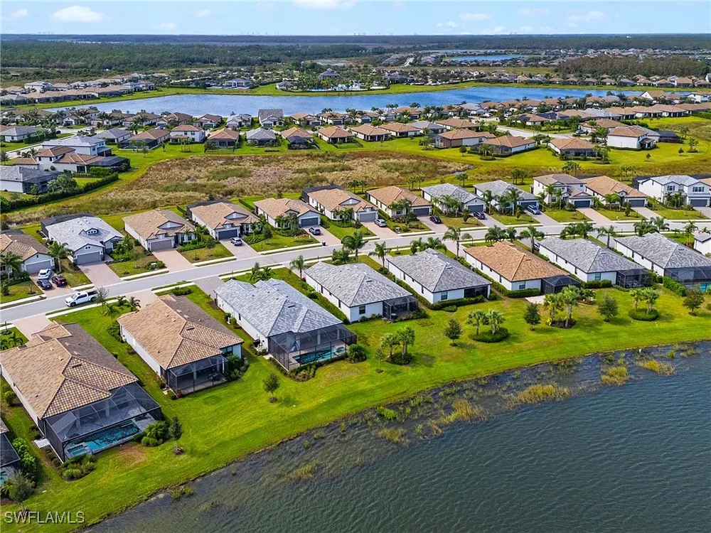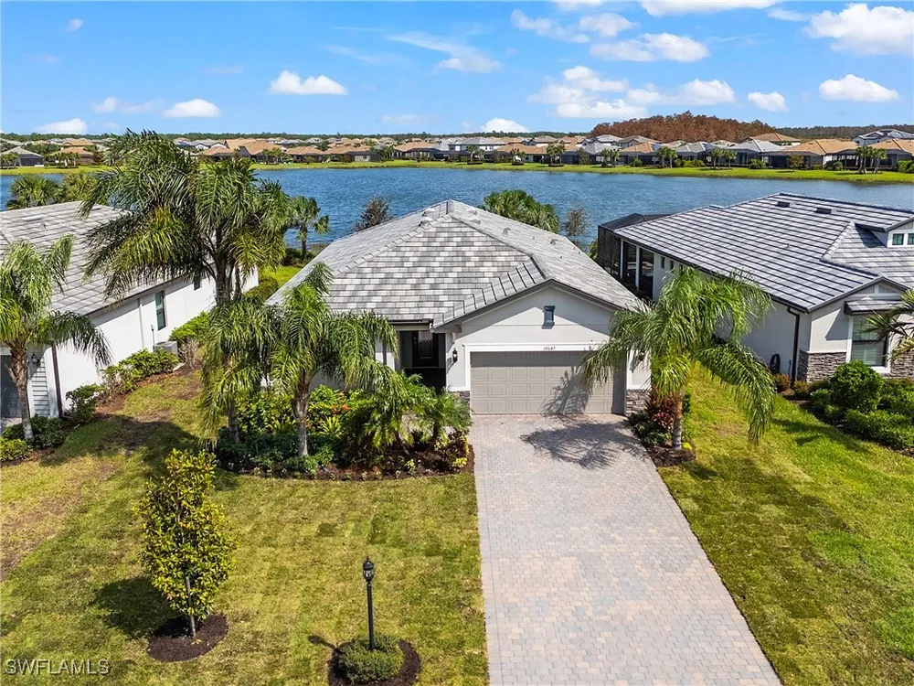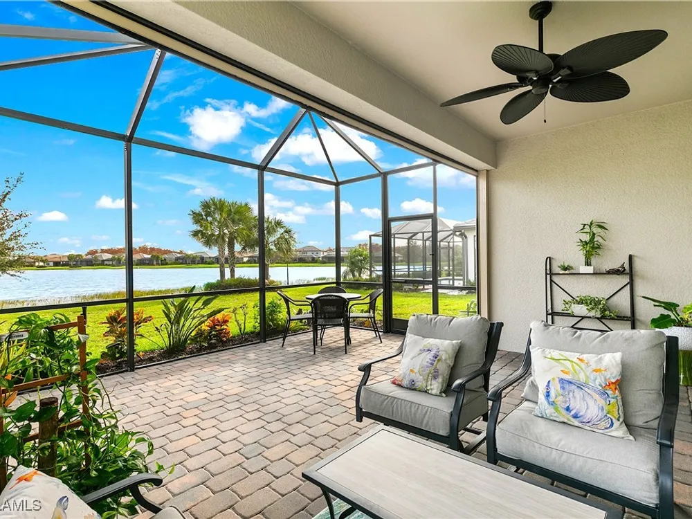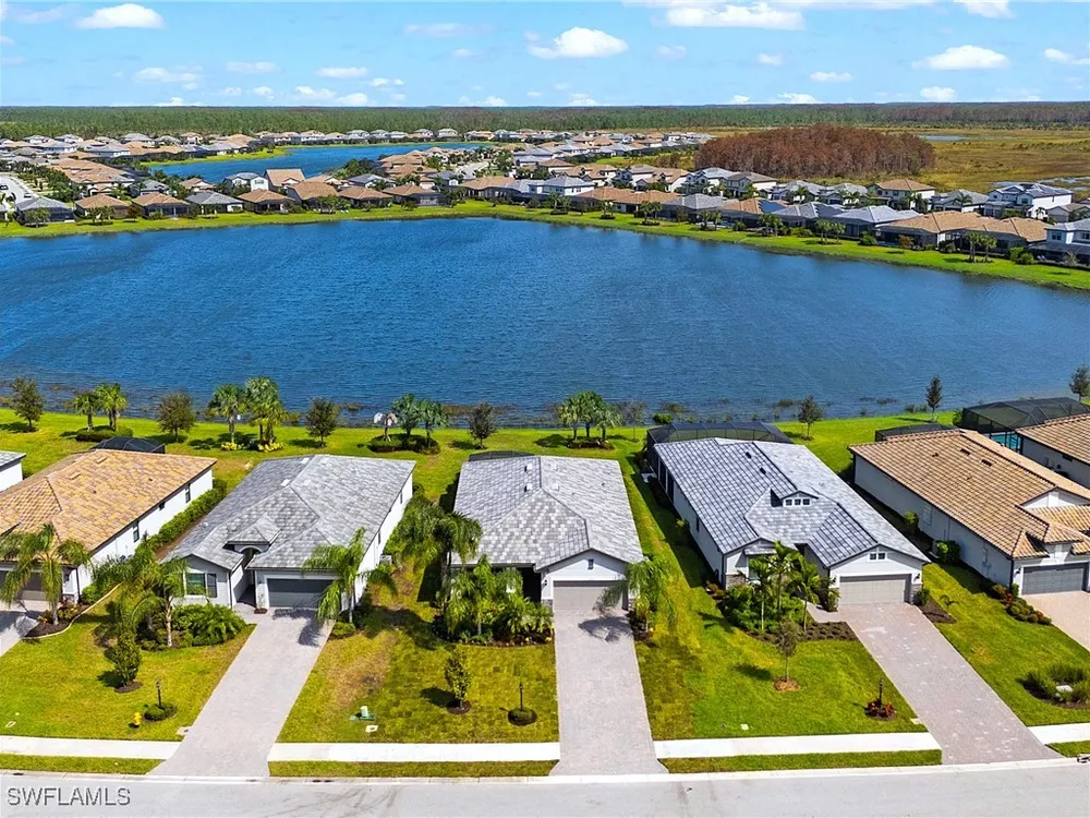 UNDER $500,000 FOR A LAKEFRONT HOME IN THE PLACE AT CORKSCREW?! INCREDIBLE VALUE FOR THIS MOVE-IN READY HOME WITH SPECTACULAR WIDE WATER VIEWS!!! WONDERFUL BUYING OPPORTUNITY IN THE PLACE AT CORKSCREW. This "Venice" residence offers 3 Bedrooms, 3 Full Baths (One guest bedroom has an En-suite bath), 2 Car Garage, 1,852sf living area and an EXTENDED, SCREENED PAVER LANAI. Built in 2020, have peace of mind with ACCORDION SHUTTERS on all windows and ELECTRIC HURRICANE SCREENS on the lanai, along with being located in FLOOD ZONE X (no flood insurance required if financing). Enjoy the true "Old Florida" feel as you approach the covered front porch, accented by a glass insert entry door. The front and side yards just had NEW SOD INSTALLED. This SPLIT BEDROOM LAYOUT home offers privacy for guests, and the secondary baths are outfitted with HEAVY GLASS ENCLOSURES. The heart of the home provides OPEN CONCEPT LIVING for all to enjoy. Open up the sliding glass doors for indoor/outdoor entertaining on the covered lanai with EXTENDED SCREENED PAVERED ENCLOSURE. The extra-deep homesite provides a LARGE BACKYARD that is perfect for the kids and pets to play and there is plenty of room to add a fence beyond the screened cage, if desired, or perhaps your dream pool/spa! Inside you’ll find 21” tile and CROWN MOLDING throughout the main areas, window treatments and WHOLE HOME WATER FILTRATION. The Kitchen showcases Rich Brown cabinetry, Granite Countertops, WALK-IN PANTRY, STAINLESS STEEL APPLIANCES and RO SYSTEM at sink. The Primary Suite features his and her closets (one with BUILT-IN ORGANIZERS) and SPARKLING WATER VIEWS from your bedside. The Primary Bath boasts of dual sinks, an OVERZISED SHOWER and a private water closet. UPGRADED WASHER AND DRYER included. PROPERTY IS HIGH AND DRY AND LOCATED IN FLOOD ZONE X... NO FLOOD INSURANCE REQUIRED! Amenities at The Place include: Resort Pool w/100' Waterslide, Indoor Restaurant, Bourbon Bar, Cafe, Outdoor Bar, Fitness Center, Movement Studio, Tennis, Pickleball, Bocce, Basketball, Playground, Dog Park, Childwatch, Spa Services. For GOLF ENTHUSIASTS, the highly rated Jack Nicklaus designed OLD CORKSCREW GOLF CLUB is open to the public and located directly across the street from the community entrance! NEW PUBLIX GROCERY STORE... JUST 1.4 MILES AWAY... IS NOW OPEN!!! TENANTS INCLUDE DUNKIN DONUTS, UPS STORE, LEGNO ITALIAN RESTAURANT, HAIR & NAIL SALON, HEARTLAND DENTAL, AND MORE!
