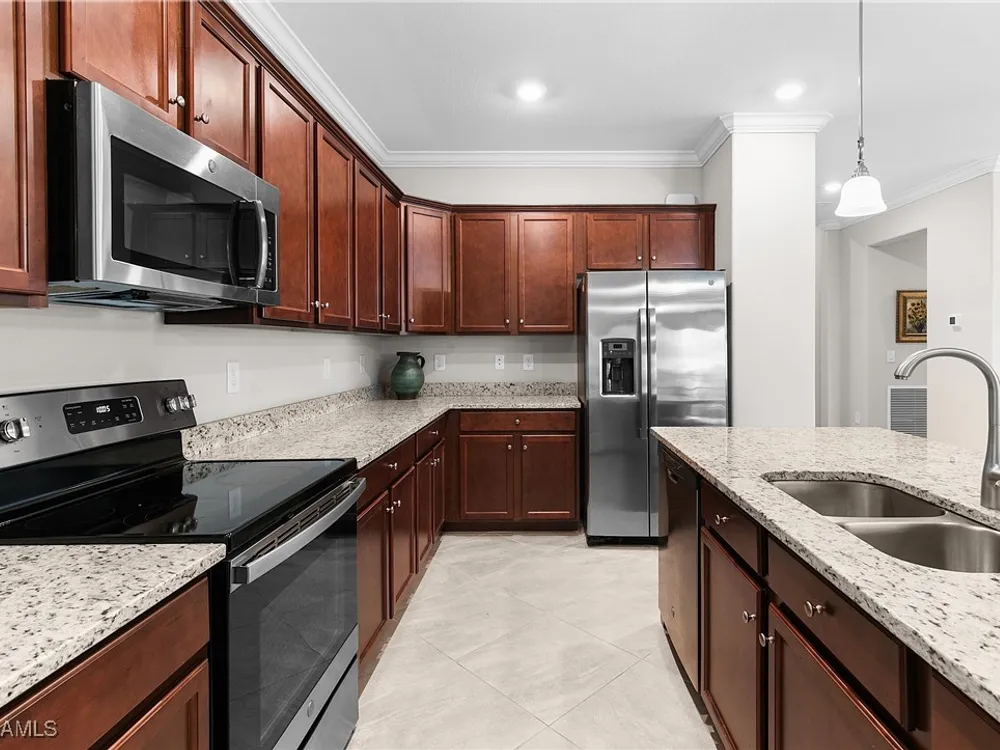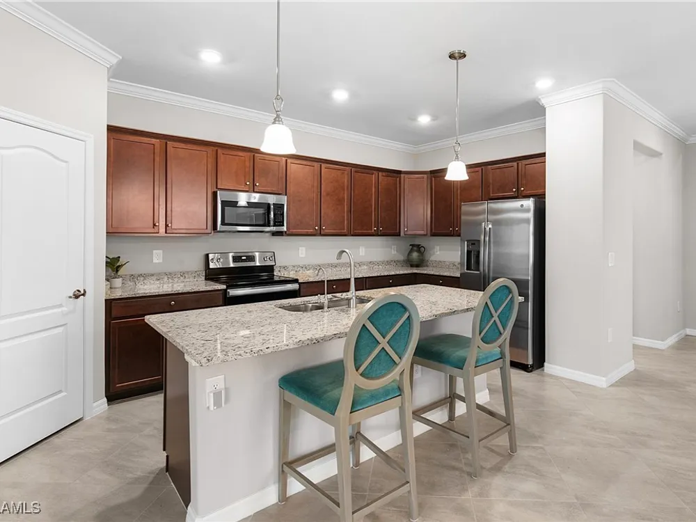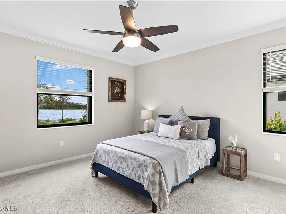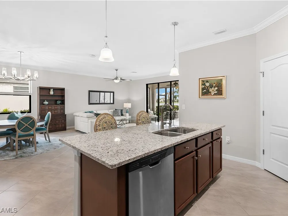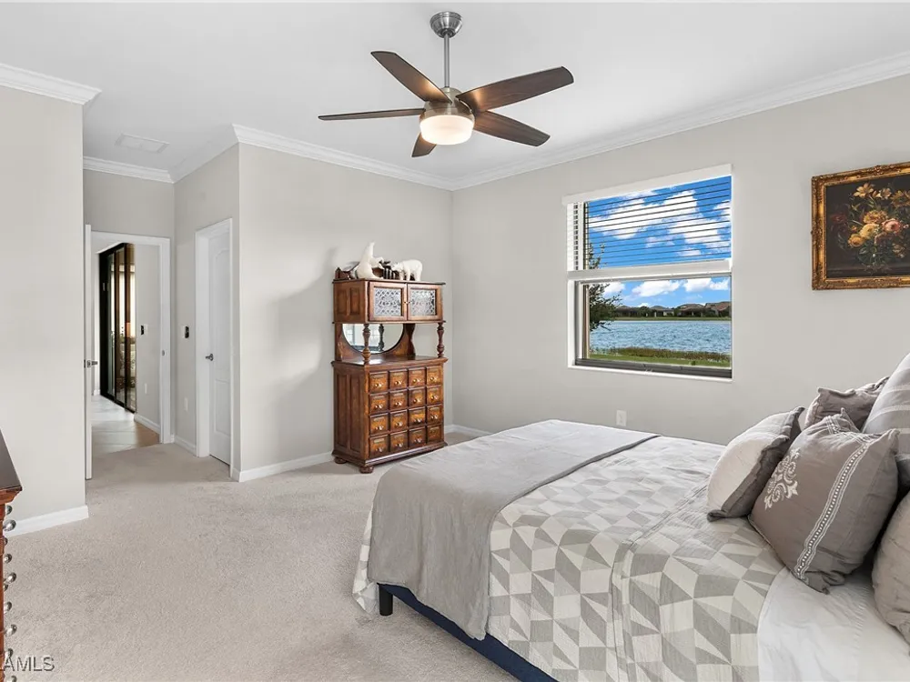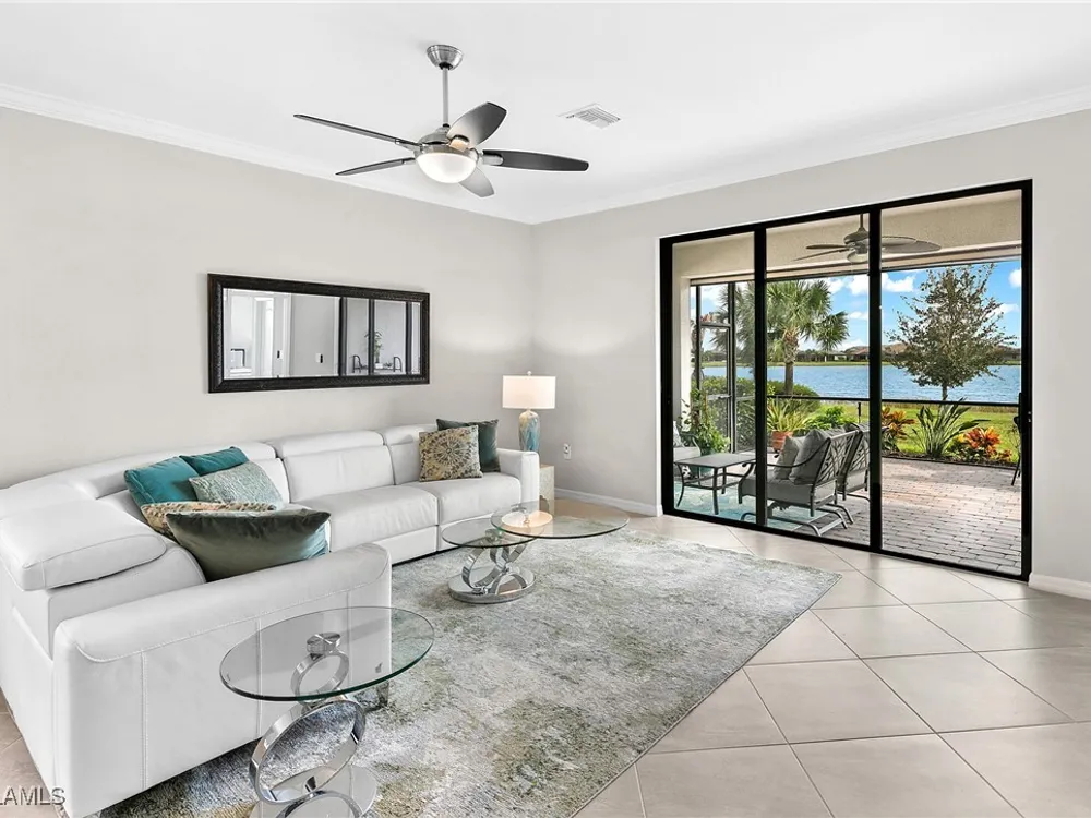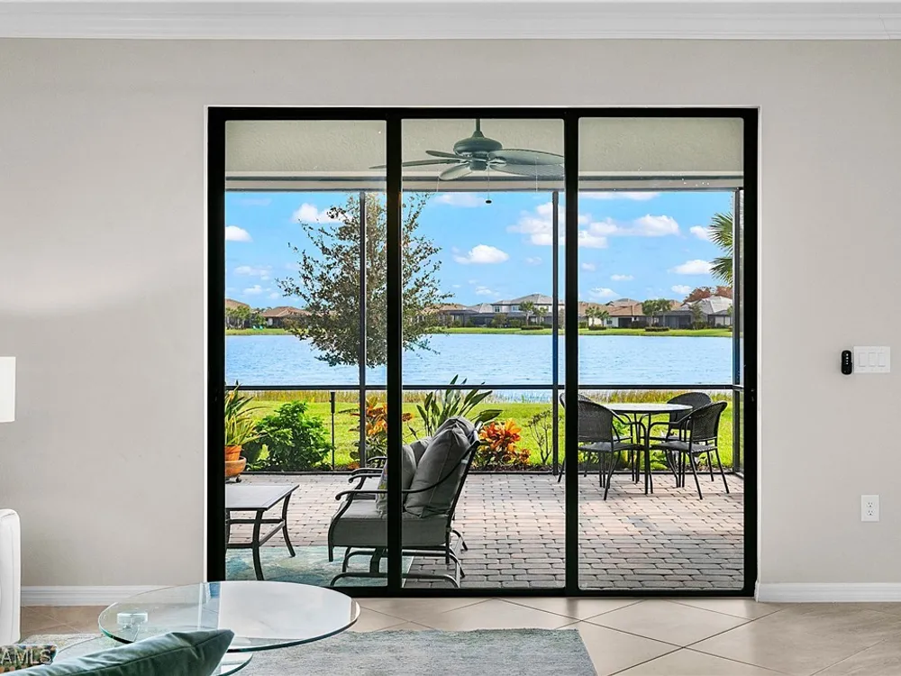 UNDER $500,000 FOR A LAKEFRONT HOME IN THE PLACE AT CORKSCREW?! INCREDIBLE VALUE FOR THIS MOVE-IN READY HOME WITH SPECTACULAR WIDE WATER VIEWS!!! WONDERFUL BUYING OPPORTUNITY IN THE PLACE AT CORKSCREW. This "Venice" residence offers 3 Bedrooms, 3 Full Baths (One guest bedroom has an En-suite bath), 2 Car Garage, 1,852sf living area and an EXTENDED, SCREENED PAVER LANAI. Built in 2020, have peace of mind with ACCORDION SHUTTERS on all windows and ELECTRIC HURRICANE SCREENS on the lanai, along with being located in FLOOD ZONE X (no flood insurance required if financing). Enjoy the true "Old Florida" feel as you approach the covered front porch, accented by a glass insert entry door. The front and side yards just had NEW SOD INSTALLED. This SPLIT BEDROOM LAYOUT home offers privacy for guests, and the secondary baths are outfitted with HEAVY GLASS ENCLOSURES. The heart of the home provides OPEN CONCEPT LIVING for all to enjoy. Open up the sliding glass doors for indoor/outdoor entertaining on the covered lanai with EXTENDED SCREENED PAVERED ENCLOSURE. The extra-deep homesite provides a LARGE BACKYARD that is perfect for the kids and pets to play and there is plenty of room to add a fence beyond the screened cage, if desired, or perhaps your dream pool/spa! Inside you’ll find 21” tile and CROWN MOLDING throughout the main areas, window treatments and WHOLE HOME WATER FILTRATION. The Kitchen showcases Rich Brown cabinetry, Granite Countertops, WALK-IN PANTRY, STAINLESS STEEL APPLIANCES and RO SYSTEM at sink. The Primary Suite features his and her closets (one with BUILT-IN ORGANIZERS) and SPARKLING WATER VIEWS from your bedside. The Primary Bath boasts of dual sinks, an OVERZISED SHOWER and a private water closet. UPGRADED WASHER AND DRYER included. PROPERTY IS HIGH AND DRY AND LOCATED IN FLOOD ZONE X... NO FLOOD INSURANCE REQUIRED! Amenities at The Place include: Resort Pool w/100' Waterslide, Indoor Restaurant, Bourbon Bar, Cafe, Outdoor Bar, Fitness Center, Movement Studio, Tennis, Pickleball, Bocce, Basketball, Playground, Dog Park, Childwatch, Spa Services. For GOLF ENTHUSIASTS, the highly rated Jack Nicklaus designed OLD CORKSCREW GOLF CLUB is open to the public and located directly across the street from the community entrance! NEW PUBLIX GROCERY STORE... JUST 1.4 MILES AWAY... IS NOW OPEN!!! TENANTS INCLUDE DUNKIN DONUTS, UPS STORE, LEGNO ITALIAN RESTAURANT, HAIR & NAIL SALON, HEARTLAND DENTAL, AND MORE!