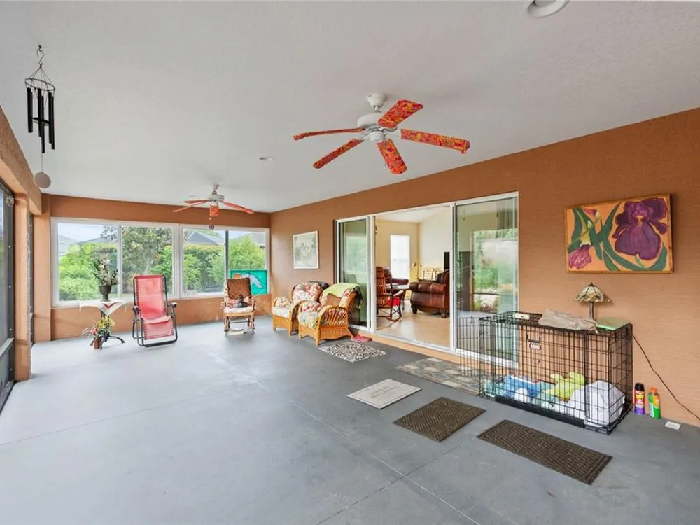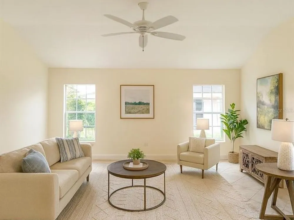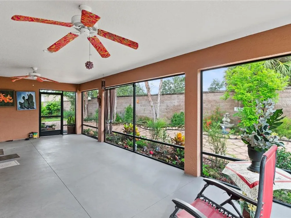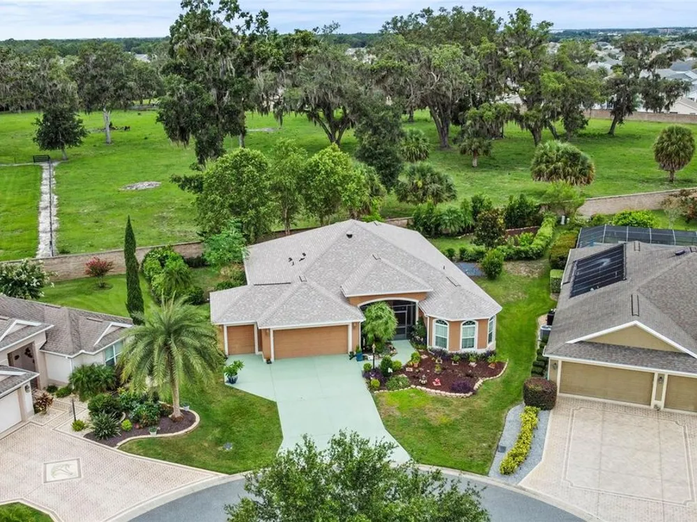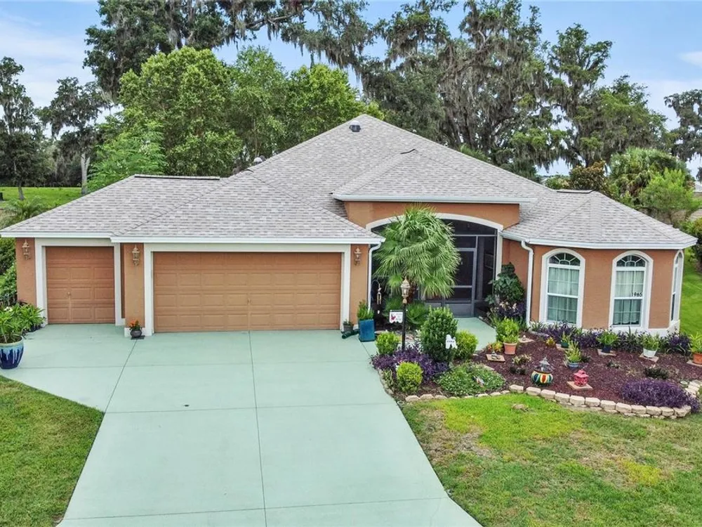One or more photo(s) has been virtually staged. Welcome to your Gardenia model home in the Village of Lake Deaton!. . THERE IS EVEN ROOM FOR A POOL! This expanded residence has been freshly painted, with most rooms virtually staged to showcase its versatility. The front room offers endless possibilities—use it as a bedroom, family room, or even a cozy “man cave.” Step out onto the oversized lanai and enjoy gentle breezes while sipping your favorite beverage. Thoughtfully positioned, the home backs to no direct neighbors and is enhanced by a privacy wall, creating your own peaceful retreat Recent updates provide added peace of mind, including a brand-new roof and HVAC system (2025). Set on an oversized lot in a prime location, this home perfectly balances space, tranquility, and convenience. With modern updates, flexible living areas, and serene outdoor space, this Gardenia model is ready for you to move right in and start enjoying all The Villages lifestyle. The enhanced landscaping adds a touch of elegance to the exterior, while the spacious garage featuring epoxy flooring offers both functionality and style, perfect for hobbies or additional storage. An abundance of natural light flows through the open floor plan, creating a warm and inviting atmosphere throughout the home. The privacy wall on the lanai not only allows for serene moments of relaxation but also makes it an ideal space for entertaining guests. Additionally, the proximity to Brownwood Town Center and the neighborhood pool is a fantastic bonus for those leading an active lifestyle or seeking vibrant community involvement. With a bond balance of only $17,569, this home represents an excellent opportunity for buyers looking to settle into a harmonious community while enjoying ample space and modern conveniences. With such appealing features, this Gardenia model is truly a gem waiting to welcome its new owners!