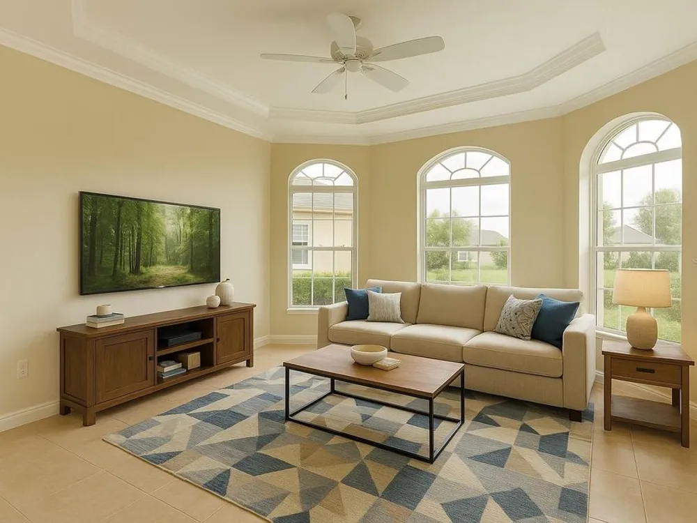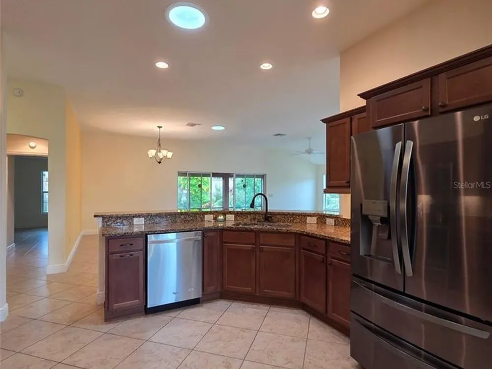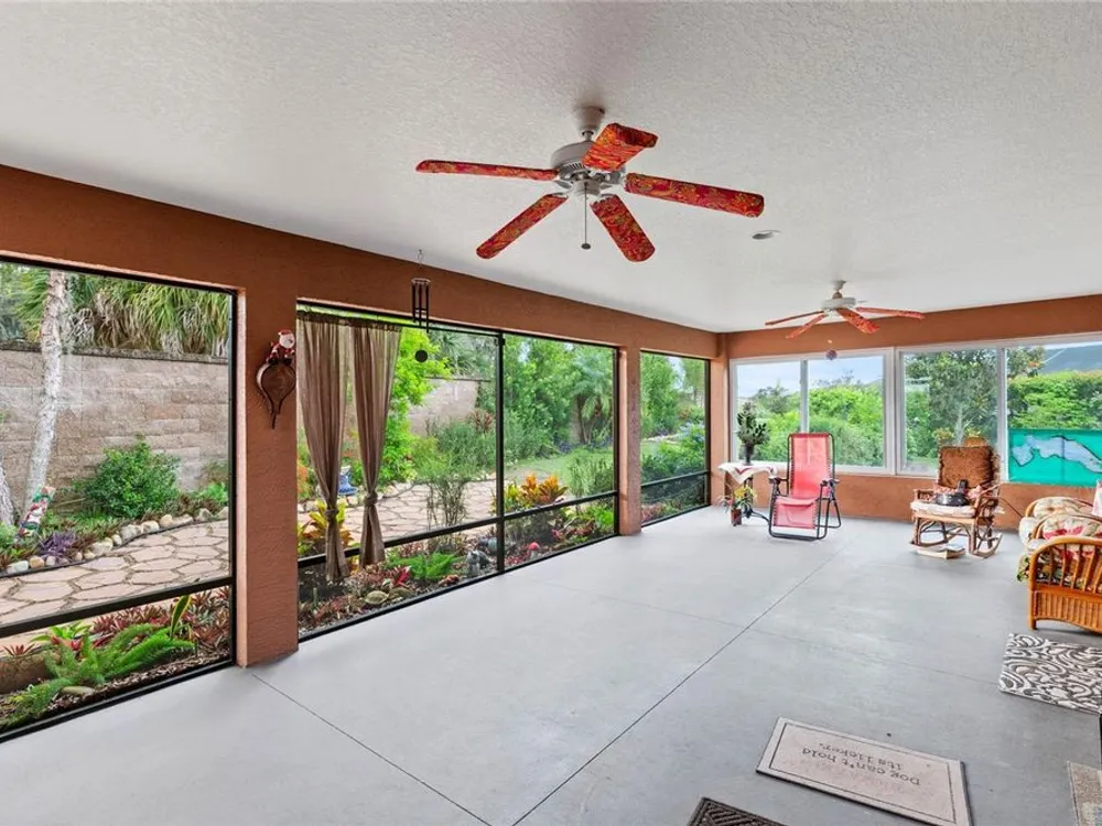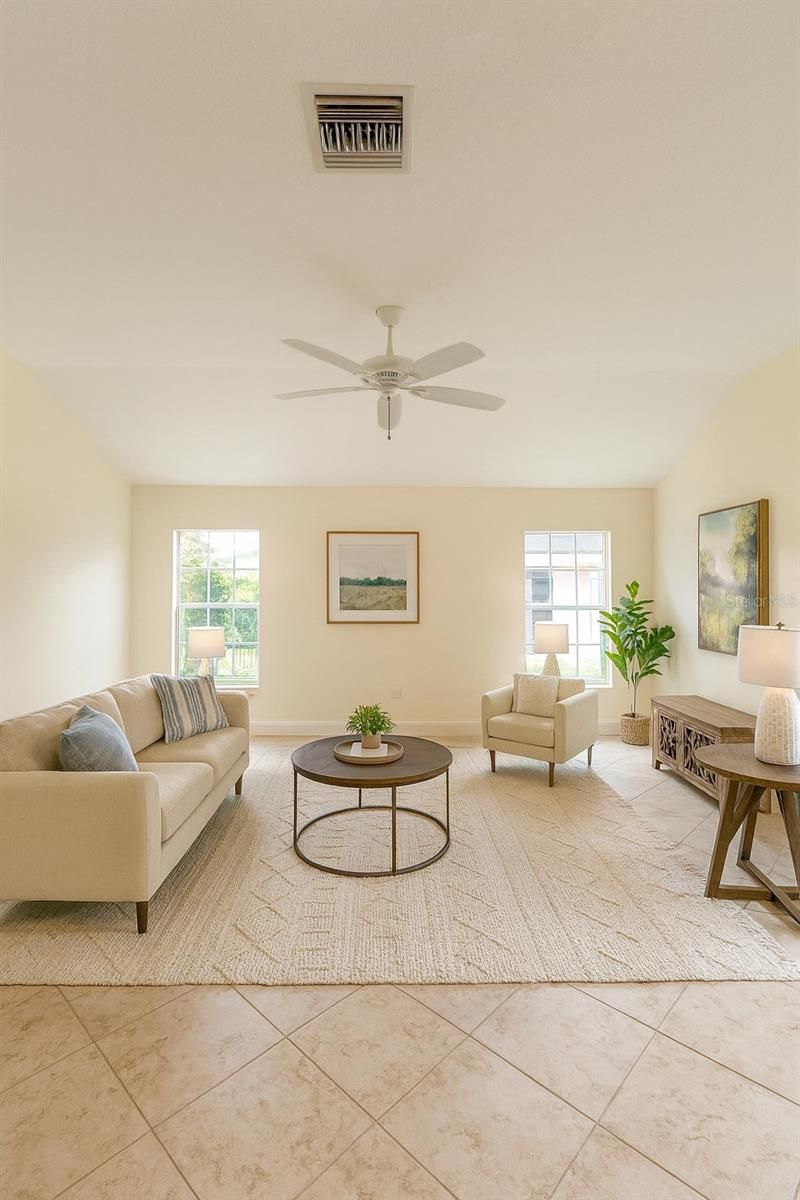 One or more photo(s) has been virtually staged. Welcome to your Gardenia model home in the Village of Lake Deaton!. . THERE IS EVEN ROOM FOR A POOL! This expanded residence has been freshly painted, with most rooms virtually staged to showcase its versatility. The front room offers endless possibilities—use it as a bedroom, family room, or even a cozy “man cave.” Step out onto the oversized lanai and enjoy gentle breezes while sipping your favorite beverage. Thoughtfully positioned, the home backs to no direct neighbors and is enhanced by a privacy wall, creating your own peaceful retreat Recent updates provide added peace of mind, including a brand-new roof and HVAC system (2025). Set on an oversized lot in a prime location, this home perfectly balances space, tranquility, and convenience. With modern updates, flexible living areas, and serene outdoor space, this Gardenia model is ready for you to move right in and start enjoying all The Villages lifestyle. The enhanced landscaping adds a touch of elegance to the exterior, while the spacious garage featuring epoxy flooring offers both functionality and style, perfect for hobbies or additional storage. An abundance of natural light flows through the open floor plan, creating a warm and inviting atmosphere throughout the home. The privacy wall on the lanai not only allows for serene moments of relaxation but also makes it an ideal space for entertaining guests. Additionally, the proximity to Brownwood Town Center and the neighborhood pool is a fantastic bonus for those leading an active lifestyle or seeking vibrant community involvement. With a bond balance of only $17,569, this home represents an excellent opportunity for buyers looking to settle into a harmonious community while enjoying ample space and modern conveniences. With such appealing features, this Gardenia model is truly a gem waiting to welcome its new owners!