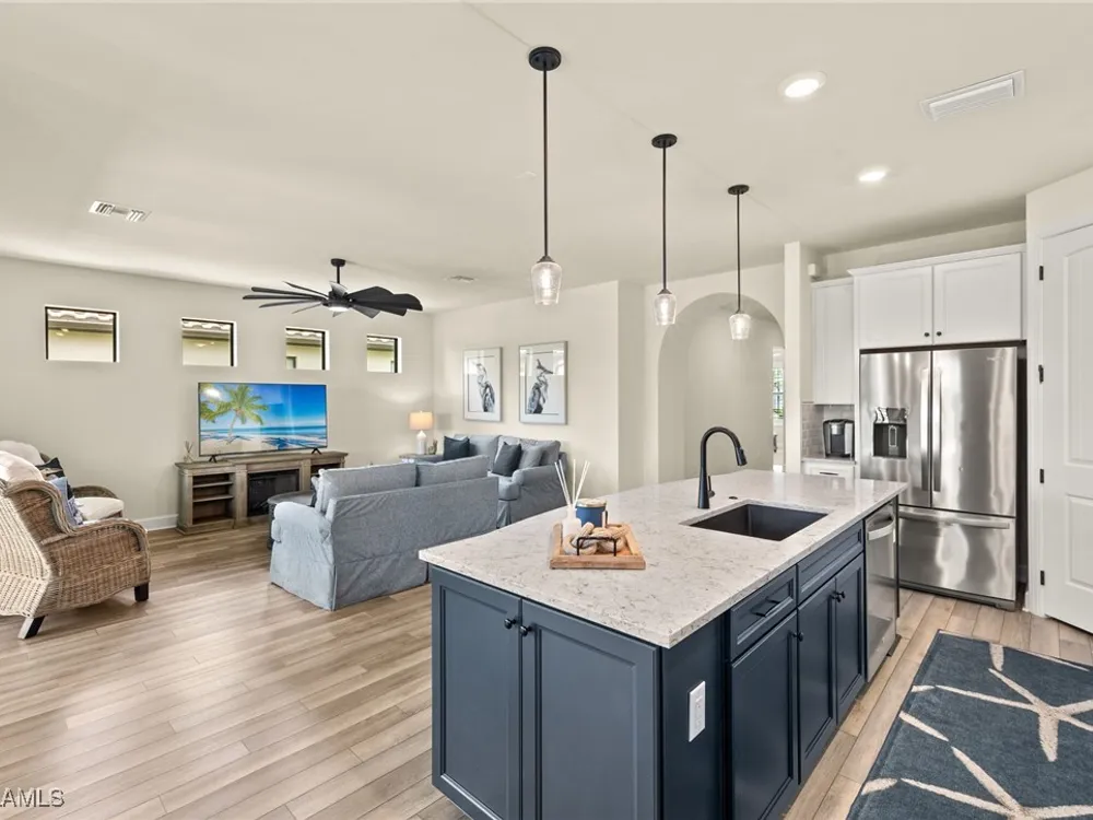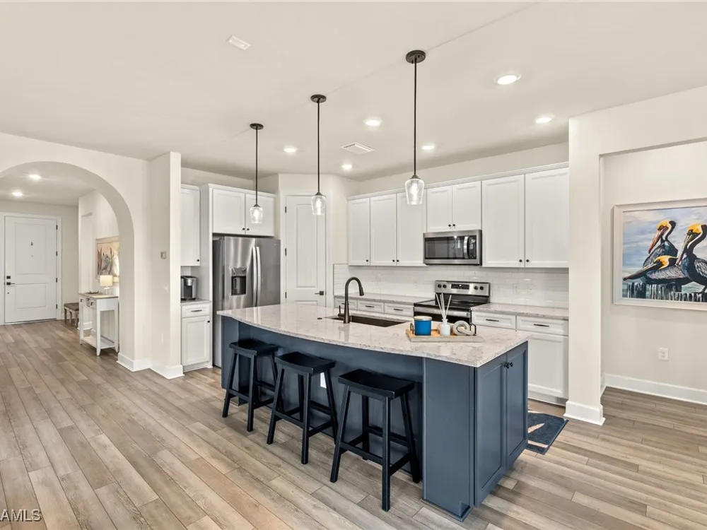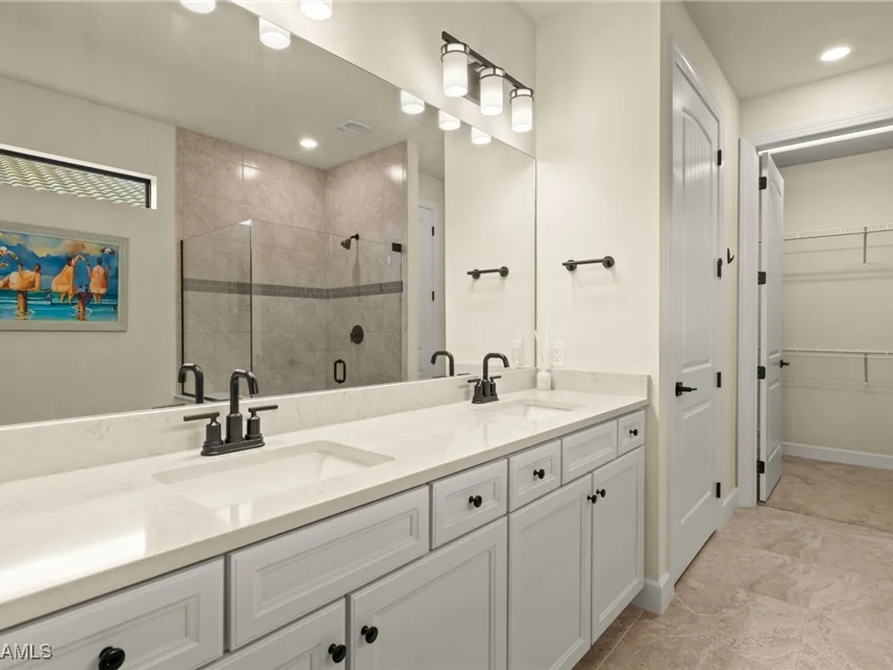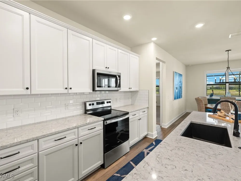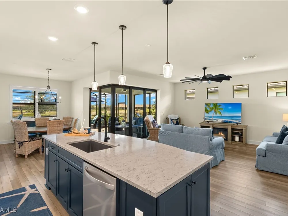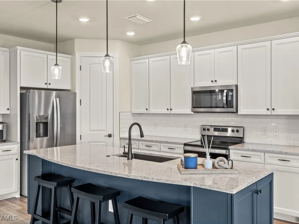Welcome to your new southwest florida oasis! This beautiful POOL home is located in the highly sought-after community- The Place at Corkscrew. This residence features three bedrooms and two bathrooms, each thoughtfully decorated to give you a year round coastal vacation feel. The spacious kitchen boasts a large center island that overlooks the gathering room, ideal for entertaining. The open-concept living space, enhanced by 8-foot doors and upgraded baseboards creates a sophisticated ambiance that is enhanced by the upgraded ZERO-CORNER sliding glass doors. The sliders pocket behind the exterior walls, seamlessly merging indoor and outdoor living and offering a huge wow factor! Outside, you'll discover a heated pool within a screened enclosure, complete with automatic lighting for evening enjoyment. The desirable southwestern rear exposure ensures plenty of sunshine and beautiful sunsets. The backyard is also fully FENCED, providing both privacy and security. Entering into the owner's suite you will find a cozy space that opens to the owner’s bathroom- including dual sinks, a frameless glass shower, and a walk-in closet. This gorgeous home has so many extras! Plantation shutters add an elegant touch throughout the home. For your peace of mind, the property is equipped with a screened entryway and IMPACT WINDOWS. Additionally, the property features a 2.5-car garage with an epoxy floor, offering ample space for vehicles and storage. Residents of The Place at Corkscrew enjoy a wealth of resort-style amenities, including a stunning pool complete with a 100-foot waterslide, a large hot tub, splash pads, the Barefoot Bar & Grille, the Bourbon Bar, a café, a 24-hour gym, a movement studio, a children's play area, a playground, a dog park, bocce ball, basketball, pickleball, tennis courts, and a tennis pro shop. The community also hosts numerous events, clubs, and gatherings, fostering a vibrant social atmosphere. Don't miss this incredible chance to own a meticulously maintained home in The Place at Corkscrew. Schedule your private tour today to experience all that this exceptional property has to offer!