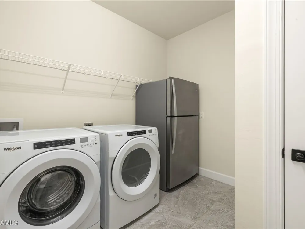 - Dryer, Dishwasher, Freezer, Disposal, Microwave, Range, Refrigerator, Washer