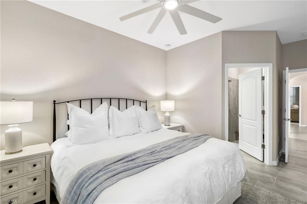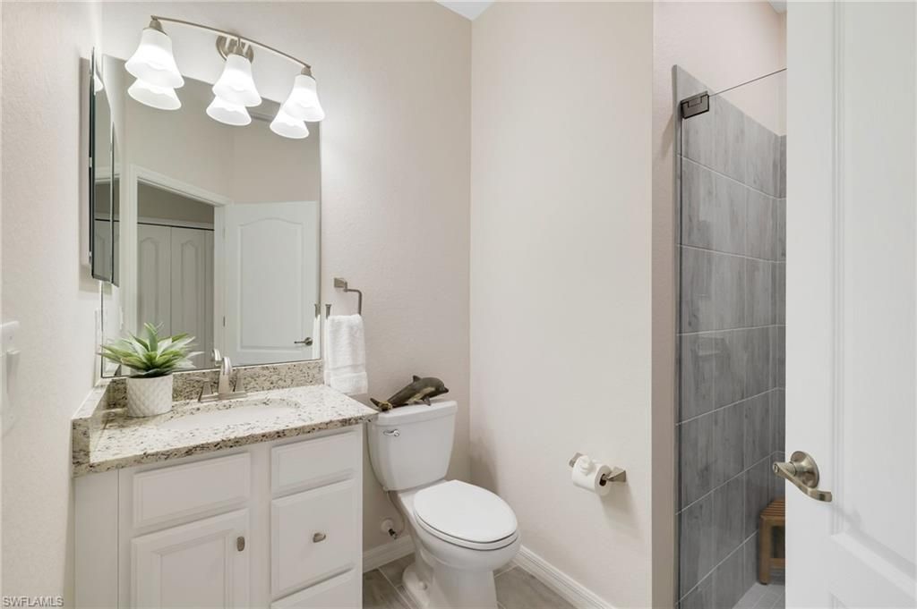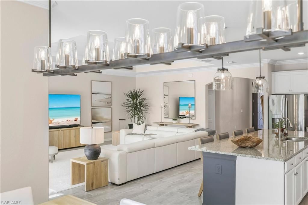 One or more photo(s) has been virtually staged, AI generated or rendered. Experience the epitome of Florida living in this immaculate modern single-family Summerville home located in the coveted community of The Place at Corkscrew. Boasting 2,445 square feet of living space, this custom 3-BEDROOM PLUS DEN, 3-BATHROOM pool home seamlessly combines style, comfort, and functionality to suit any lifestyle. Upon entry, you are greeted by a soft, neutral color palette and sleek kitchen featuring stainless steel appliances, white cabinets, an oversized island with granite countertops, and a walk-in pantry with custom shelves. The open layout flows into the living and dining areas, both bathed in natural light. From the TILE FLOORING to the PLANTATION SHUTTERS and upgraded lighting fixtures, every detail exudes luxury and sophistication. The highlight of the home is the CUSTOM SALTWATER POOL surrounded by Shell Stone tile and a PANORAMIC (no see-um) SCREEN that offers serene views of the vast preserve. With an EXPANSIVE PATIO area for gatherings, this 15 x 30 foot pool features a luxurious 15 x 8 foot sun shelf, designed and installed in 2024 to elevate your outdoor living experience. The primary suite offers a private sanctuary with a large bedroom, access to the lanai, DUAL CUSTOM BUILT WALK-IN CLOSETS, and a spa-like ensuite bathroom with dual sinks and a WALK-IN SHOWER WITH FRAMLESS GLASS. Two additional bedrooms located at the front of the house, one with its own ensuite bathroom, provide ample space and privacy for family or family. The office with FRENCH DOORS offers a quiet retreat for work or relaxation. Other notable features include IMPACT WINDOWS AND DOORS, double door entry, custom lighting and fans, new Bosch dishwasher, REVERSE OSMOSIS, laundry room with utility sink and extra storage cabinets, a 3-CAR GARAGE with insulated doors and attic, motorized blinds in the greenroom, keyless entry, WHOLE HOME WATER FILTRATION SYSTEM, Ring doorbell and cameras, and gutters. Set on a generous 0.24-acre lot with an East rear preserve views, this home is perfect for enjoying the Florida outdoors. Whether lounging by the pool, hosting gatherings, or unwinding in your own private sanctuary, this home offers it all. The Place at Corkscrew community amenities include an indoor/outdoor restaurant/bar, resort-style pool, water slide, 40-person spa, splash pad, 2-story fitness center, playground, tennis and pickleball courts, bocce ball, basketball court, and dog park. With low HOA fee, no flood zone and a prime location near shopping, dining, entertainment, RSW Airport, FGCU, and beaches, this home in Estero is a true gem for those seeking the ultimate Florida lifestyle.