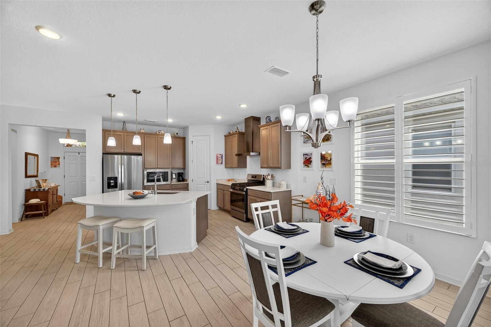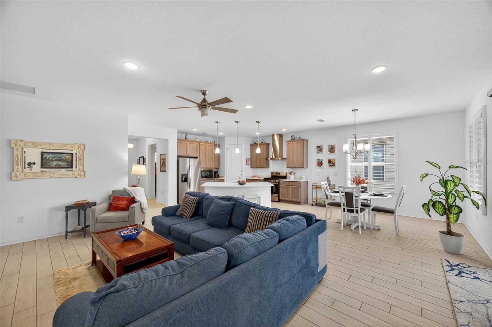 - Eat-in Kitchen, In-Wall Pest Control, Kitchen/Family Room Combo, Living/Dining Room, Open Floorplan, Solid Surface Counters, Solid-Wood Cabinets, Thermostat, Tray Ceiling(s)