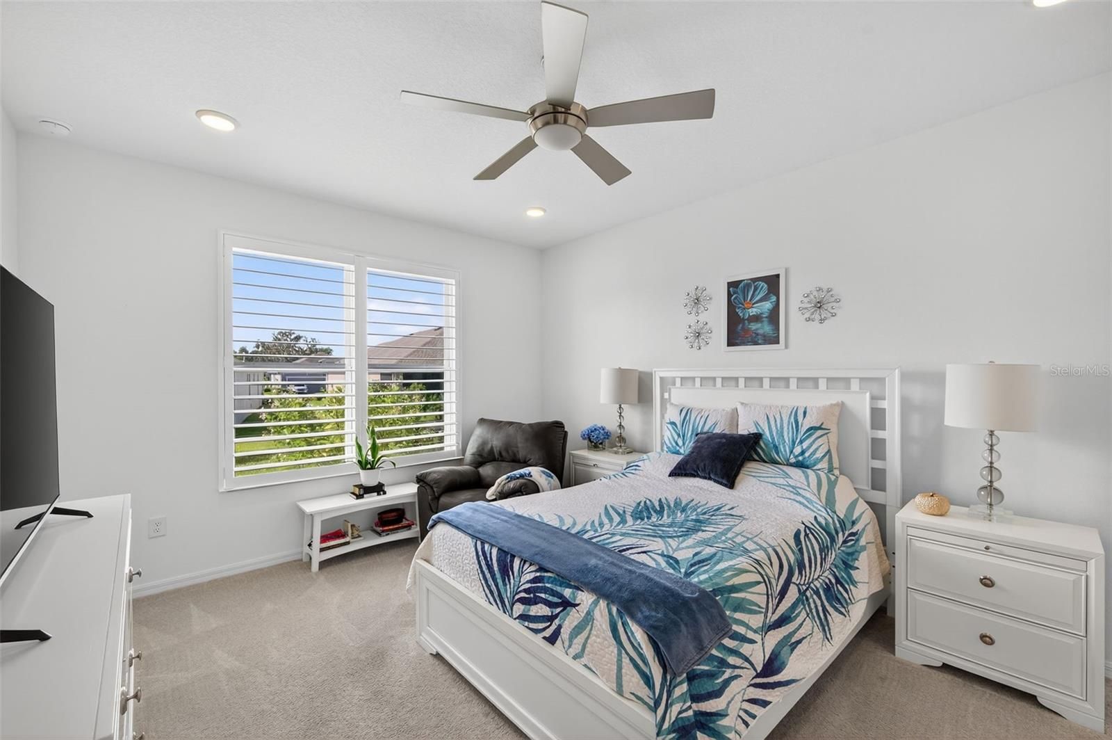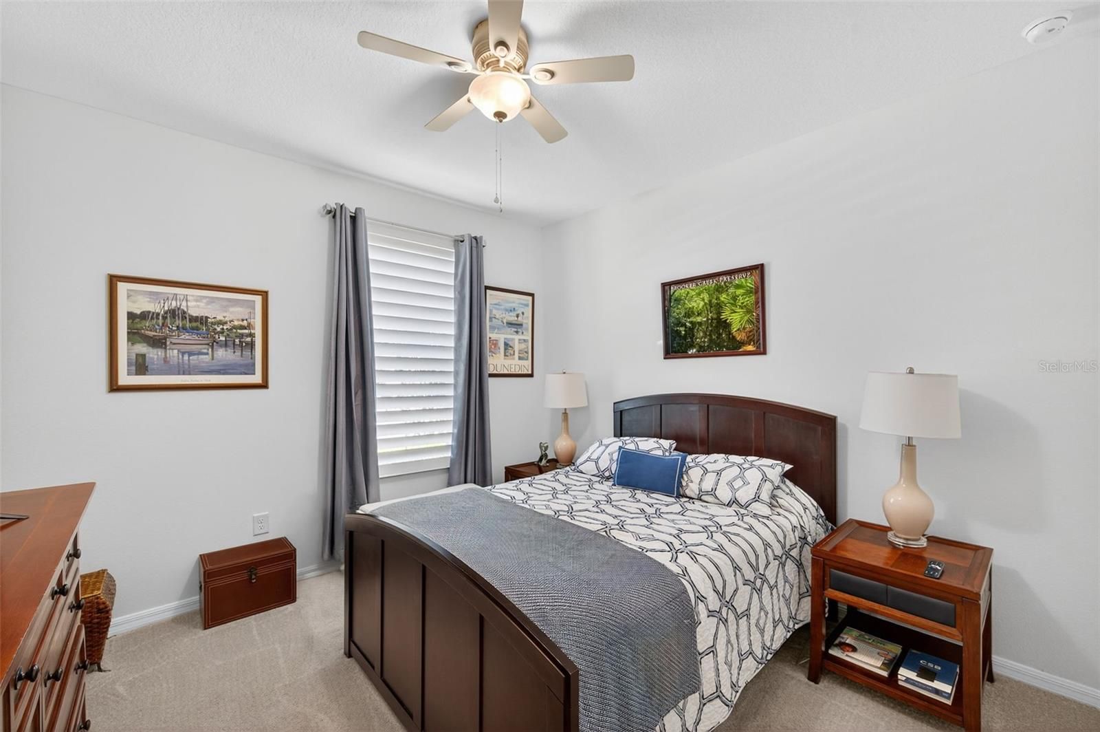 Driving through the gated entrance of Cascades at Southern Hills, you’re immediately greeted by oak-lined streets and a sense of tranquility. This 55+ community is tucked within Florida’s natural beauty, offering peace and privacy while still connecting you to an active lifestyle. One of the unique advantages here is the optional social membership to the Southern Hills Plantation Club that is available. As you arrive at the home, the brick-paved driveway and manicured landscaping set a welcoming tone. Inside, soaring ceilings and tall doors immediately create a sense of spaciousness. The open-concept design blends the kitchen, dining, and great room into a bright, inviting space. The kitchen is both stylish and practical, with stainless steel appliances, quartz countertops, a gas stove, and a generous island for meals, prep, or conversation. Plantation shutters frame the windows, adding a timeless touch to every room. The owner’s suite is a retreat designed for comfort, complete with a walk-in closet and a beautiful, large walk-in shower in the ensuite bath. A flexible bonus room just off the suite is ideal for a home office, den, or hobby space. Guests will enjoy their own comfortable bedroom and nearby full bath, offering privacy for everyone. Perhaps one of the most appealing features is the enclosed and screened patio, already completed for you, overlooking the landscaped backyard with added palms and plantings. It’s the perfect spot to enjoy your morning coffee or an evening breeze without the extra expense and wait that comes with a new build. Additional upgrades include a power shade, ceiling fans in every room (and on the porch), custom lighting, self-closing cabinets, and a water softener system. A 5-ton Trane AC provides efficient comfort, and the 10-year transferable structural warranty offers peace of mind for years to come. The washer and dryer are also included, making move-in effortless. Living here means more than just the home itself. The HOA covers cable, lawn mowing, fertilizing, pest treatments, and irrigation, giving you time to enjoy the community amenities. Take a swim in the lap pool, join a pickleball match, or relax by the fire pits with friends. The clubhouse offers both fitness and leisure, creating a lifestyle as active or relaxed as you choose. This home combines the charm of an established residence with the benefits of newer construction, plus the advantage of thoughtful upgrades already in place. Come experience it for yourself and see why Cascades at Southern Hills is more than just a neighborhood; it’s a way of life.