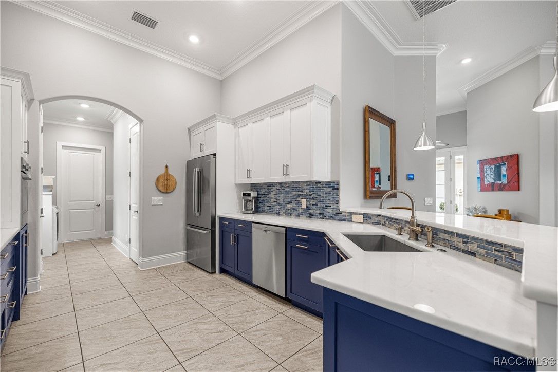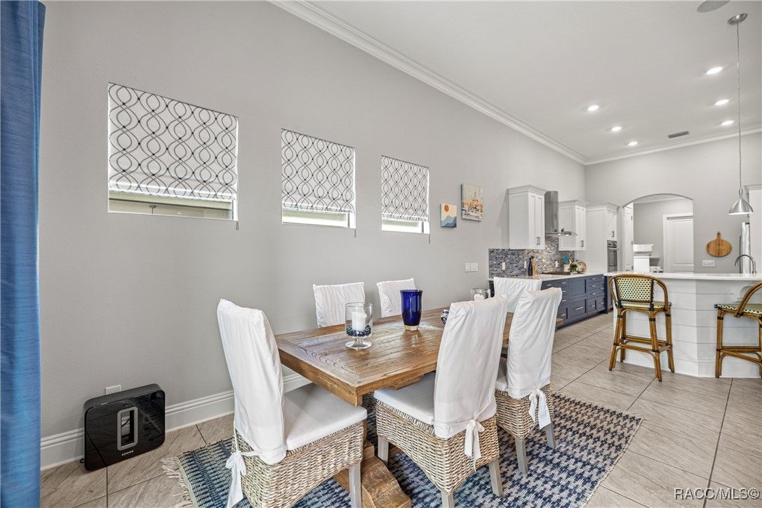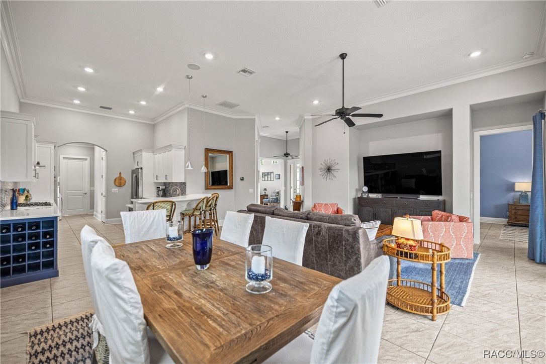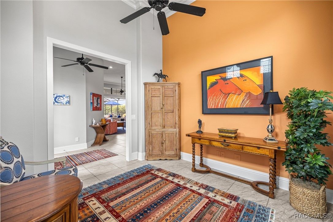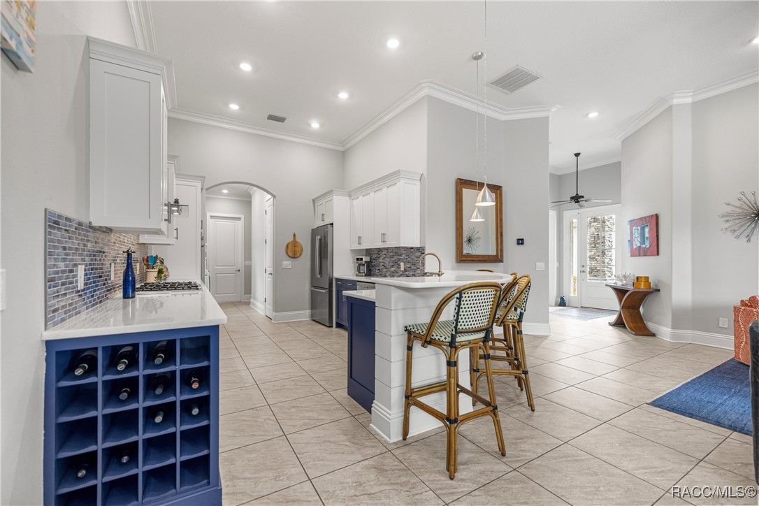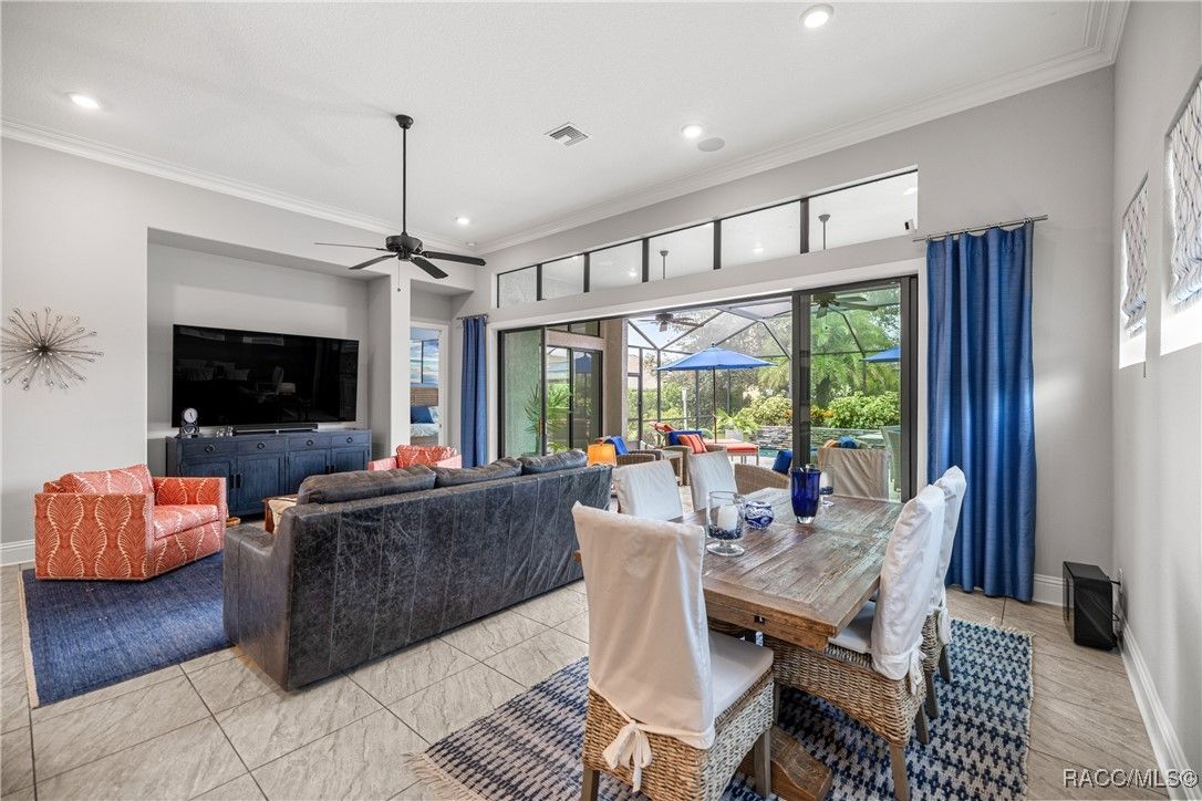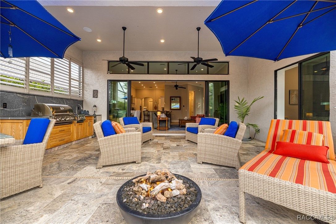 Tropical Paradise Living in Terra Vista! Step into your own private paradise as you gaze through the impressive 18-foot-wide sliding glass doors—opening to a lush tropical retreat with a sparkling saltwater pool and spa encased in beautiful stone. This stunning Carefree St. Thomas Style Home, set at 105 feet above sea level in the sought-after Westford Villas of Terra Vista, offers resort-style living at its finest. From the moment you arrive, you’ll be captivated by the elegant paver driveway in sophisticated gray tones, the slate tile roof, and the charming side-entry doorway that welcomes you into a bright, open living space designed for both relaxation and entertaining. Sellers are offering their Golf Cart to the Buyer with an executed contract that has a successful closing date. The gourmet kitchen features striking stone countertops, top-of-the-line appliances, and custom cabinetry, seamlessly flowing into the spacious great room—perfect for your favorite furnishings and gatherings. Throughout the home, enjoy upgraded tile flooring, plantation shutters, crown molding, and 7¼" base trim for a refined finish. Step out to the expansive travertine lanai—your ultimate outdoor oasis. Savor the soothing sounds of the planter waterfall, cook in the summer kitchen with grill, stove, sink, and refrigerator, or unwind by the outdoor fire pit under ambient decorative lighting that enhances the tropical ambiance. This home was built with quality and comfort in mind—featuring foam-core block walls, radiant barrier roof decking, and natural gas throughout, including the heated saltwater pool and spa. Technology and convenience abound with a Ring Doorbell and cameras, SONOS sound system, and 18-foot garage door. Live the resort lifestyle with Terra Vista’s world-class amenities—Tiki Bar, restaurants, three pools, pickleball, cycling, spa and fitness center, dog park, and over eight miles of scenic walking trails.