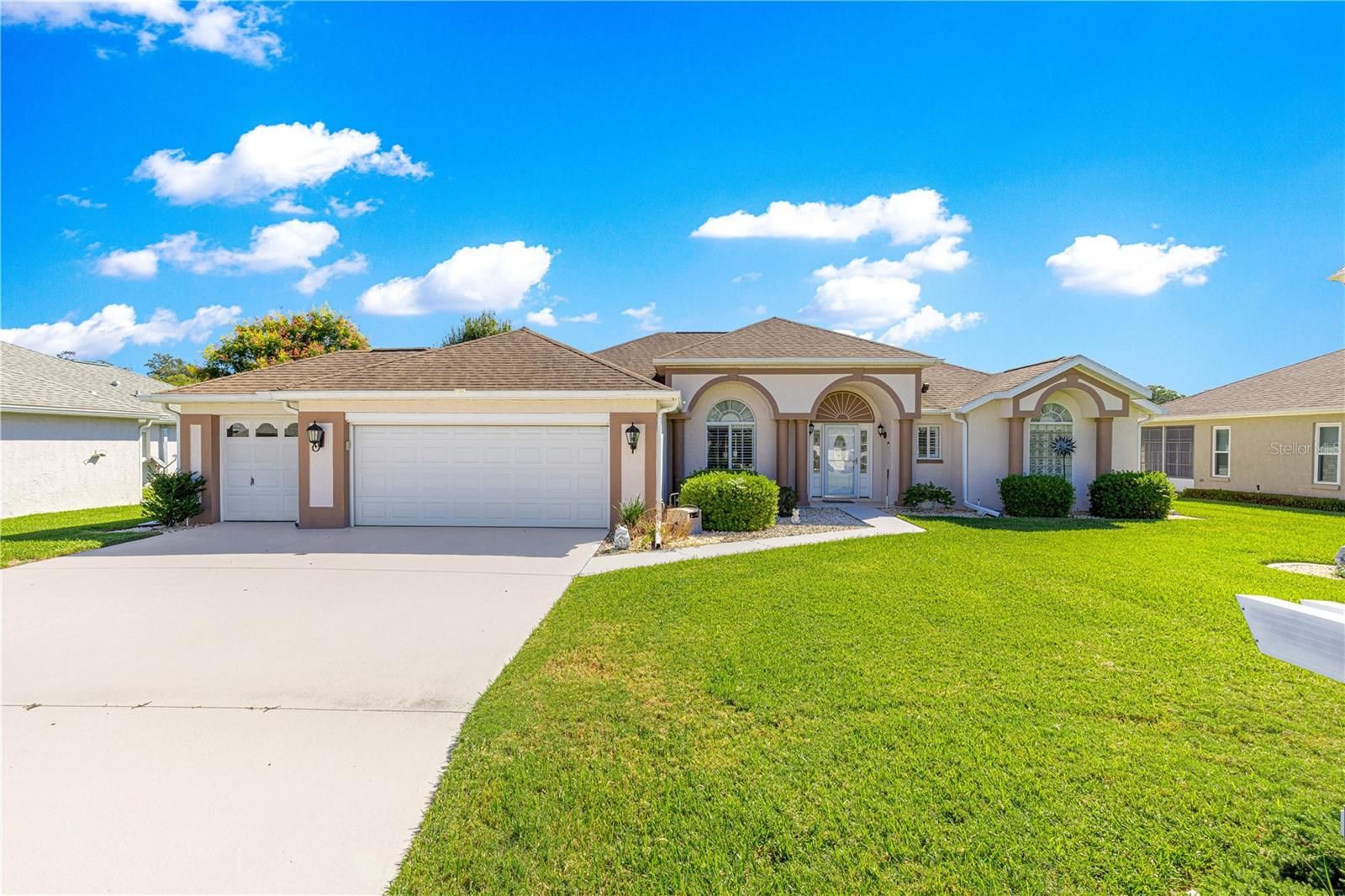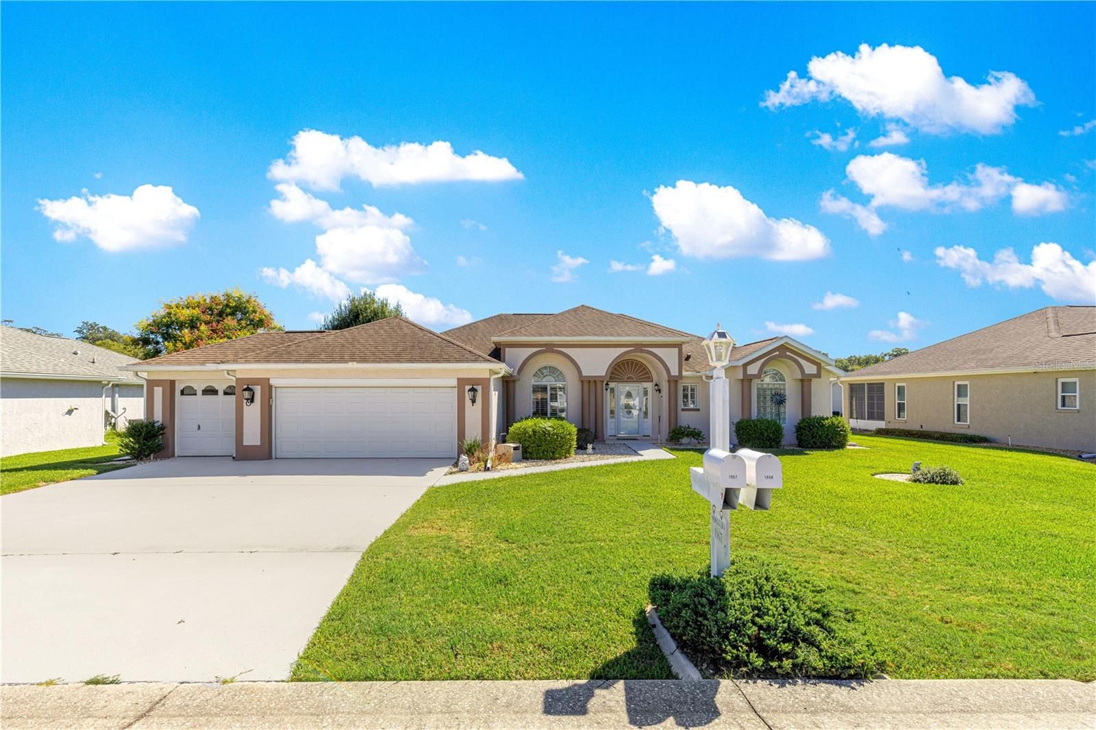 Lovely 3 Bedroom / 2 Bath home with Golf Cart Garage UPDATED throughout. This is a perfect sized home as it gives you 1906 ft.² plus an additional 308 ft.² of lanai all under heat and air (2,214 Total). This home features Updated Lighting in and outside the home , Plantation Shutters, Solar outdoor lights on Garage and Lamp Post. The Kitchen features Granite Countertops, Center Island Prep Area, BRAND NEW SS LG Appliances, which include a Double Oven, Pantry and Eat-in Area. Many great meals have been prepared in this kitchen....and now it's your turn ! Roof Replaced - 2014 , A/C Replaced - 2018 , Hot Water Replaced 2023. Furniture is optional, Golf Cart is 2yrs old and available. Ocala Palms is a very active 55+ community with an array of amenities. Enjoy the nice views of the golf course throughout the community. It boasts a 19,000 square-foot clubhouse, a fitness center, indoor heated pool, studio spaces and game rooms, and a library. The ballroom hosts an array of meetings, parties, and events. Outdoor amenities include an additional pool with spa, tennis/pickleball, bocce ball, shuffleboard, and volleyball courts. Golfers will enjoy the 18-hole golf course and driving range.