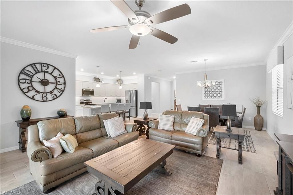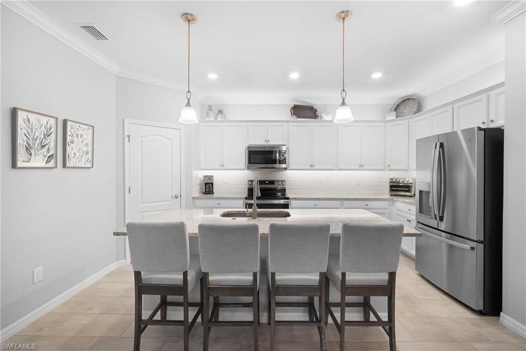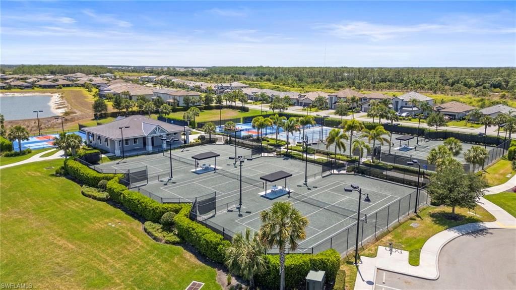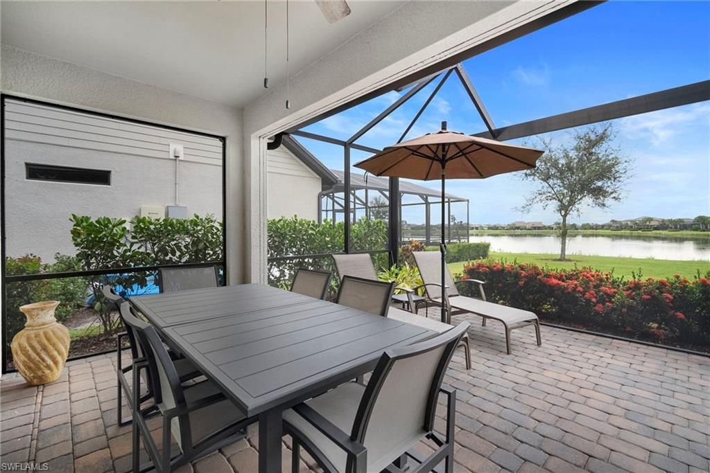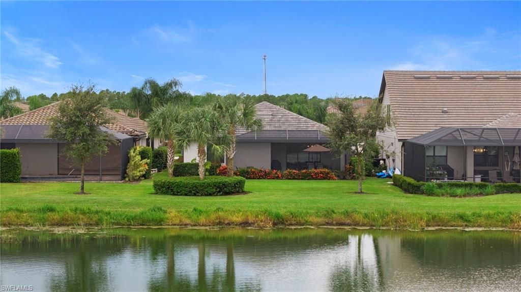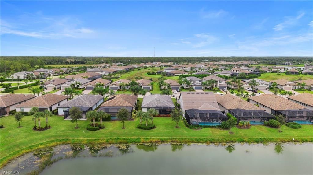 This beautifully maintained 4-bedroom, 3-bath Trevi model offers 2,032 sq ft of well-designed living space and one of the best lake views in the community. The open-concept layout centers around a spacious great room, ideal for both relaxing and entertaining. The kitchen features granite countertops (1 year New Appliances), a large center island, and generous cabinet space, seamlessly connecting to the living and dining areas for effortless flow. The private primary suite includes a spa-like feeling with dual sinks, large shower, while three additional bedrooms—one with its own en-suite—offer flexible options for guests, a home office, or hobbies. Thoughtful upgrades include custom electric roll-down shades, tinted grout for a clean, cohesive look, and an extended covered lanai with a panoramic picture screen where you can take in breathtaking water views. Clean landscaping and excellent curb appeal complete the exterior. As a resident of The Place at Corkscrew, you'll enjoy world-class amenities including a resort-style pool with a 100’ waterslide, spa, splash pad, state-of-the-art fitness center, tennis and pickleball courts, a playground, dog park, and multiple dining options like the Barefoot Bar & Grill and the Bourbon Bar.