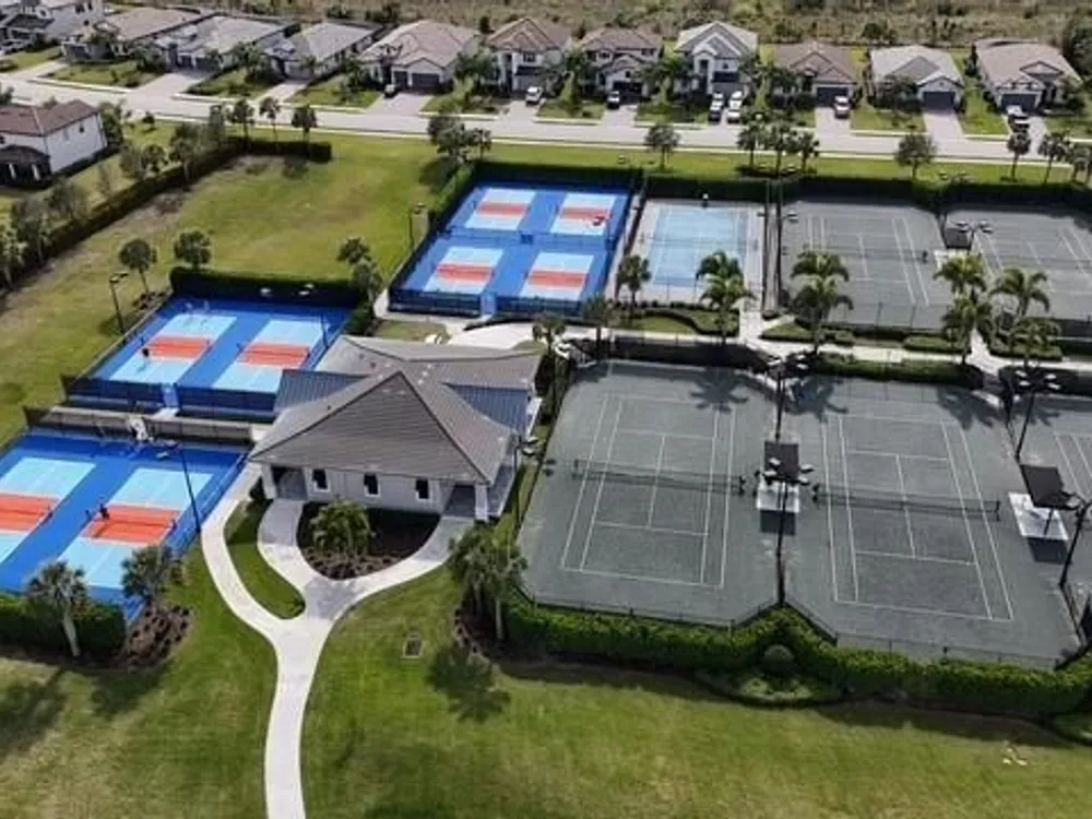 - Includes: Basketball Court, Bocce Court, Business Center, Cabana, Clubhouse, Park, Pool, Community Room, Spa/Hot Tub, Dog Park, Exercise Room, Pickleball, Playground, Restaurant, Sidewalks, Street Lights, Tennis Court(s), Utilities, Volleyball Court(s)