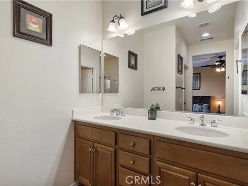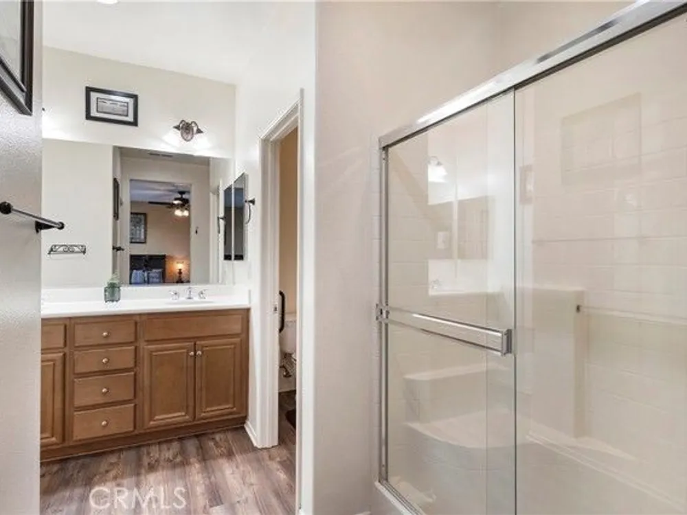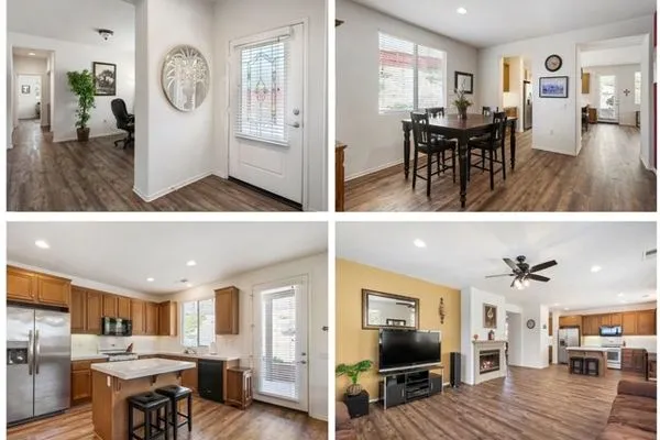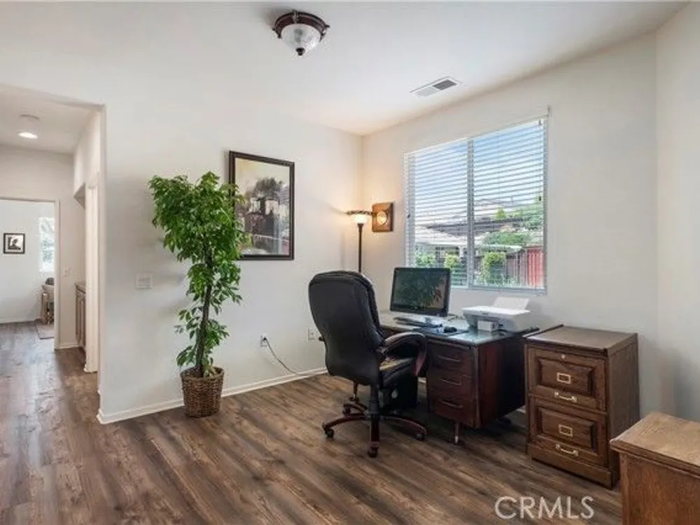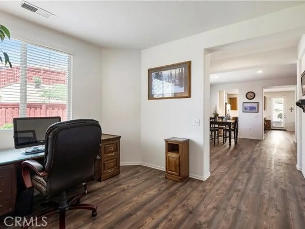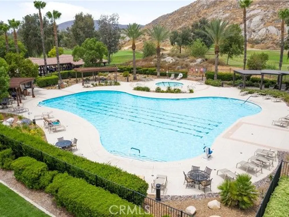 Discover your dream home in this stunning Masters 2 SINGLE LEVEL residence nestled at the end of a tranquil cul-de-sac within the exclusive “OVER 55” gated community of Four Seasons Hemet. This immaculate property boasts exceptional curb appeal and an expansive yard that offers both space and privacy, setting the stage for a truly serene lifestyle. Featuring 2 spacious bedrooms, 2 full baths, and an additional office, this home is perfectly designed for comfort and convenience. The elegant wood laminate floors flow seamlessly throughout, while stylish blinds adorn every room, ensuring both light and privacy. With a newer water heater and remote ceiling fans in the family room and primary bedroom, this home combines modern comforts with functionality. Step into the heart of the home—a well-appointed kitchen with a charming Butler’s Pantry that connects effortlessly to the dining room, making entertaining a delight. The primary bedroom is a true retreat, complete with a generous walk-in closet and an ensuite master bathroom that features a dual sink vanity and a private commode area. The oversized backyard is a true oasis, featuring an Alumawood patio cover for year-round outdoor enjoyment and a beautifully landscaped area with a brick-walled planter. With an automated sprinkler and drip system for easy maintenance, your outdoor space is designed for relaxation and gathering with friends and family. As a resident of this vibrant community, you’ll enjoy a wealth of amenities, including 24-hour security, a Bistro, ballroom, theater, game room, billiards room, library, gym, and salon. Outdoor enthusiasts will love the covered BBQ area, sparkling pool, relaxing spa, bocce courts, shuffleboard, and tennis and pickleball courts—ensuring an active and engaged lifestyle. Plus, you’re just a stone’s throw from breathtaking attractions like Diamond Valley Lake, the picturesque Temecula Wine Country, and the vibrant cities of Palm Springs, San Diego, and Los Angeles. This is more than just a home; it’s a lifestyle waiting for you to embrace. Welcome home!