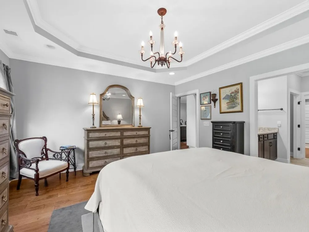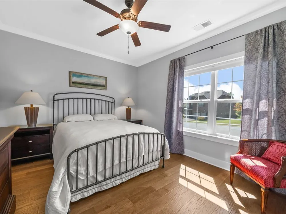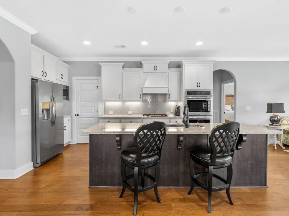 Upgrades, upgrades, upgrades! 197 Meandering Dr. is a real showstopper! Beautiful wood floors, arched doorways, crown molding on the entire main level, and a private backyard that's hard to beat! If you love to cook, you'll appreciate the built in double ovens, luxury cabinetry, the gorgeous quartz slab with just a hint of sparkle, under cabinet lighting, and custom shelves in the pantry. All appliances remain. The open floorplan is perfect too. It's spacious and really checks all the boxes. Sitting room, family room and dining room share a common space surrounding the kitchen. The main level primary suite connects to the primary bathroom, (with stand-up tiled shower and double vanities), which connects into the large designer closet (with floor to ceiling shelving), which then passes right through to the laundry room! The 2nd and 3rd bedrooms and a full bathroom are away from the primary, for extra privacy. Upstairs there's a second primary suite, with an attached full bathroom. It would also be a perfect bonus room, theater room, or in-law suite. For extra versatility, there's an office/hobby/playroom at the top of the stairs. Want to relax? Grab your favorite beverage and head out to the backyard that overlooks greenspace as far as the eye can see. Whether you like the sun or the shade, you've got options! The extended concrete patio is half covered & half uncovered. The attached 2 car garage has premium epoxy floors, tankless water heater, and a utility wash sink. The location of the home is great too. Just steps away from the clubhouse, gym, pool, splashpad, walking trail, and playground! Stonebridge has an active social club and monthly community events. Come fall in love and see why so many people call Stonebridge home.