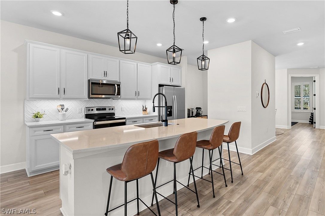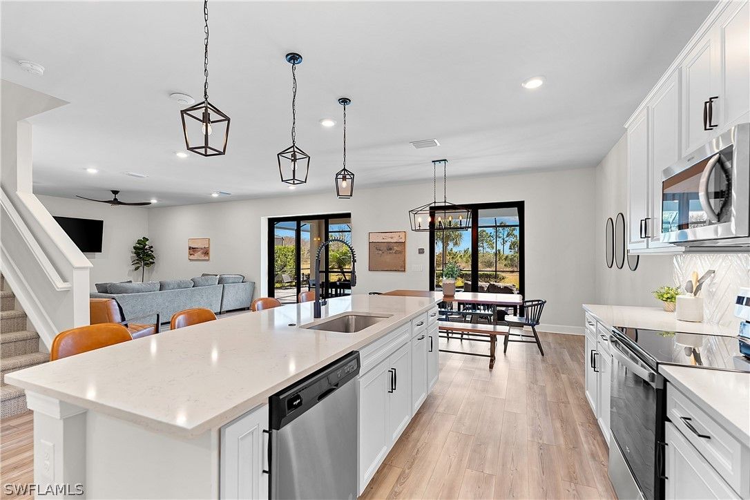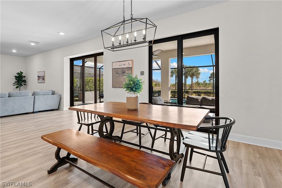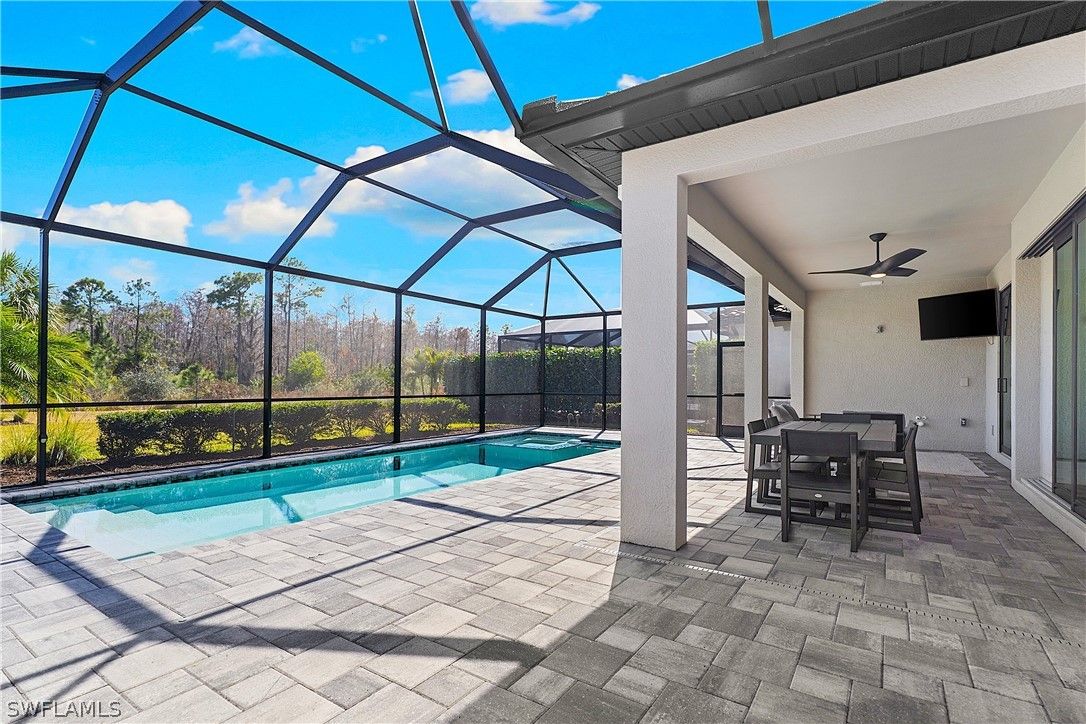 SPACIOUS “SANDHILL” MODEL WITH SPECTACULAR POOL AND SPA, PRIVATE PRESERVE VIEWS AND HUGE BACKYARD, IS AVAILABLE NOW IN THE PLACE AT CORKSCREW! This 2-Story Residence, built in 2022 by Pulte Homes, features 4 Bedrooms + Den + Loft, 3 Full Baths, Powder Bath, 2 Car Garage, 3,238sf Living area. Embrace the best of Florida living with this home’s versatile indoor/outdoor living spaces. The Extended Covered Lanai has a privacy wall with PLUMBING, ELECTRICAL, AND VENT ROUGH-INS for an Outdoor Kitchen. The HEATED POOL and FLUSH SPA is surrounded by a SEALED PAVERED DECK providing a perfect space for entertaining friends and family, lounging in the sun, or relaxing after a long day at work. The area behind the pool measures approximately 52' x 68' x 52' x 100'... a huge space to add a fence for the kids and/or pets, as well as additional landscaping if desired. As you enter the home, you immediately notice the IMMACULATE CONDITION. The downstairs provides living and entertaining space, while all the bedrooms are upstairs. The first floor has a farmhouse feel with all wood-look vinyl flooring throughout along with PLANTATION SHUTTERS. The Den showcases two large windows that let in a ton of light. Beyond the Den is the Formal Dining Space elegantly accented by a designer chandelier. The CHEF’S KITCHEN features White Cabinetry with Carrara Style QUARTZ Countertops, STAINLESS APPLIANCES, white subway HERRINGBONE BACKSPLASH accented by UNDERCABINET LIGHTING, and joined by an area for a Butler’s Pantry. The Kitchen is connected to the casual dining space and living room enhanced by the 2 SETS OF GLASS SLIDING DOORS (1 is a Pocketing Slider) that opens to your outdoor space. Downstairs is complete with a designer inspired powder bath by the garage. Upstairs you'll find new Berber carpeting throughout for a cozy feel. The PRIMARY SUITE features a TRAY CEILING and is accompanied by an OVERSIZED SITTING AREA and WALK IN CLOSET. The PRIMARY BATH is appointed with QUARTZ countertops, Dual Sinks, HEAVY GLASS ENCLOSED SHOWER, private water closet and linen closet. The Primary Suite is joined by 3 Guest Bedrooms, 2 Full Baths, Loft and Laundry. Home is equipped with IMPACT WINDOWS AND DOORS. THIS PROPERTY IS HIGH AND DRY AND LOCATED IN FLOOD ZONE X... NO FLOOD INSURANCE REQUIRED! The amenities at The Place at Corkscrew are second to none!... Resort Pool w/100' Waterslide & Spa, Indoor Restaurant and Bourbon Bar, Cafe, Outdoor Bar, Fitness Center, Movement Studio, Tennis, Pickleball, Bocce, Basketball, Playground, Dog Park, Childwatch, Spa Services, 2 Entry Gates. Just Minutes to Schools, Shopping, Restaurants, Airport, Beaches. For GOLF ENTHUSIASTS, the highly rated Jack Nicklaus designed OLD CORKSCREW GOLF CLUB is open to the public and located across the street from the community! NEW PUBLIX GROCERY STORE PLAZA, JUST 1.4 MILES AWAY! OTHER TENANTS INCLUDE DUNKIN DONUTS, UPS STORE, LEGNO ITALIAN RESTAURANT, NAIL SALON, DENTAL OFFICE, AND MORE!