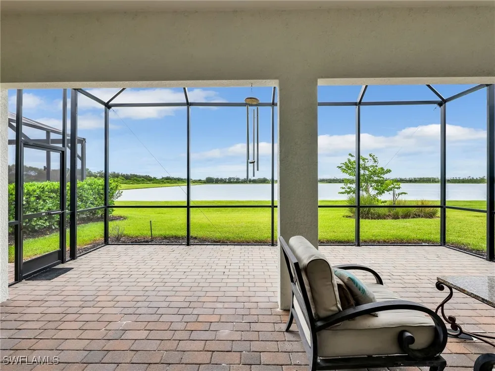 A BEAUTIFULLY APPOINTED 2-BEDROOM + DEN, 2-BATHROOM HOME located on a PREMIUM CUL-DE-SAC LOT with EXPANSIVE LAKE VIEWS and BREATHTAKING WESTERN-EXPOSURE SUNSETS. This meticulously maintained home offers the perfect combination of STYLE AND FUNCTIONALITY, featuring PORCELAIN TILE FLOORING THROUGHOUT, TRAY CEILINGS, and CUSTOM LIGHT FIXTURES that add elegance to every room. The GOURMET KITCHEN is a chef’s dream, complete with WHITE SHAKER CABINETS, QUARTZ COUNTERTOPS, PULL-OUT DRAWERS, STAINLESS STEEL APPLIANCES, and a GAS COOKTOP. The SPACIOUS PRIMARY SUITE boasts a LUXURIOUS EN-SUITE BATHROOM with a DOUBLE VANITY and an OVERSIZED WALK-IN CLOSET. Additional highlights include an OVERSIZED GARAGE WITH AMPLE STORAGE, WHOLE-HOME GENERAC GENERATOR, and NO FLOOD ZONE for peace of mind. The BACKYARD OFFERS PLENTY OF SPACE FOR A CUSTOM POOL, making it the perfect setting to create your private oasis. Located in PRIME FORT MYERS, this home offers LAKEFRONT SERENITY and MODERN UPGRADES with convenient access to the AIRPORT, SHOPS, AND RESTAURANTS. WILDBLUE AMENITIES INCLUDE: a RESORT-STYLE POOL & SPA, COMMUNITY BOAT RAMP, STATE-OF-THE-ART FITNESS CENTER, SPORTS FACILITIES (TENNIS, PICKLEBALL, BOCCE & MORE), ON-SITE RESTAURANT & OUTDOOR BAR, and MILES OF WALKING TRAILS. This NATURAL GAS COMMUNITY provides more than just a home — it delivers a LUXURIOUS AND ENGAGING LIFESTYLE. Don’t miss this incredible opportunity — SCHEDULE YOUR SHOWING TODAY!