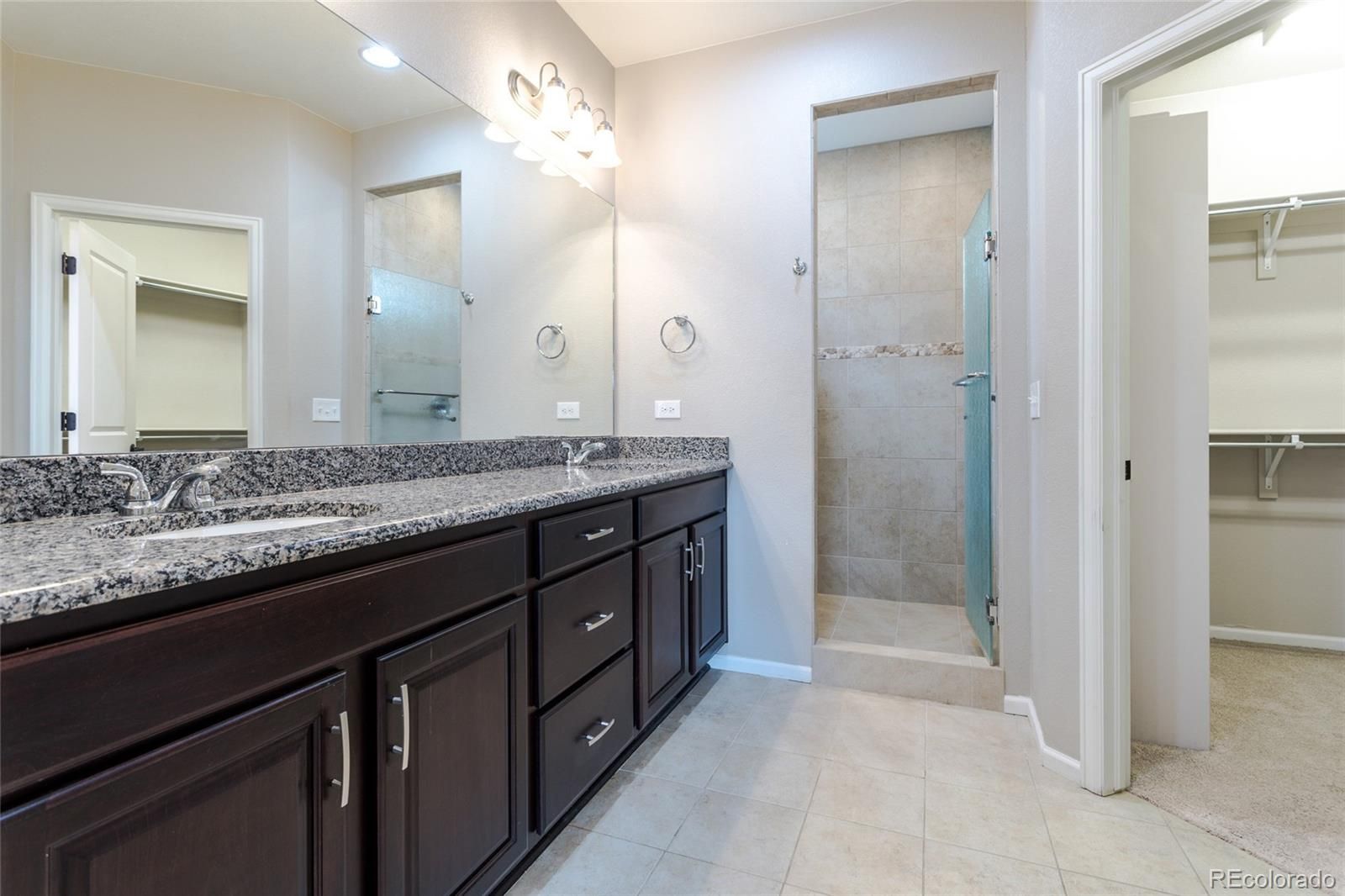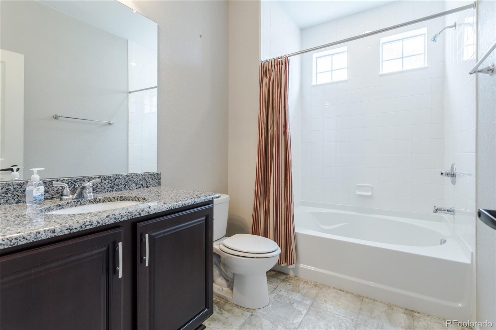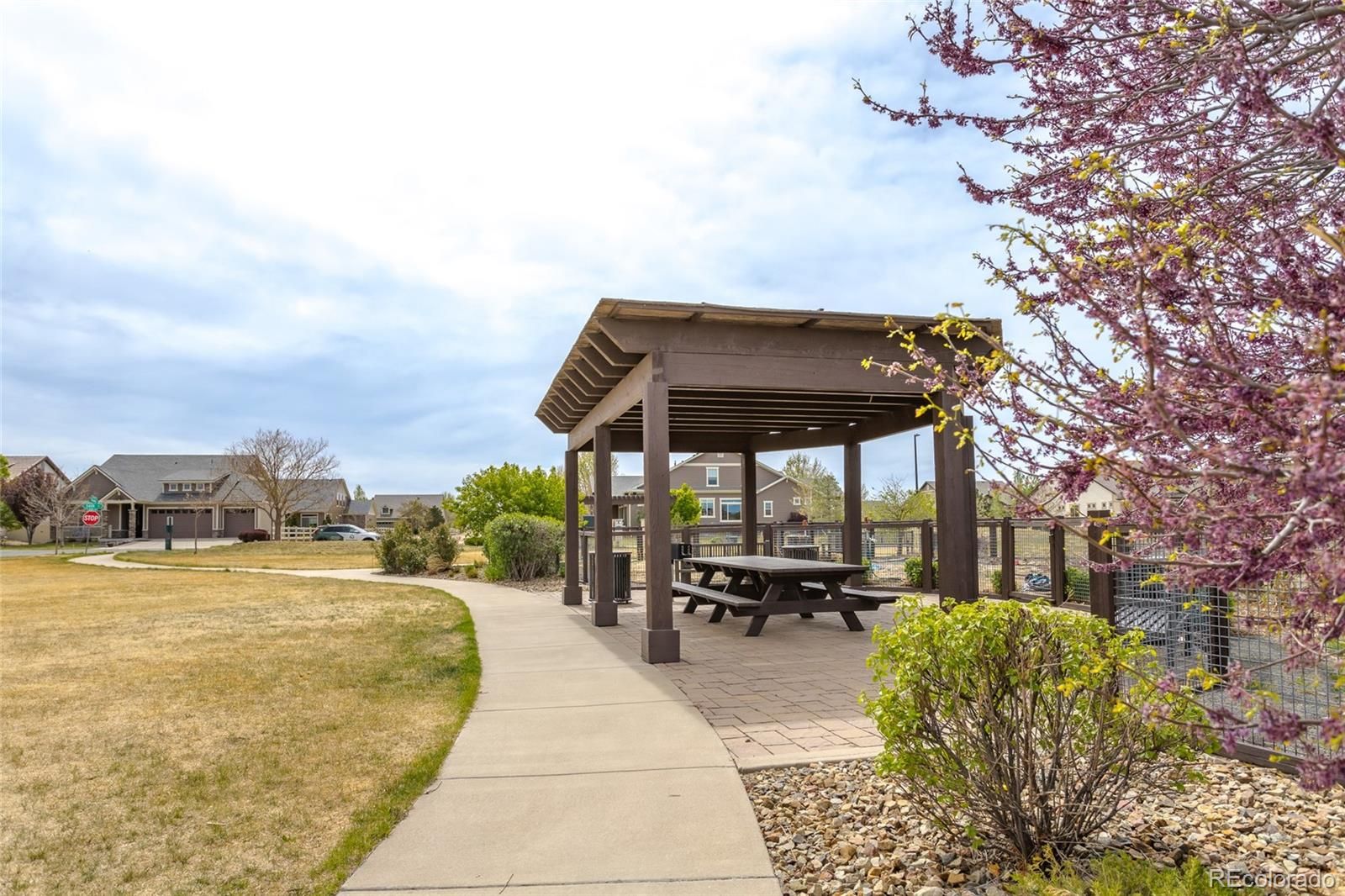 Welcome home! Move in ready! This two story beautiful home with a finished basement in this 55+ community is pride of ownership! You will not want to miss your opportunity to be the next owner of this spacious 3 bedroom, 3 1/2 bath home with amazing details and features. You will walk into the structured engineered wood flooring on the main level, with a study, main-floor Primary Suite, with an ensuite bathroom, and an additional full bathroom and another bedroom, a formal dining room/study, a huge breakfast nook, and large kitchen with granite countertop center island, plenty of storage space and neutral colors. The upper level has a huge loft, additional bedroom and a full bathroom. The backyard is perfectly landscaped and has a covered patio for your outdoor entertainment. The 3 car attached garage provides additional storage space. The main floor laundry room is conveniently located near the garage. The basement is finished with a half bathroom, and an open, high ceiling family/great room. There is additional unfinished space to add a bedroom or office. The community boasts of so many amenities and activities. The HOA fee includes access to the clubhouse, fitness center, the indoor/outdoor pool, jacuzzi, and common grounds maintenance. This property is unique with the additional finished square footage in the basement that was an addition to the builders original plan layout for this home requested by the sellers. The property is conveniently located near Denver International Airport, The Gaylord of the Rockies, trails, parks, schools, grocery stores, shopping and easy highway and Light Rail station access. You will not want to miss your chance to set a showing and see this property today. It is priced to SELL!!