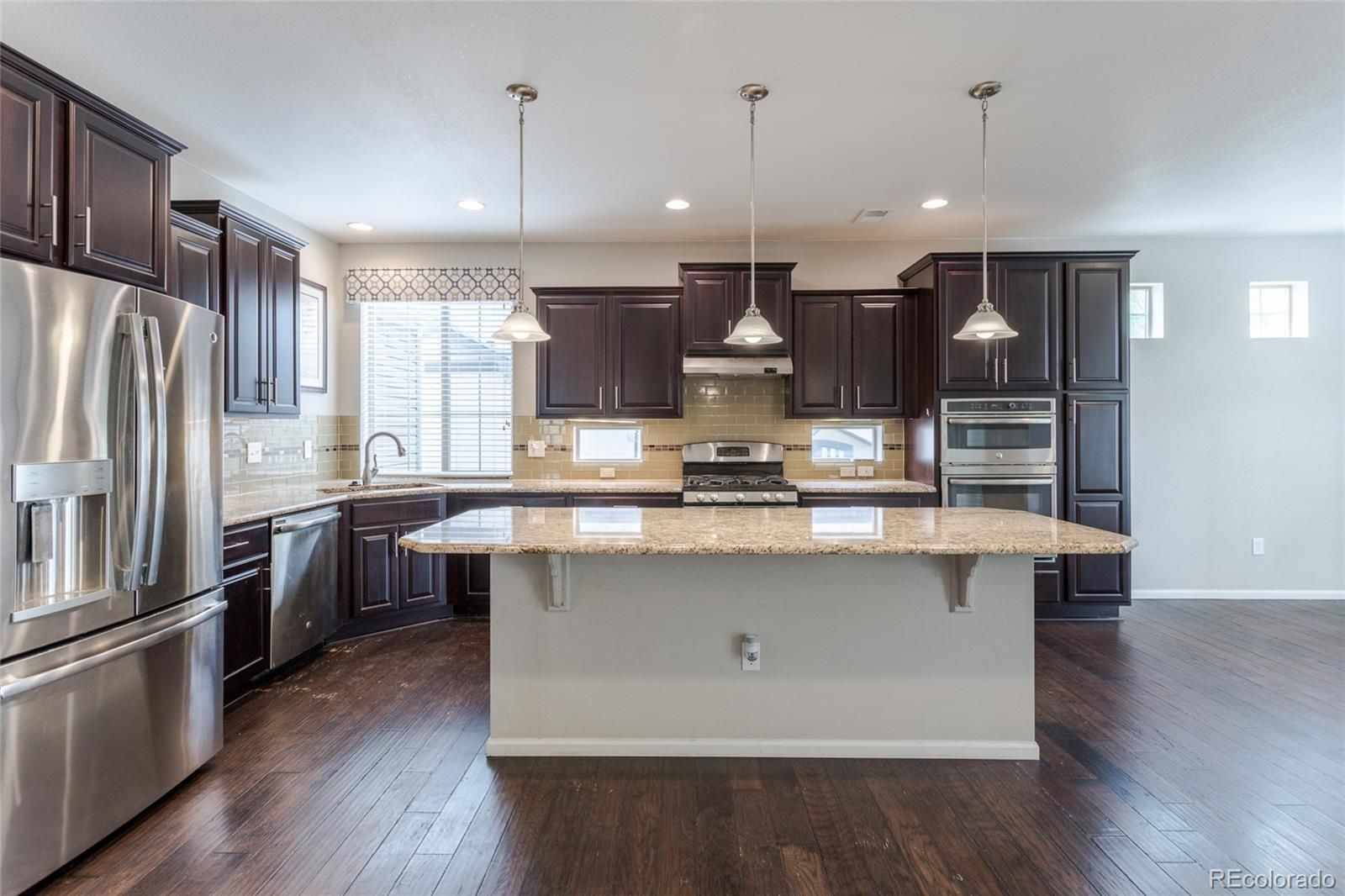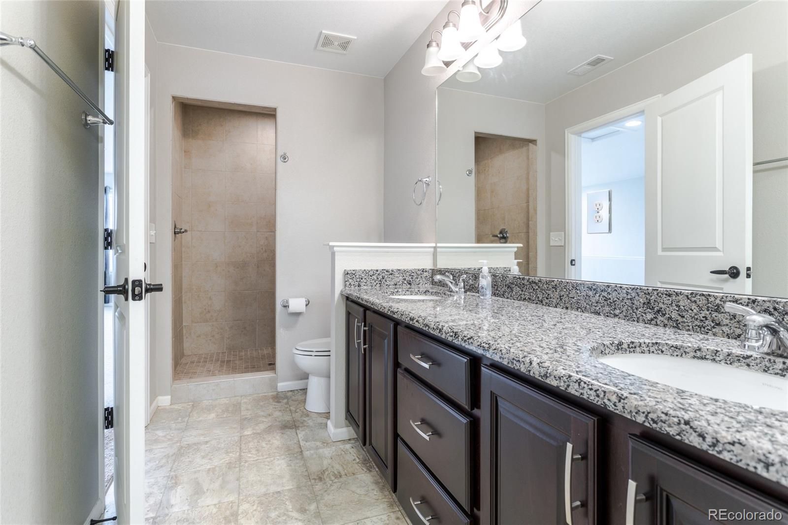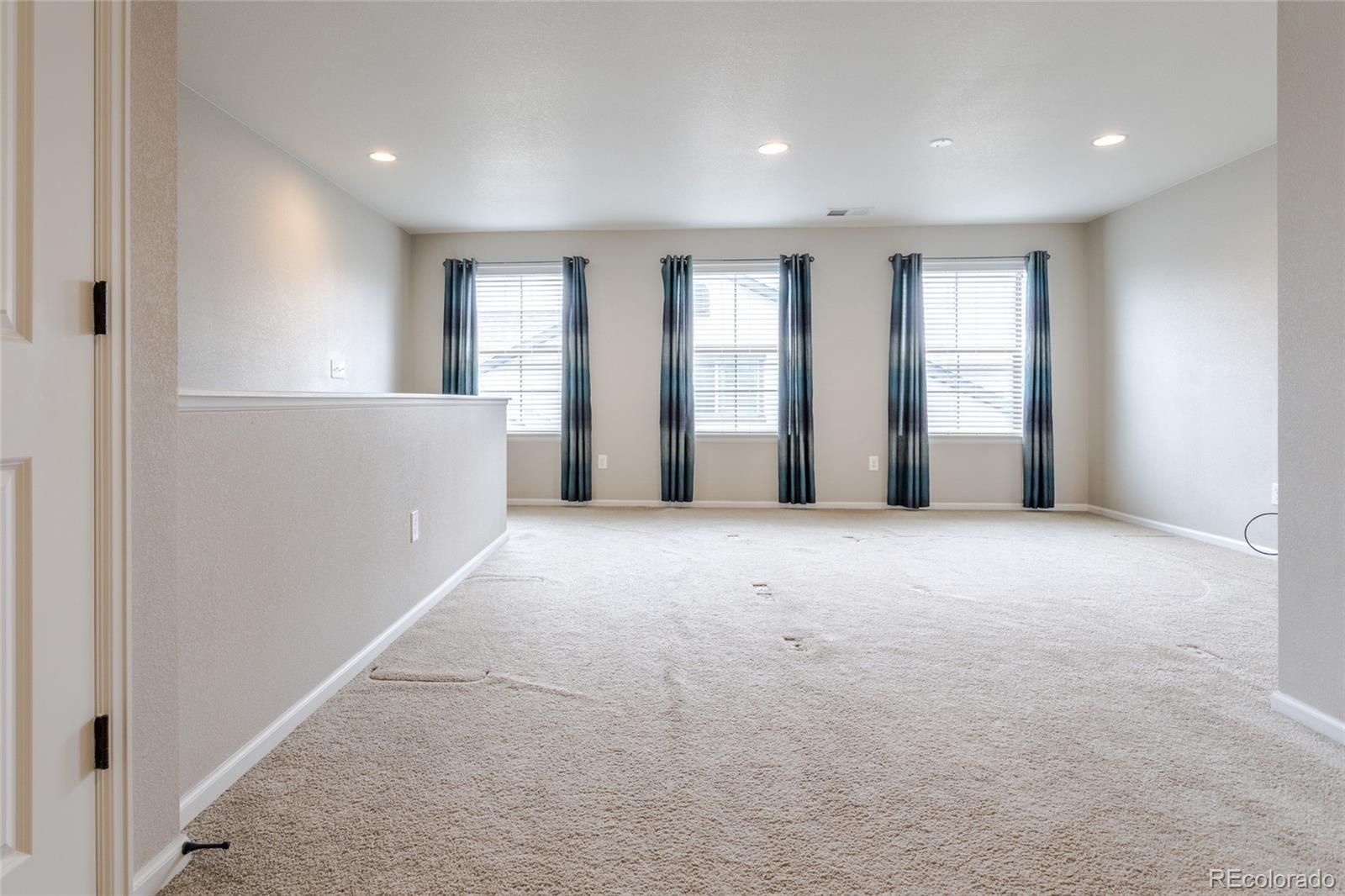 Welcome home! Move in ready! This two story beautiful home with a finished basement in this 55+ community is pride of ownership! You will not want to miss your opportunity to be the next owner of this spacious 3 bedroom, 3 1/2 bath home with amazing details and features. You will walk into the structured engineered wood flooring on the main level, with a study, main-floor Primary Suite, with an ensuite bathroom, and an additional full bathroom and another bedroom, a formal dining room/study, a huge breakfast nook, and large kitchen with granite countertop center island, plenty of storage space and neutral colors. The upper level has a huge loft, additional bedroom and a full bathroom. The backyard is perfectly landscaped and has a covered patio for your outdoor entertainment. The 3 car attached garage provides additional storage space. The main floor laundry room is conveniently located near the garage. The basement is finished with a half bathroom, and an open, high ceiling family/great room. There is additional unfinished space to add a bedroom or office. The community boasts of so many amenities and activities. The HOA fee includes access to the clubhouse, fitness center, the indoor/outdoor pool, jacuzzi, and common grounds maintenance. This property is unique with the additional finished square footage in the basement that was an addition to the builders original plan layout for this home requested by the sellers. The property is conveniently located near Denver International Airport, The Gaylord of the Rockies, trails, parks, schools, grocery stores, shopping and easy highway and Light Rail station access. You will not want to miss your chance to set a showing and see this property today. It is priced to SELL!!