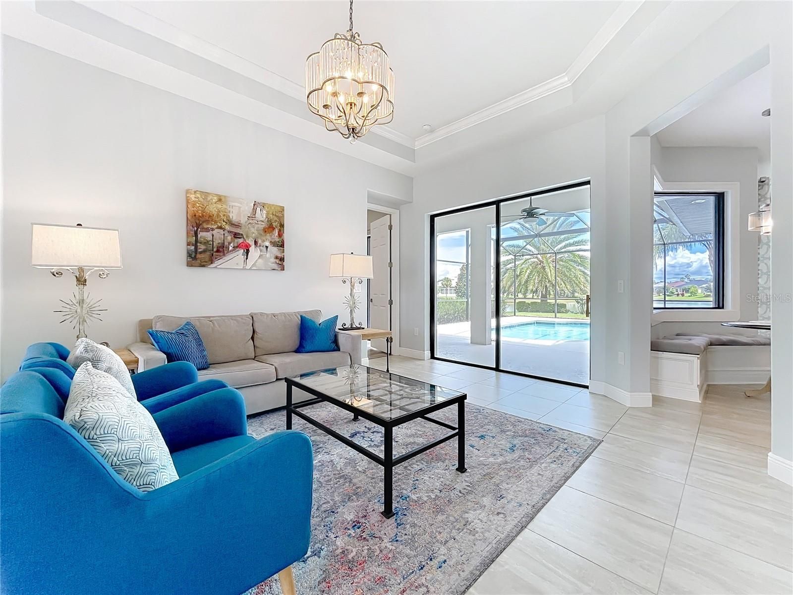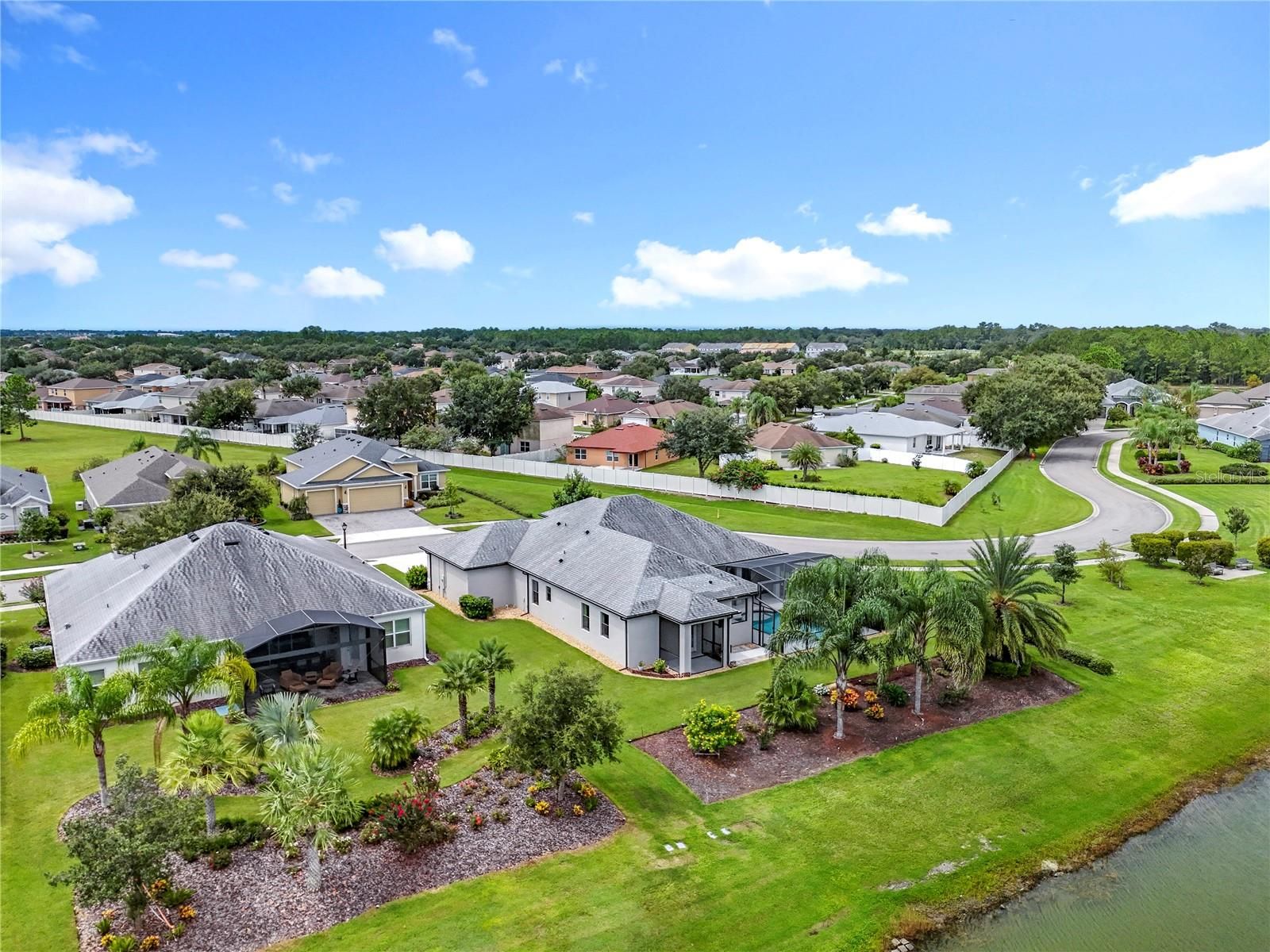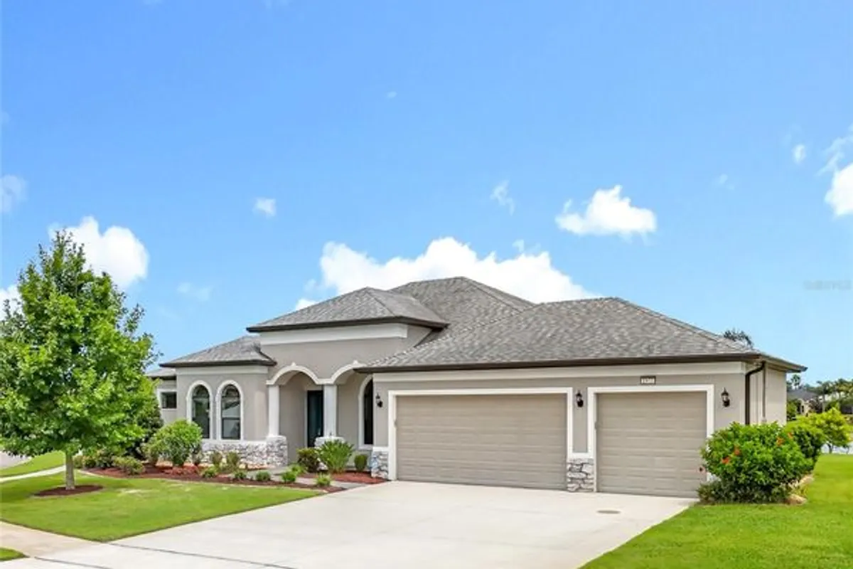 "Who says winter is too cold for a swim? Enjoy the luxury of a heated, salt-water pool all season long." Elegance and lakefront living come together in this beautifully designed single-level residence, complete with a pool and three-car garage. Nestled on an oversized lot with no neighbor to the left and a water view second to none - this home offers an enhanced sense of privacy and a more expansive outdoor setting. The perfect vantage point to enjoy the beauty of the natural landscape and its thriving wildlife. Thoughtfully designed, the home blends an open-concept layout with well-appointed separate spaces. The private in-law suite, complete with its own kitchenette and full bath, offers the perfect retreat for guests or multigenerational living. Adjacent to the primary suite, the primary bathroom is designed with dual 48-inch vanities and sinks, enhanced by a central makeup area for added functionality. Outdoors, a sparkling pool overlooks 4.5 miles of serene lakes -- an extraordinary setting for relaxation or gatherings. Best of all, you can glide straight from your home's edge into the lakes by electric boat, kayak, canoe or any craft that is not powered by gas. Icynene insulation delivers superior thermal performance and energy efficiency reducing monthly costs. This product also comes with a transferable warranty, offering added value and peace of mind for the new owner. Refined finishes, seamless functionality, and exceptional views combine to create a home that embodies the very best in luxury living. The community itself is truly second to none, centered around an impressive 18,000 sq. ft. clubhouse offering something for everyone. Inside, you'll find a card room, library, billiards room, craft room, fitness center, and a spacious social hall that hosts a variety of entertainment and events. Step outside to enjoy the resort-style pool, cozy fire pit - perfect for winter evenings and s'mores - and a wide array of sports amenities including tennis, pickleball, croquet, bocce ball, a softball field, and even cornhole. Residents also enjoy private golf cart access to the Country Club of Mount Dora where you can lunch or dine at the restaurant or take on the challenge of its beautifully maintained golf course. A future boat ramp will provide access for residents to launch their gas-powered boats onto scenic Loch Leven Lake. For added convenience your $280 monthly HOA fee also includes secured, fenced storage for boats and RVs. Furthermore, within 10 minutes you can be strolling through historic Mount Dora, enjoying its renowned restaurants, charming boutiques, and unforgettable small-town character. The lifestyle here leaves little to be desired!