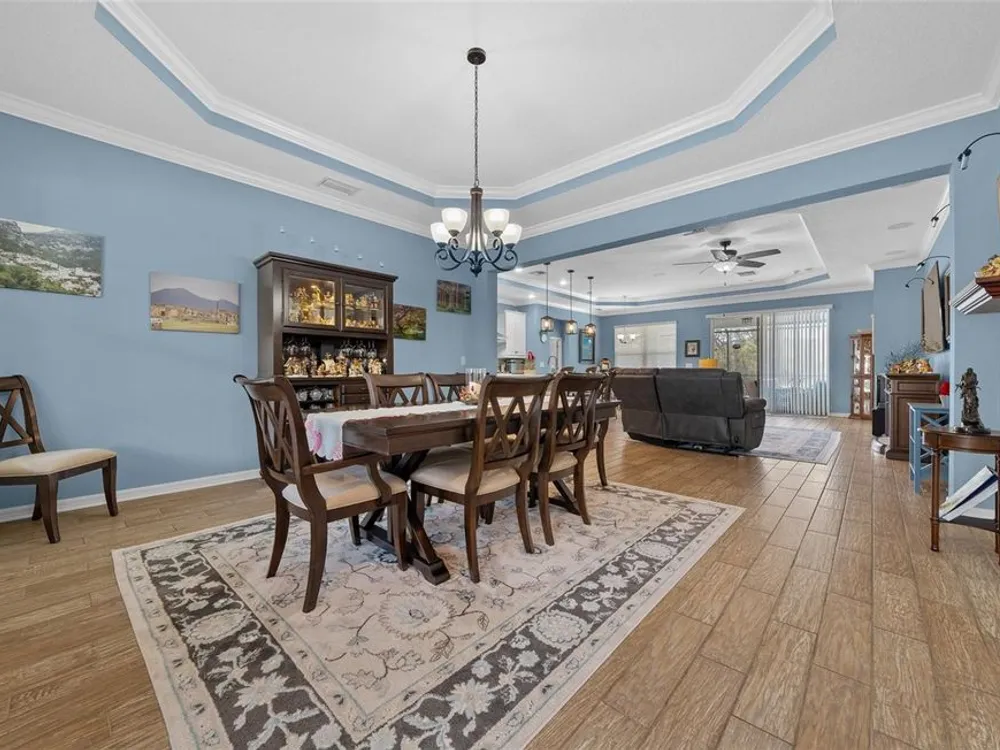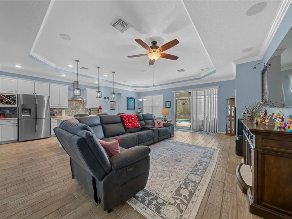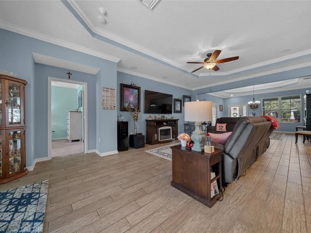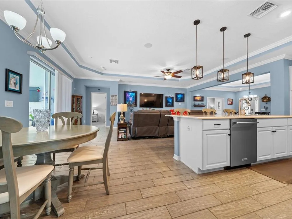 - Ceiling Fan(s), Crown Molding, Eat-in Kitchen, Kitchen/Family Room Combo, Open Floorplan, Stone Counters, Tray Ceiling(s), Walk-In Closet(s)