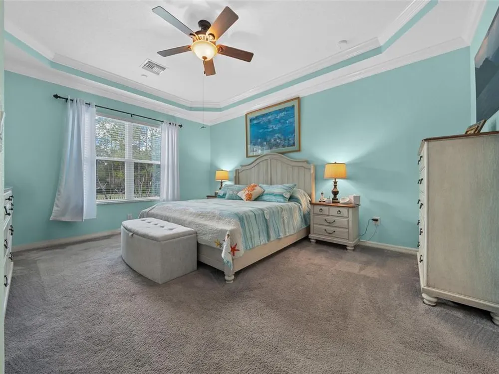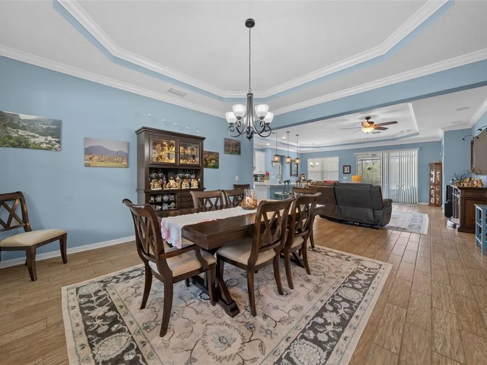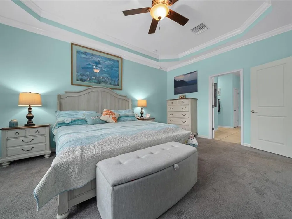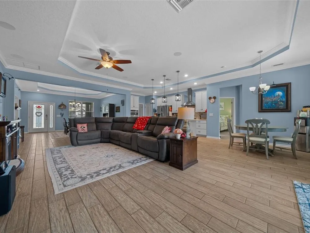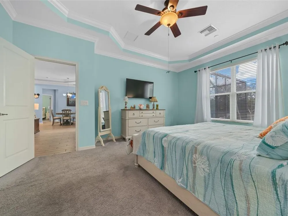 - Ceiling Fan(s), Crown Molding, Eat-in Kitchen, Kitchen/Family Room Combo, Open Floorplan, Stone Counters, Tray Ceiling(s), Walk-In Closet(s)