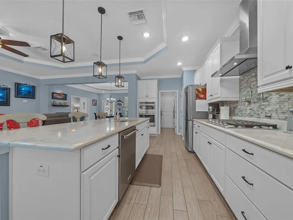 2018-BUILT + HEATED POOL + CORNER LOT WITH POND VIEW + SMART HOME + ACTIVE 55+ COMMUNITY Looking for a home that blends modern upgrades with a resort-style lifestyle? Welcome to this immaculate pool home in The Cascades at Southern Hills—a gated 55+ community where every day feels like a getaway. Inside, you'll love the WOOD-LOOK TILE FLOORS, CROWN MOLDING, and TRAY CEILINGS that add elegance throughout. The chef's kitchen is a dream with QUARTZ COUNTERTOPS, 42'' CABINETS, GAS COOKTOP, POT FILLER, DOUBLE CONVECTION OVENS (2022), and SOFT-CLOSE DOORS & DRAWERS—everything you need to cook and entertain in style. The kitchen flows seamlessly into the living room with surround sound and sliders that open to your HEATED POOL WITH TRAVERTINE DECK and PEACEFUL POND VIEWS. This is also a SMART HOME, allowing you to control the alarm system, thermostat, and front door right from your phone. The LED STAINED GLASS FRONT DOOR adds a unique touch of curb appeal, while the FENCED YARD offers privacy and convenience. The 2.5-CAR GARAGE provides plenty of space for a golf cart or extra storage, while thoughtful upgrades like a TANKLESS HOT WATER HEATER, BRICK PAVER DRIVEWAY, STONE ACCENTS, ATTIC STORAGE, and SPRINKLER SYSTEM make life easier. But it’s not just the house—it’s the lifestyle. At The Cascades, you’ll enjoy a private clubhouse, pickleball and bocce courts, horseshoes, and a sparkling community pool. Your HOA even covers lawn care, irrigation, cable, and internet! Want to golf? All of this is just minutes from Downtown Brooksville, Weeki Wachee Springs, and Pine Island Beach. Can you see yourself here? Schedule your private showing today—YOU WILL WANT TO SEE THIS ONE IN PERSON!