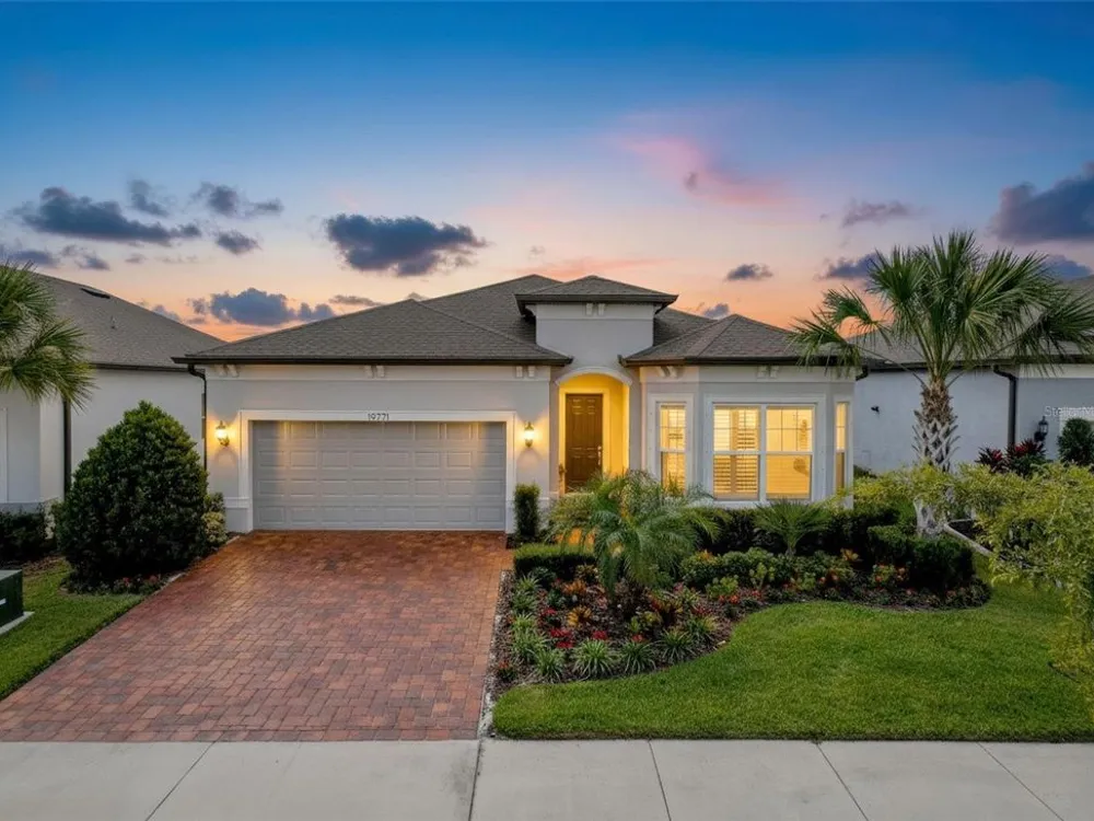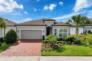 One or more photo(s) has been virtually staged. WELCOME TO THIS STUNNING HOME NESTLED ALONG THE LAKEFRONT IN A RESORT COMMUNITY WITH ENDLESS ACTIVE LIFESTYLE AMENITIES. Built in 2021 by Pulte Homes in a highly desired 55+ community, Marina Isles of Bexley. Perfectly positioned on a peaceful lakefront lot, this home showcases beautiful curb appeal with updated seasonal landscaping, vibrant flowers, and freshly sealed pavers leading to the entrance. Inside, you’ll find an open floor plan with gorgeous sealed tile flooring throughout the main living areas, soft carpet in the bedrooms, and crown molding enhancing both the main living space and the luxurious master suite. The chef’s kitchen is a showstopper featuring a large island, walk-in pantry, recessed can lighting, under-cabinet lighting, soft-close drawers, a gas stove, built-in oven and microwave, and an upgraded mirrored and glass tile backsplash that adds a touch of sophistication. The spacious master suite offers a tranquil retreat with his-and-her closets, dual sinks, a large walk-in shower with a flush floor, and thoughtfully installed grab bars for added safety. Sunburst shutters grace every window and the French doors, enhancing both style and privacy. This home is filled with practical upgrades including Shelf Jennie installations throughout the baths, laundry room, and kitchen, as well as a Blair water softener (leased monthly). Enjoy the beauty of Florida living on the brand-new screened patio (2025), overlooking the serene lake, where you can relax or entertain with ease. The 4-foot oversized 2-car garage with epoxy-finished flooring provides exceptional storage and durability, making it both functional and attractive. With every detail carefully selected, from the recessed lighting to the crown molding, from the thoughtfully designed master bath to the inviting outdoor living space, this home exemplifies comfort, safety, and elegance in equal measure. THE PHOTOS ILLUSTRATE, HOWEVER SEEING THIS PRECIOUS HOME IN PERSON MAY CAUSE YOU TO INSTANTLY FALL IN LOVE. Do not miss an opportunity, schedule your private tour today.