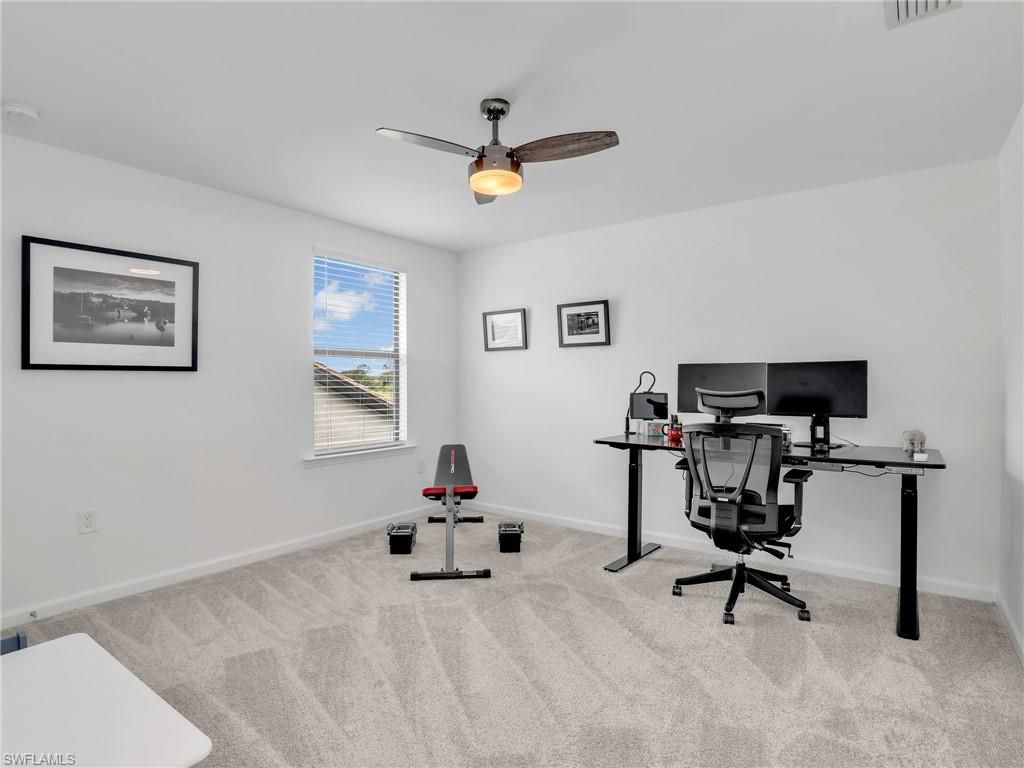 WOW! This home offers remarkable space, style, and value! This beautifully designed 5 bedroom, 4 bathroom residence in The Place at Corkscrew was built by Pulte in 2023 and features modern finishes, flexible living areas, and an upstairs bonus room ideal for work, play, or relaxation. The expansive screened lanai overlooks a rare pesticide free grassy area that is perfect for pets, children, or entertaining. The enclosure can be removed if you wish to add pavers or build a custom pool. Notable upgrades include a whole home water treatment system with reverse osmosis, pre plumbing for an outdoor kitchen, a laundry room sink, and an extended garage with epoxy flooring and an additional utility sink. The Place at Corkscrew provides unmatched resort amenities including a spectacular pool complex with waterfalls, a water slide, a splash pad, a large spa, and cabanas. Residents enjoy dining at the Bourbon Bar and the Barefoot Bar and Grill, as well as a community café with smoothies, coffee, and ice cream. A fitness center, aerobics studio, spa services, kids club, playground, dog park, and multiple sports courts complete your resort lifestyle. The location is exceptional, close to Old Corkscrew Golf Course, Publix, Southwest Florida’s only winery, Miromar Outlets, Gulf Coast Town Center, and RSW Airport. Luxury, comfort, and community come together beautifully in this impressive home!