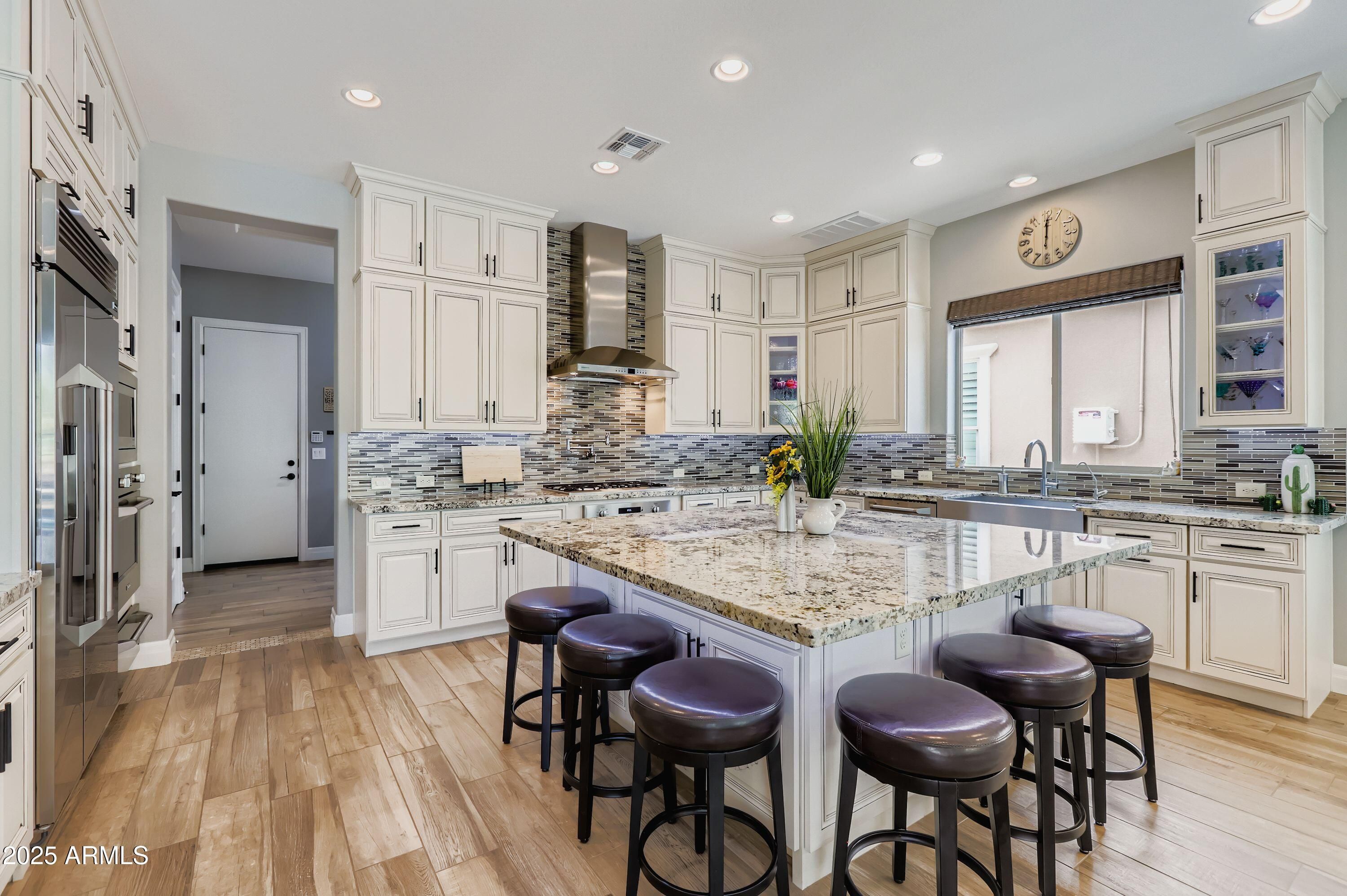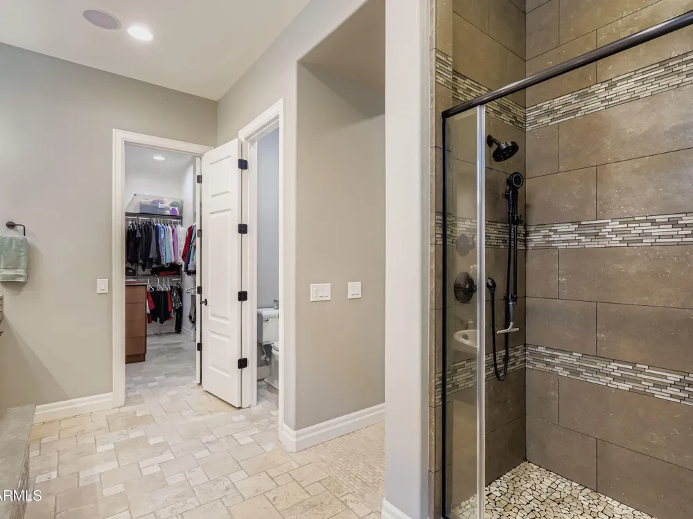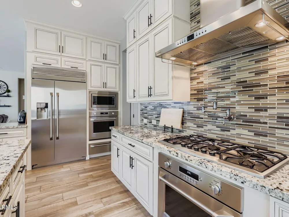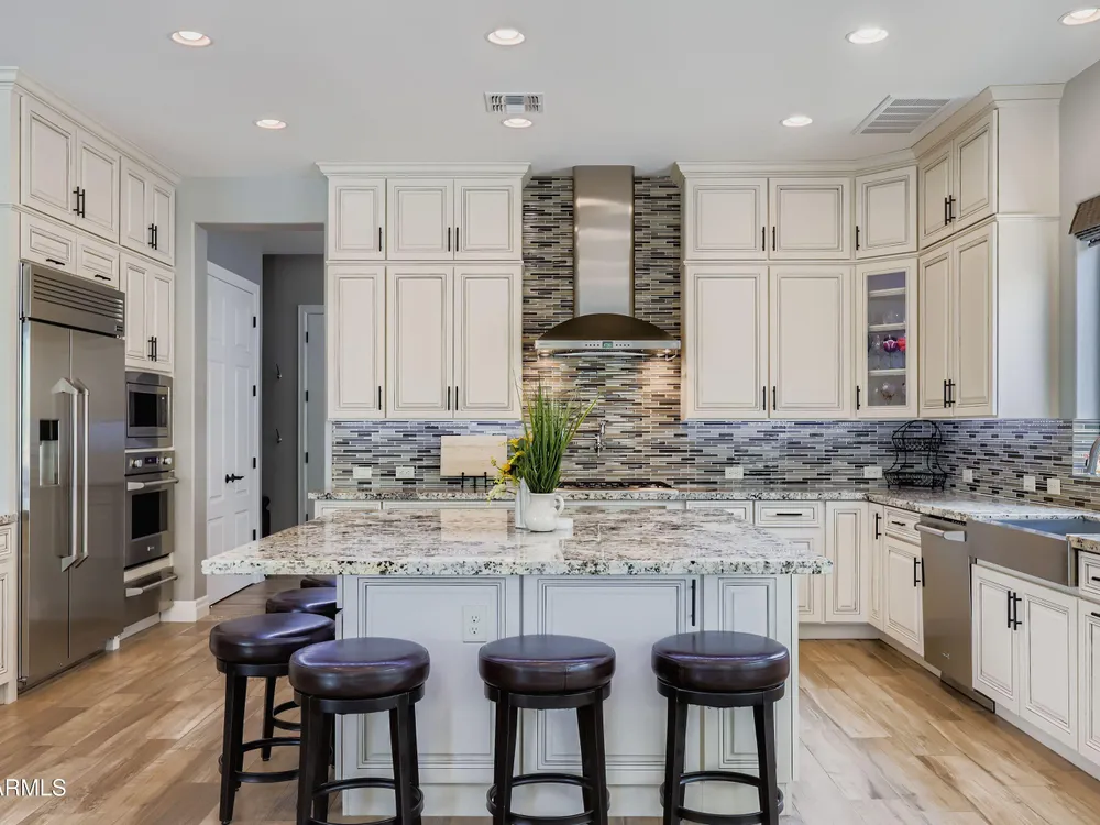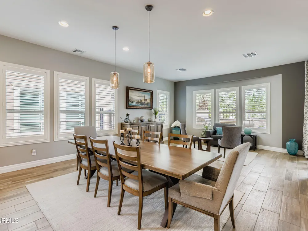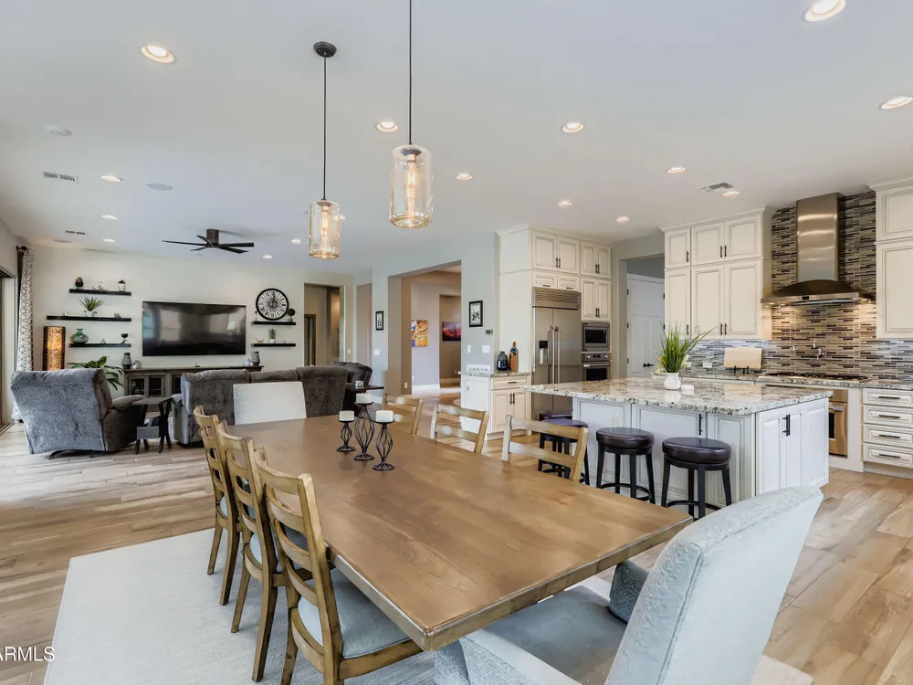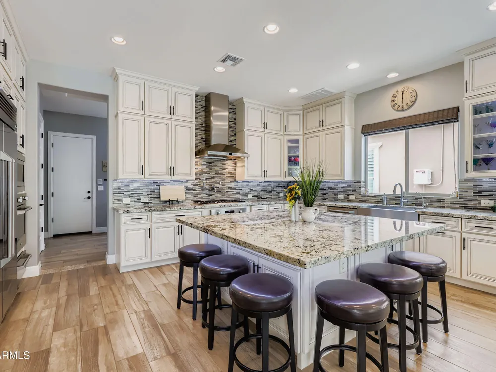 This Stunning and Highly Upgraded Alora model home boasts countless Upgrades and Timeless Style. From the Cobblestone Drive and Courtyard, you enter the Beautiful Canterra Iron Door and are immersed in Luxury Finishes and warm tones. The vast Chef's Gourmet Kitchen will spoil you with Floor-to-Ceiling Custom Cabinets, Premium Built-in SS Appliances and Gas Range, a Huge Stone Island, Cabinet Pullouts and a Massive Pantry, while the 10' Ceilings and Spacious Great Room make a wonderful place to Socialize and Entertain. Shutters, Wood-Look Tile and Custom Paint throughout complement the 8' Stacking Patio Sliders, Extended Bay Windows, Coffered Ceilings, Custom Lighting, Designer Showers and Fabulous Smart Space/Laundry Room. There are speakers throughout the home and patio and each bedroom has its own private ensuite. But maybe you will prefer to be outside with the Pebbletech Pool, Built-in BBQ Island, oversized Firepit and Designer Landscaping in a Beautiful yard with no neighbors behind and Sunset views. If you venture out to the Clubhouse, you have endless clubs and social engagements to embrace, and indulge in the Explorations Cafe, Apps & Apres, La Palma Kitchen & Tap, and Bistro 1528. Experience a Private Golf Club, Indoor and Outdoor Pools, a Newly Renovated Gym, Pickleball, Tennis, Bocce Ball and some Adult Libations at the Algarve Pool & Bar. Imagine Yourself in this Fabulous Lifestyle, this meticulous and very special home will not disappoint.