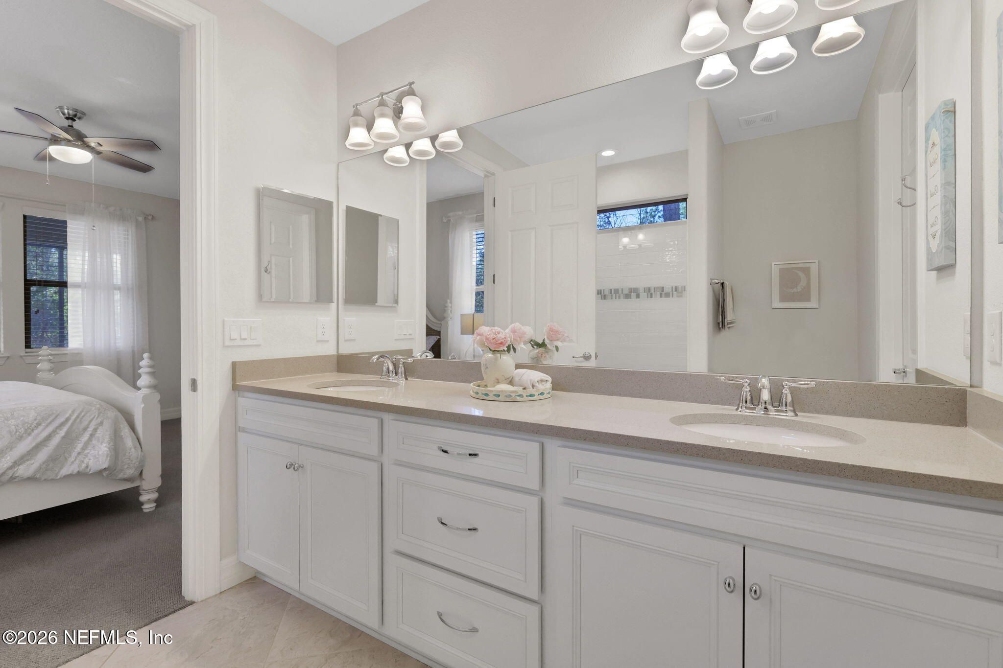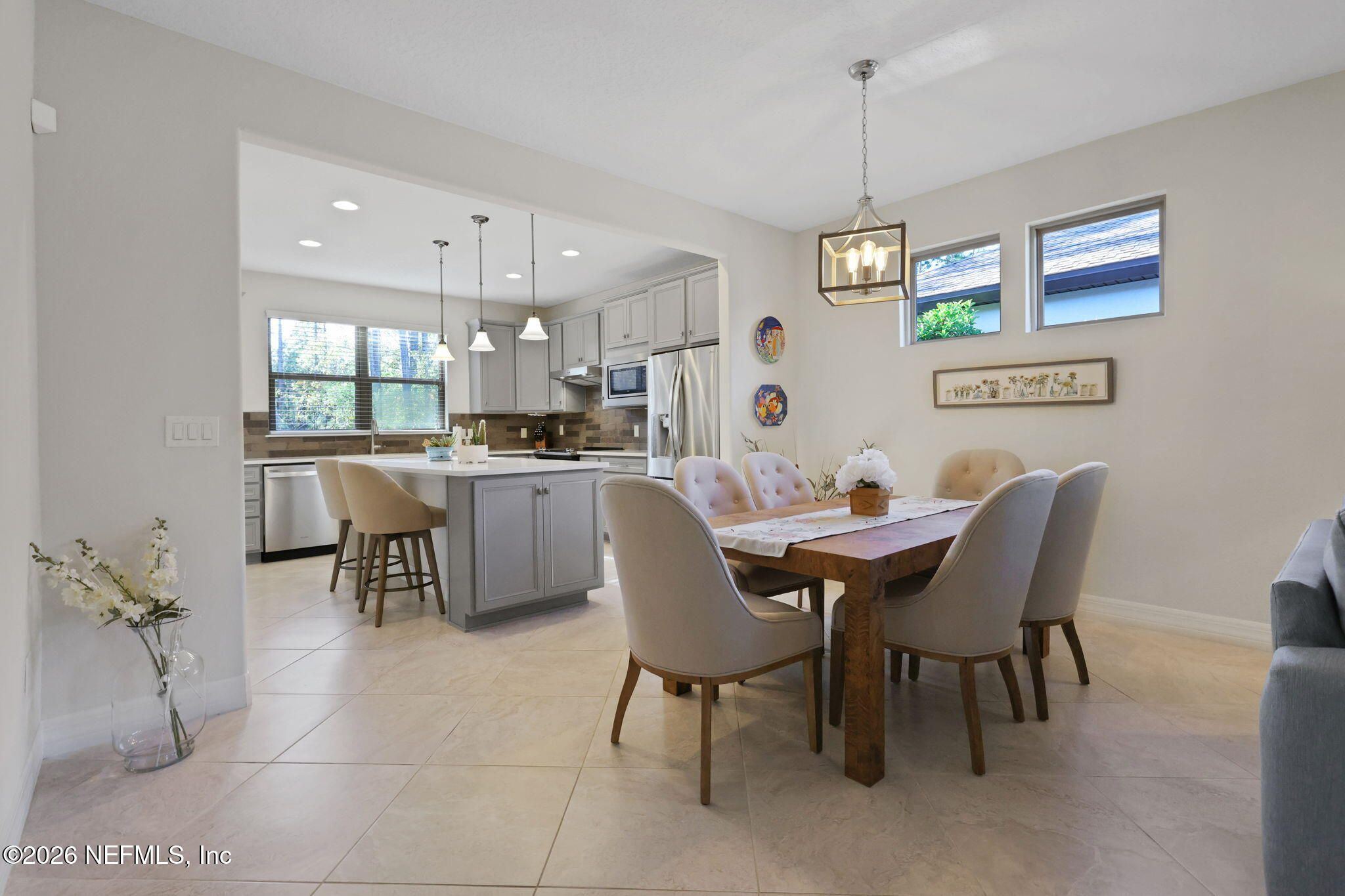 Welcome to easy living in this charming Taft Street floor plan, offering 2 bedrooms, 2 baths, and a versatile flex space perfect for an office. This light-filled home is ideally positioned with a nature Preserve behind and a neighbor on only one side, creating a serene setting. Inside, you'll find beautiful light gray cabinetry, quartz countertops, and stainless-steel appliances. Oversized porcelain tile laid on the diagonal enhances all main living and wet areas, adding both style and durability. This home truly moves in ready. Step outside to the extended screened lanai, where you can relax and enjoy tranquil nature views year-round. The location is unbeatable—just minutes from the Anastasia Club and offering resident-only access through the back gate. This home combines comfort, convenience, and the Del Webb lifestyle. Schedule your private showing today and start living your best life.