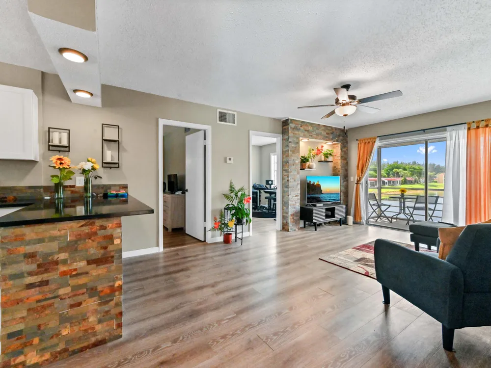 Seller willing to owner finance ! Prepare to be captivated by this gorgeously updated 2-bedroom, 2-bath condo, offering one of the most spectacular waterviews in Golden Lakes Community! This move-in ready residence has been meticulously renovated with an eye for modern design. The kitchen gleams with new cabinets, elegant quartz countertops, and sleek appliances, all complemented by updated fixtures. Throughout the living areas, new laminate floors and designer touches create a sophisticated ambiance. The master suite boasts a private dressing area with a new vanity and fixtures, ensuring a luxurious daily routine. New blinds and numerous other upgrades complete this home.