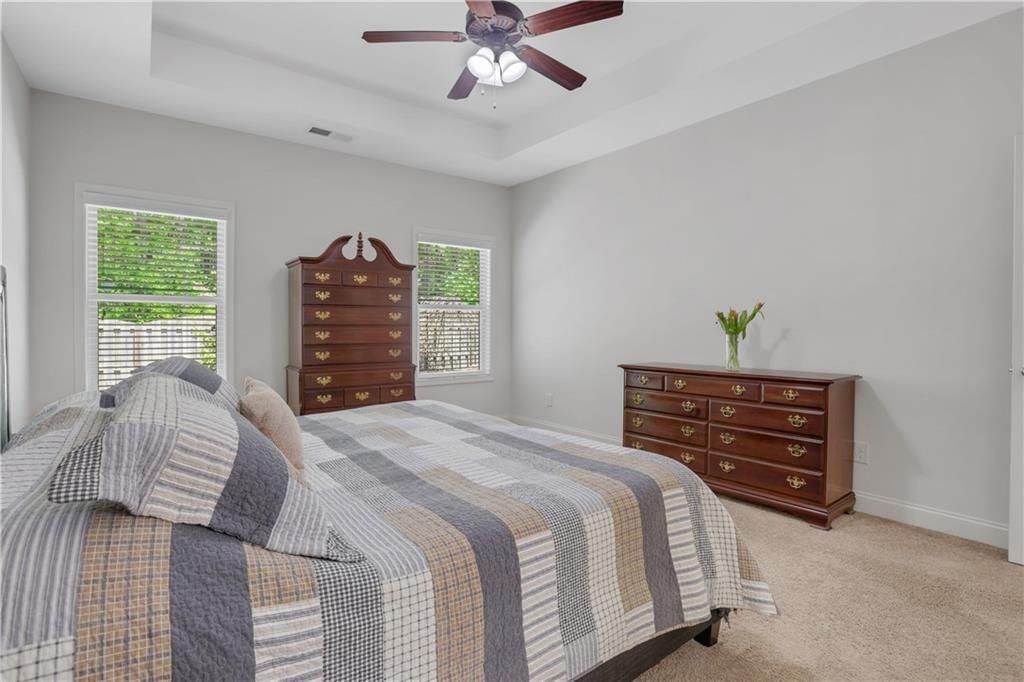 Just Listed | Pristine, Move-In Ready Home in Sought-After Piedmont Corners 55+ Community. Enjoy effortless, low-maintenance living in this beautifully upgraded, meticulously maintained four-sided brick ranch. Freshly painted and truly move-in ready, this home is designed for comfortable main-level living, featuring three bedrooms and two full baths on the main floor, including a spacious primary suite. The open-concept layout is perfect for both everyday living and entertaining, highlighted by 9-foot ceilings, hardwood floors, and extensive crown molding. The kitchen overlooks the great room and separate dining area and features granite countertops, a pantry, and a large eat-in island, all with views of the professionally landscaped backyard. The primary suite offers a tray ceiling, oversized custom walk-in closet, and convenient access to the laundry room. The en-suite bath includes dual vanities, a soaking tub, walk-in shower, and linen storage. The second level provides a fourth bedroom, full bath, and additional living space, ideal for guests, a home office, or hobbies. Step outside to a private outdoor retreat featuring custom hardscaping, stone pavers, ambient landscape lighting, and a firepit—perfect for relaxing or entertaining. The fenced backyard backs to a Corps of Engineers property that can not be developed, offering a peaceful and serene setting. Additional highlights include an oversized two-car garage with epoxy flooring, excellent attic storage, and a new roof (installed in December 2024) with 30-year architectural shingles. The HOA provides true lock-and-leave convenience, covering front- and side-yard landscaping, trash service, and exterior trim painting, along with resort-style amenities, including a clubhouse, fitness center, pool, cabana, and an active social calendar. Ideally located just minutes from Cumming City Center, shopping, dining, medical facilities, and GA-400, with easy access to the North Georgia mountains and Hartsfield-Jackson Atlanta International Airport. Welcome Home.