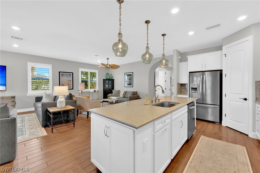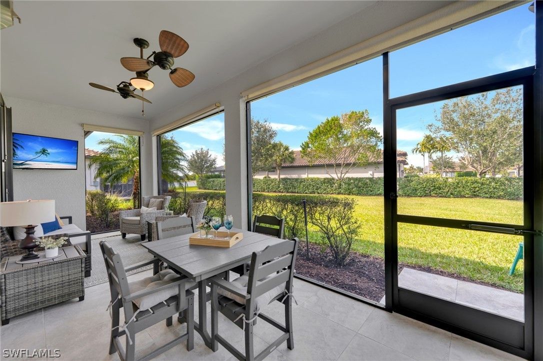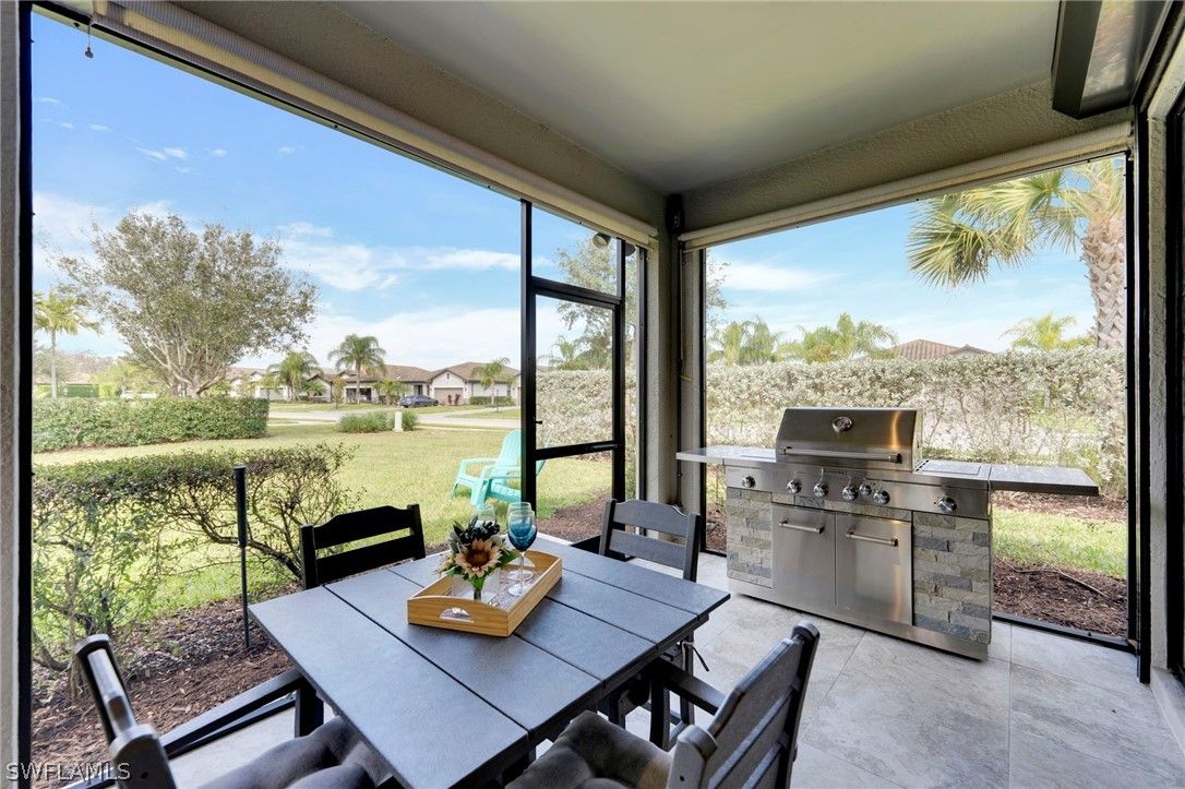 Live the Florida dream in this beautifully UPGRADED, TURNKEY-FURNISHED SUMMERWOOD HOME. Relax on your EXTENDED LANAI featuring UPGRADED PORCELAIN TILE overlooking a PARTIAL LAKE VIEW - the perfect spot to unwind after a day at the pool. The backyard is oversized with privacy hedges and plenty of space for future pool expansion. Enjoy complete peace of mind with ELECTRIC HURRICANE SHADES off the lanai, ATTACHED HURRICANE SHUTTERS on every window, a WHOLE-HOUSE GENERATOR, and a 500-GALLON PROPANE TANK. Inside, a CUSTOM BUILT-IN DROP ZONE awaits your pool or beach gear. The open concept features an EXTENDED GREAT ROOM that is bright and spacious with WOOD-PLANK TILE FLOORS, MODERN BLACK HARDWARE, and UPGRADED TRIM. The KITCHEN is a dream with QUARTZ COUNTERTOPS, LARGE ISLAND, STAINLESS STEEL APPLIANCES, and a CORNER PANTRY with CUSTOM WOOD SHELVING plus a WHOLE-HOME WATER FILTRATION SYSTEM. The PRIMARY SUITE offers KING-SIZED SPACE, NATURAL LIGHT, and a DREAM CLOSET, with BUILT-IN CUSTOM ORGANIZATION, while the ENSUITE BATH features a FUNCTIONAL LAYOUT with DUAL VANITIES. Two additional bedrooms include one with a BAY WINDOW and one with DOUBLE FRENCH DOORS, which would be ideal for a DEN, OFFICE, or GUEST ROOM, with a GUEST BATH conveniently located between them. The LAUNDRY ROOM is fully upgraded with CABINETRY, SINK, and FRONT-LOADING WASHER & DRYER on PEDESTALS. The 2.5-CAR TANDEM GARAGE boasts OVERHEAD STORAGE, a UTILITY SINK, and space for TWO CARS plus room for a GOLF CART or hobby area. Living in The Place at Corkscrew means every day feels like a vacation. Enjoy world-class amenities including a lagoon-style pool with waterfalls, 100-foot waterslide, splash pad, state-of-the-art fitness center, café, and a full-service restaurant and bar offering both indoor and outdoor seating. The community also features tennis, pickleball, bocce, basketball, and sand volleyball courts, plus a playground, dog park, and plenty of green space for outdoor enjoyment. For golf lovers, the adjacent Old Corkscrew Golf Club is undergoing a major transformation by acclaimed golf course architect Kyle Phillips. The completed redesign will showcase a 7,200-yard, par-71 course and new clubhouse, backed by a $40 million investment to position it among the region’s premier private golf destinations. Located just 1 mile from a brand-new Publix Plaza, 10 minutes from shopping and dining at Miromar Outlets and Gulf Coast Town Center, 15 minutes from RSW Airport, and only 30–40 minutes to the beautiful Gulf Coast beaches, this home offers the perfect blend of resort-style living and everyday convenience. Experience the best of Southwest Florida living at The Place at Corkscrew — where luxury, comfort, and convenience come together beautifully. Resort-style living with elegance and everyday comfort. Just bring your suitcase and start living the Southwest Florida lifestyle.
