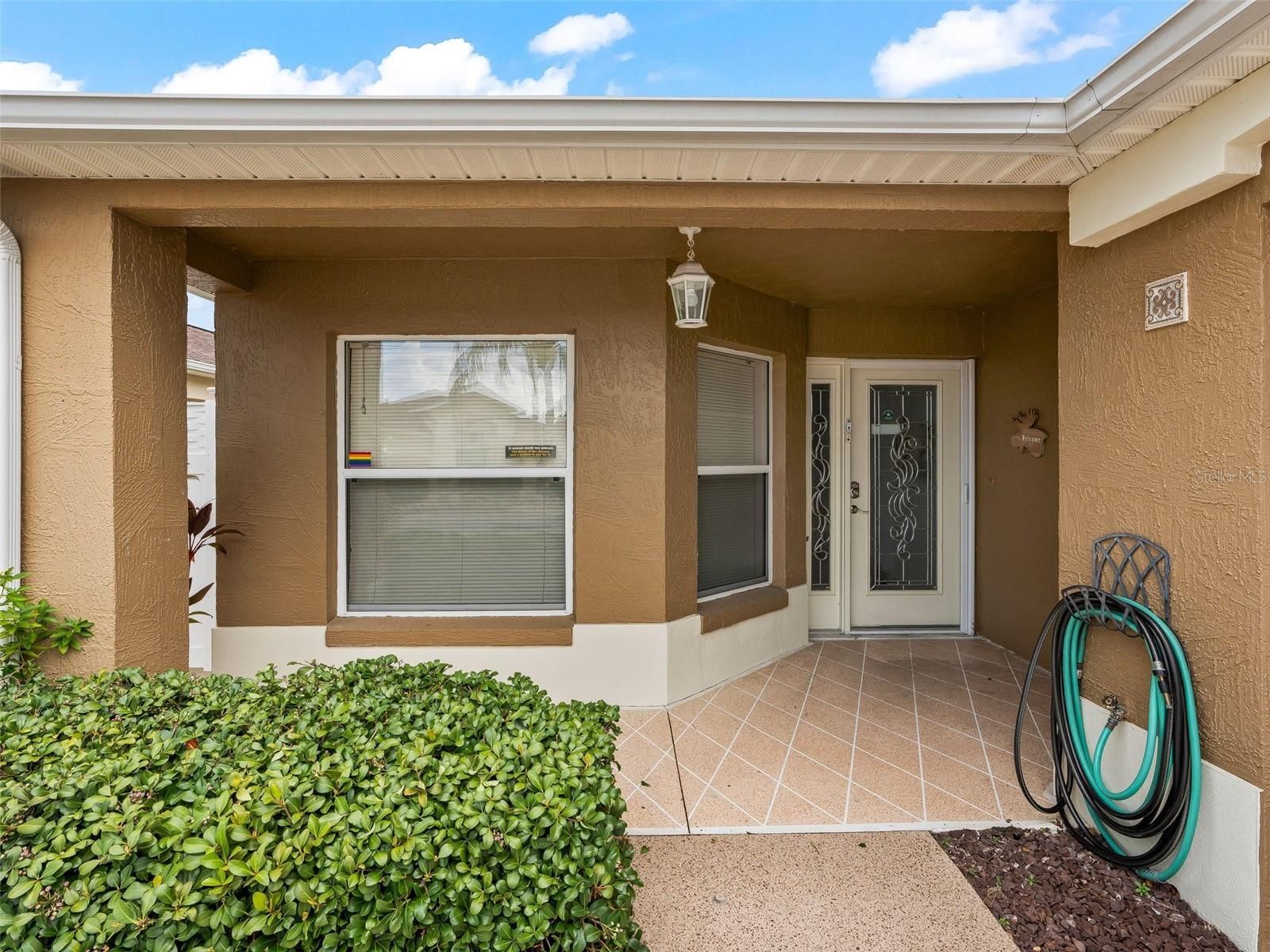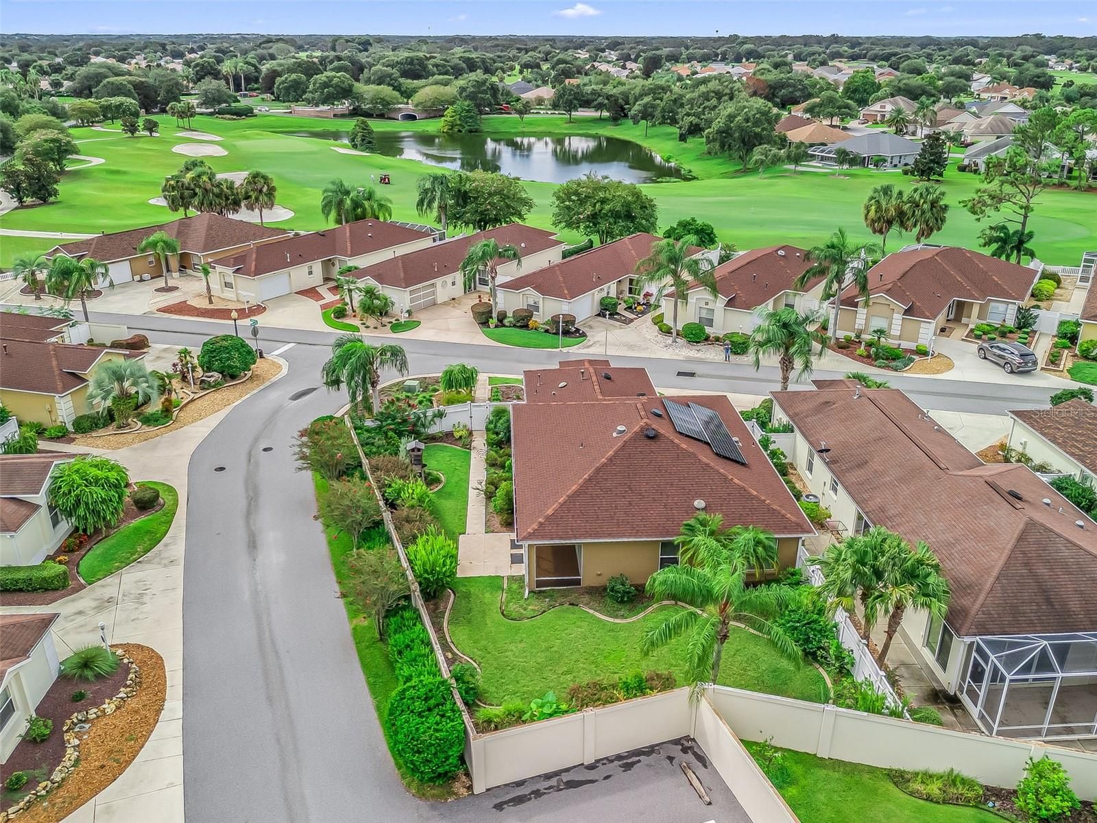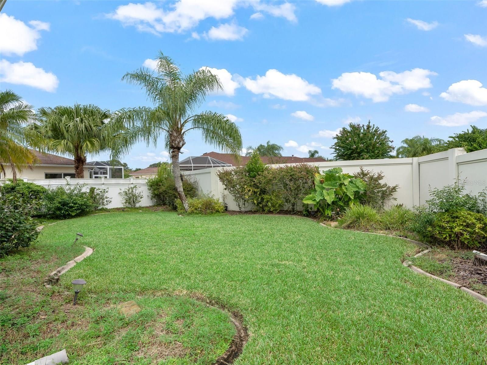 BACK ON MARKET *** BRAND NEW HVAC and HWH installed 12/25*** Welcome to The Villages lifestyle at its finest! This stunning 3 bedroom 2 bathroom Grantham Courtyard Villa offers the RARE END UNIT CORNER LOCATION with a MASSIVE PRIVATE COURTYARD where there’s plenty of room for your dream pool installation, birdcage, outdoor kitchen….the possibilities are endless. Step inside to discover an incredibly OPEN FLOOR PLAN showcasing gorgeous QUARTZ COUNTERTOPS throughout and luxury VINYL PLANK FLOORING with tile in all wet areas for easy maintenance. The kitchen features sleek BLACK STAINLESS STEEL appliances and flows seamlessly into the spacious living areas perfect for entertaining. The primary bedroom retreat includes an EN SUITE BATH, generous WALK-IN CLOSET, and french doors opening directly to your own SCREENED LANAI with CHATTAHOOCHEE RIVER ROCK FLOORING. Two additional bedrooms provide flexibility for guests or a home office while the convenient INSIDE LAUNDRY adds to everyday comfort. Outside, the incredible COURTYARD is limited only by your imagination. It’s already a lovely space with established professional landscaping, decorative curbing for minimal upkeep, and some grass for your pets' comfort . There's ample space for that dream pool you've always wanted PLUS room for an additional GOLF CART GARAGE to store all your Villages essentials. The 1.5 CAR GARAGE provides excellent storage while SOLAR PANELS help keep those Florida electricity costs manageable year-round. This BLOCK AND STUCCO construction ensures durability and low maintenance living. The Village's amenities are at your doorstep including championship golf courses, recreation centers, shopping, dining and endless entertainment options. Don't miss this exceptional END UNIT opportunity in America's premier active adult community where every day feels like vacation! ROOF REPLACED 2021. HVAC 2025. LOW LOW BOND BALANCE 2,829.45