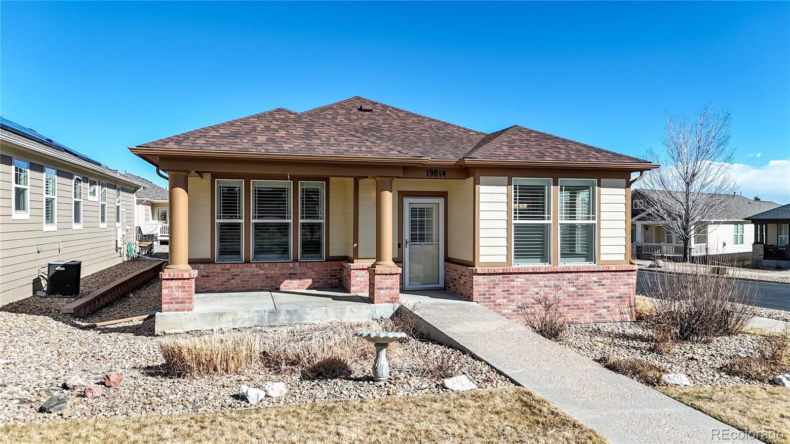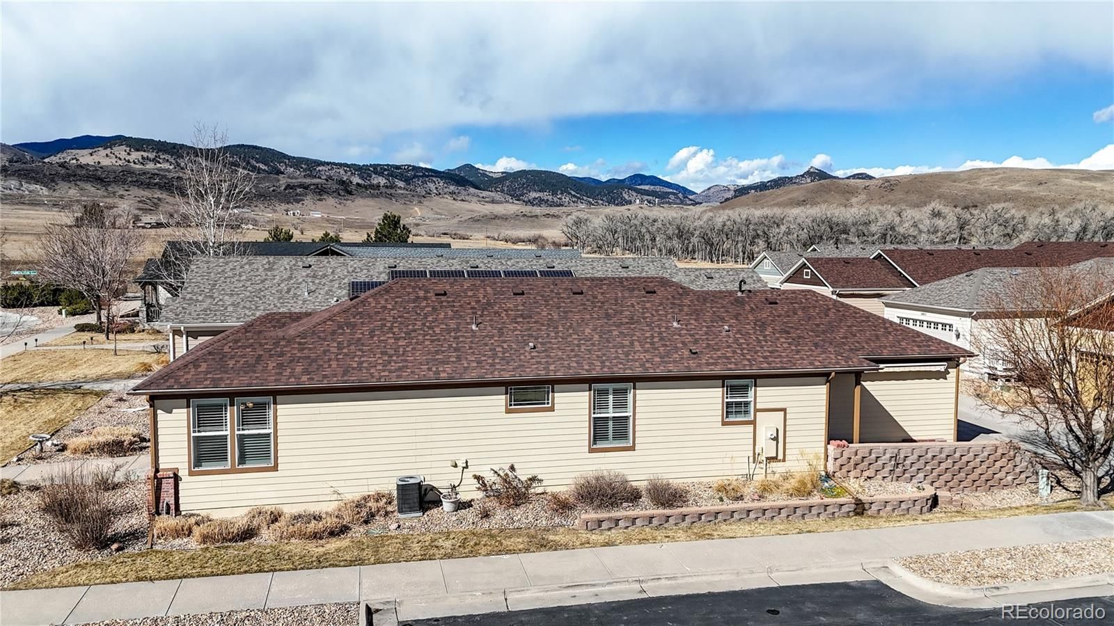 Nestled near the breathtaking Rocky Mountain Foothills, this beautifully upgraded ranch-style home offers effortless, low-maintenance living in a desirable 55+ community. Situated on a corner lot, the HOA covers exterior landscaping, lawn mowing and watering, plant trimming, and even snow removal right up to your front door, truly a lock-and-leave lifestyle. Step inside to discover modern upgrades throughout, including gleaming maple wood floors, granite countertops, and elegant Plantation Shutters. With zero interior stairs from the front door to the back door (just two from the garage), this home offers convenient single-level living. The spacious primary suite features an oversized walk-in closet and a luxurious 4-piece bath with a walk-in shower. Generously sized rooms and 9-foot ceilings create an open, airy feel, while abundant windows fill the home with that Colorado natural light. At the heart of the home, the inviting family room with a cozy gas fireplace flows seamlessly into the gourmet eat-in kitchen. You’ll love the 21 natural Cherrywood cabinets, pantry, expansive granite countertops, and high-end GE Profile stainless steel appliances — including a gas cooktop, double ovens, dishwasher, and microwave. The large laundry room makes everyday tasks enjoyable, complete with upper and lower Cherrywood cabinetry, folding counter space, and a deep utility sink. A versatile drop zone off the garage offers room for a home office, exercise space, or welcoming foyer. Enjoy nearby trails, open space, and neighborhood parks for year-round hiking and biking. Located just minutes from downtown Golden’s dining and cultural amenities, with easy access to I-70, 6th Avenue, and C-470, this home combines peaceful surroundings with exceptional convenience. Recent updates include a new roof (2025) and new furnace (2026). Don’t miss this rare opportunity in a prime Golden location — schedule your showing today before it’s gone!