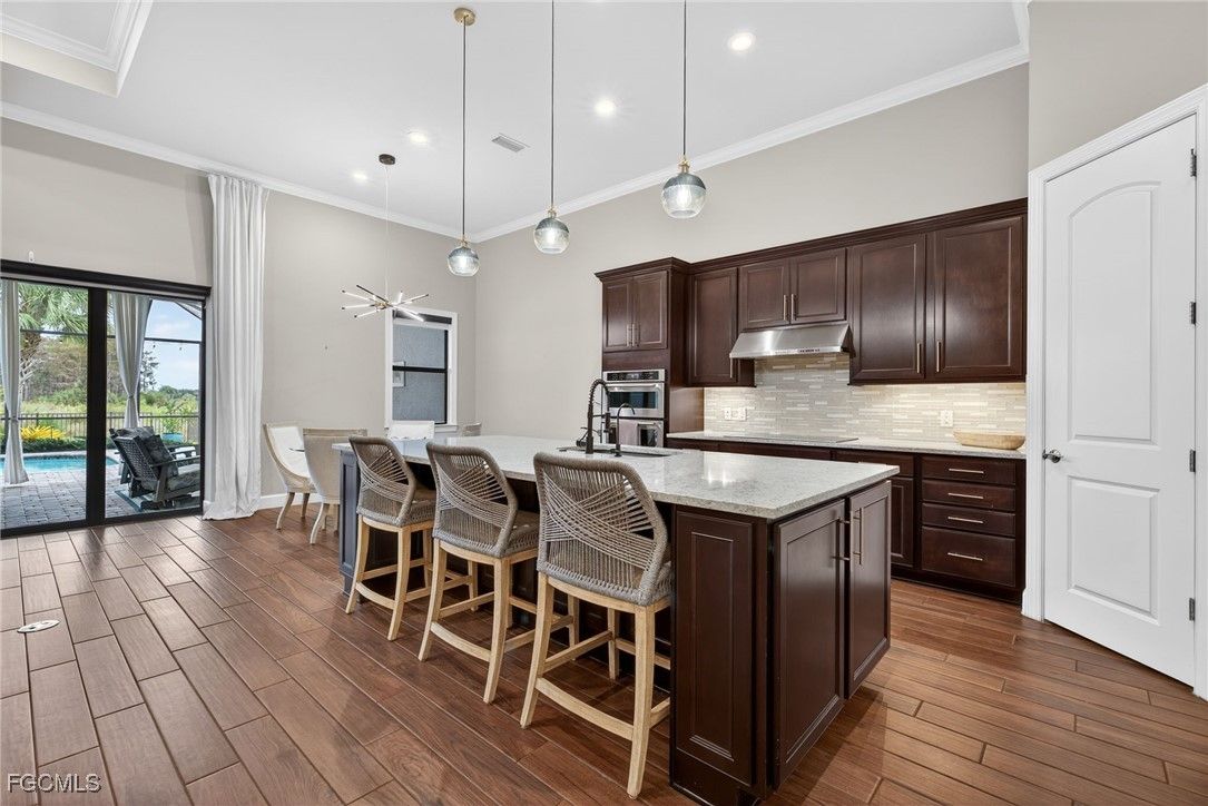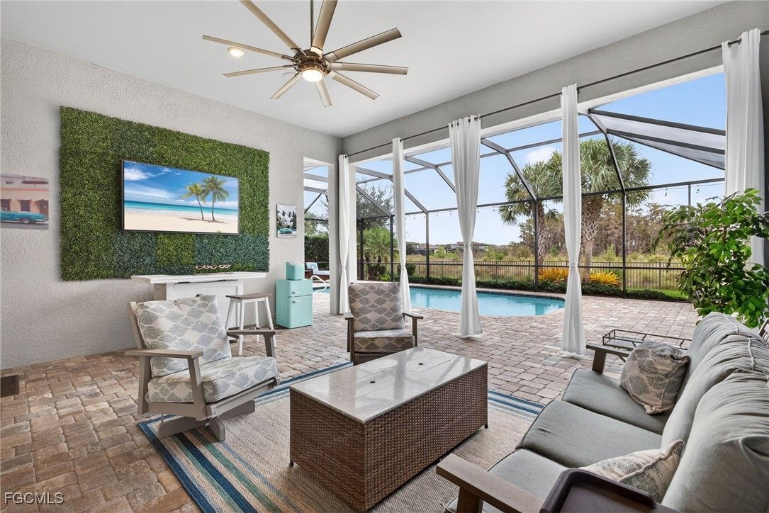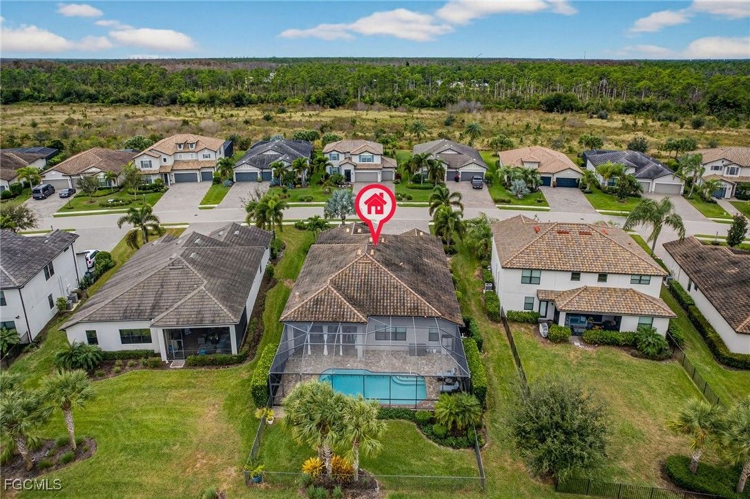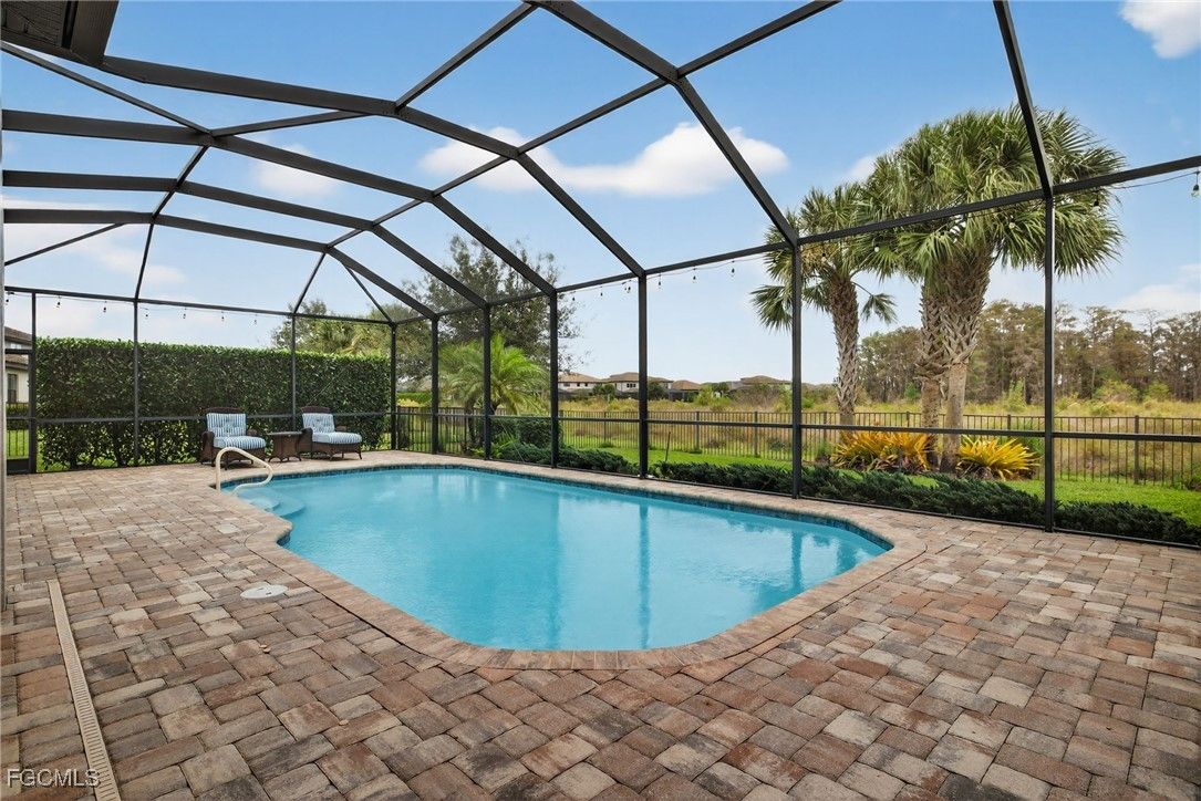 Experience uncompromising Florida luxury and convenience in this meticulously curated 4-bedroom + den, 3-bath estate home built by Pulte. The Creekview floor plan is more than a home—it's an elevated lifestyle delivered. Step inside to an expansive, open-concept living space defined by designer tile floors, elegant plantation shutters, and a great room ready for entertaining the moment you move in. The gourmet kitchen is a chef's dream, featuring premium soft-close cabinetry, sleek finishes, and a Butler's pantry area with built-in wine fridge, additional storage cabinetry and workstation! Your private oasis awaits on the extended, screened lanai. Relax in the heated pool, surrounded by custom, lush landscaping and fence. The lanai is already plumbed for an outdoor kitchen, making your future al fresco dining effortless. Enjoy peace of mind and incredible storage with the oversized, extended 3-car garage (including attic access) and essential upgrades: hurricane-impact windows/doors, a whole-house generator, a premium water filtration system, and a recently added pool autofill. The luxury extends to the details: spa-inspired bathrooms boast frameless glass showers, and the master suite features a truly custom closet system. Best of all? The golf cart and furniture are available with the home if interested, offering immediate move in and access to the resort-style amenities! Outside of your home and within the gates of The Place at Corkscrew amenities include a resort style pool with 100-ft long water slide, café and marketplace, kids club, playground, tennis courts, pickleball courts, two story fitness center, basketball court and more! Come see why The Place has been one of the best selling communities. Your neighbors are waiting!