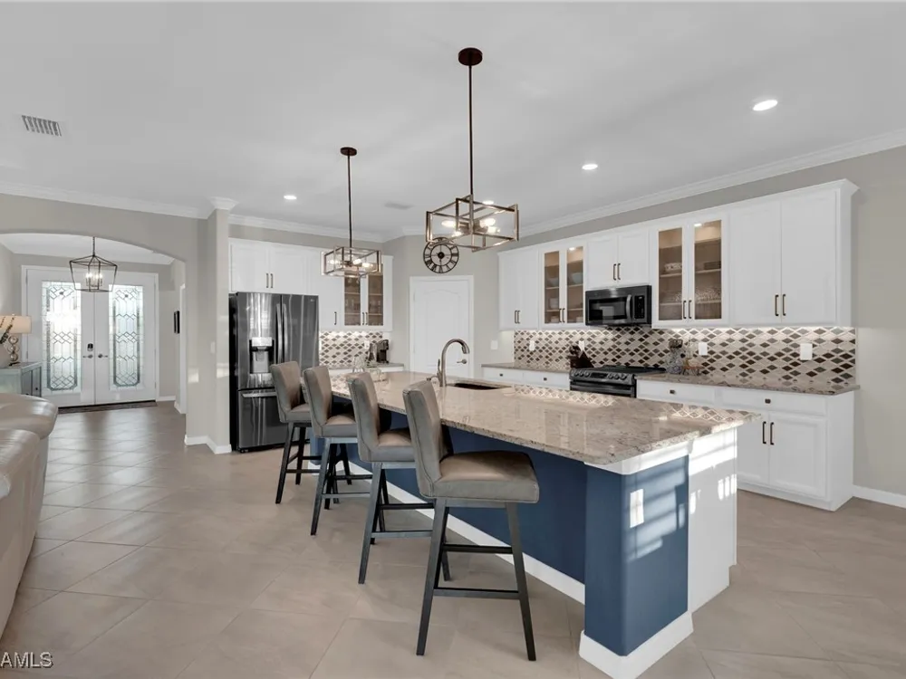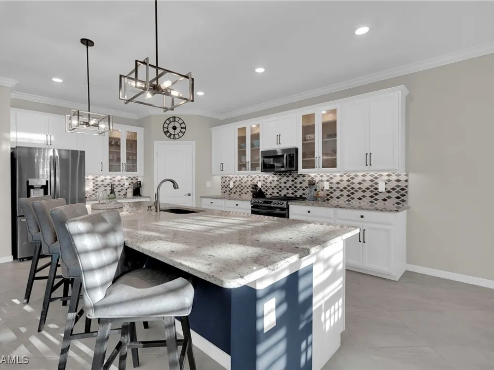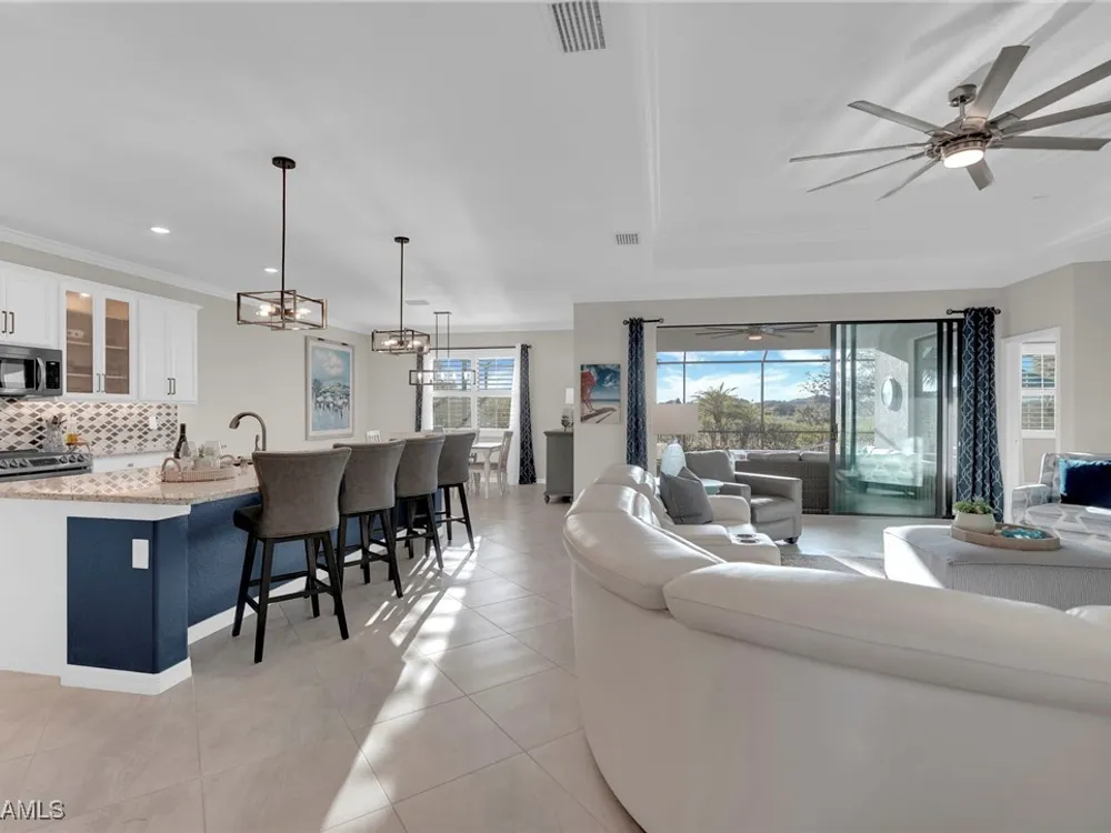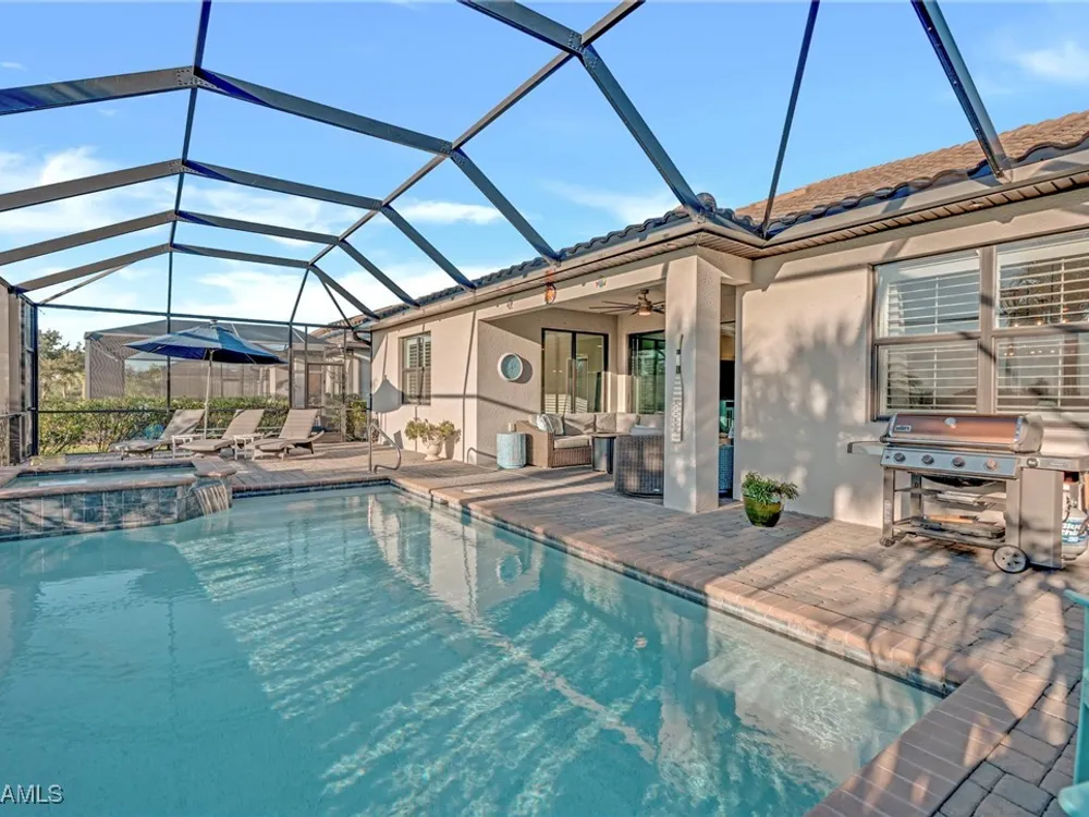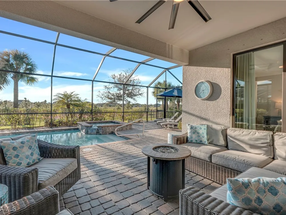 Experience elevated single-level living in this popular SUMMERVILLE MODEL packed with upgrades and PRESERVE VIEWS. Offering 2,445 SQ FT, this home features 3 BEDROOMS, 3 FULL BATHS, and a DEN on an EXTRA-DEEP 65-FT HOMESITE with PARKING FOR UP TO 9 CARS. Step inside to an OPEN LAYOUT with TRAY CEILINGS, CROWN MOLDING, and DESIGNER LIGHTING. The kitchen impresses with an 11-FT GRANITE ISLAND, LG STAINLESS-STEEL APPLIANCES, CUSTOM GLASS-INLAY CABINETS, and MODERN BACKSPLASH. Under and upper cabinet lighting are the perfect finishing touch to make this kitchen stand out from the rest. Relax outdoors in your PRIVATE SALTWATER POOL with WATERFALL SPA, surrounded by LUSH LANDSCAPING, custom LIGHTING and PRIVACY HEDGES. The primary suite offers LANAI ACCESS, TRAY CEILING, DUAL WALK-IN CLOSETS, and a SPA-INSPIRED ENSUITE. Two GUEST SUITES, a VERSATILE DEN, UPGRADED LAUNDRY ROOM, and a 3-CAR INSULATED GARAGE complete the home. Homes like this don’t stay on the market—schedule your showing today before it’s gone! Living in The Place at Corkscrew means every day feels like a vacation. Enjoy world-class amenities including a lagoon-style pool with waterfalls, 100-foot waterslide, splash pad, state-of-the-art fitness center, café, and a full-service restaurant and bar offering both indoor and outdoor seating. The community also features tennis, pickleball, bocce, basketball, and sand volleyball courts, plus a playground, dog park, and plenty of green space for outdoor enjoyment. Located just 1 mile from a brand-new Publix Plaza, 10 minutes from shopping and dining at Miromar Outlets and Gulf Coast Town Center, 15 minutes from RSW Airport, and only 30–40 minutes to the beautiful Gulf Coast beaches, this home offers the perfect blend of resort-style living and everyday convenience. Experience the best of Southwest Florida living at The Place at Corkscrew—where luxury, comfort, and convenience come together beautifully. THE PLACE AT CORKSCREW—resort-style living with elegance and everyday comfort.