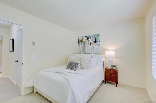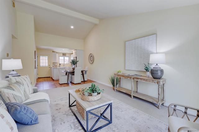 View facing unit! Top level unit offers the convenience of no neighbors above you and stunning views! This charming condo is in an ideal location overlooking lush greenery! Nestled in High Country Villas, a sought after 55+ community in Encinitas with amazing amenities. Beautifully updated and move-in ready featuring a recently remodeled kitchen with ample cabinetry, granite counter tops, farmhouse sink, and modern appliances. Highlights include high ceilings, custom shutters, updated bathrooms with new vanities and Toto toilets, Berber carpet in the living room and primary bedroom, and a 1 car garage. The picturesque community boasts a serene park-like setting, communal swimming pool, pickleball court, golf course, trails, and activities. Conveniently close to visitor parking for your guests' ease and just minutes away from the beach!