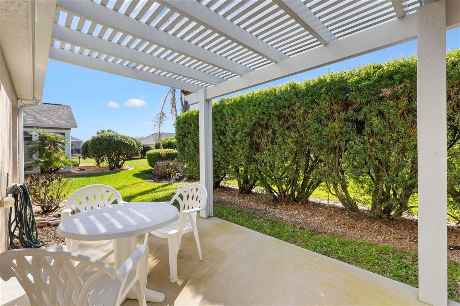 NEW ROOF AND WATER HEATER 2025, HVAC 2022, BOND PAID IN FULL! Your dream retirement awaits in THE VILLAGES, FLORIDA and best of all, there is NO BOND! Welcome to a stunning 3 Bedroom, 2 Bath home ideally positioned on a spacious corner lot in the highly desirable VILLAGE OF WINIFRED, where the lifestyle is as impressive as the home itself. This vibrant golf cart community invites you to enjoy mornings by the pool, afternoons on championship or executive golf courses, and evenings filled with live entertainment at the town squares, all just a short golf cart ride from your front door. With recreation centers, exceptional dining, and endless shopping and activities nearby, every day feels like a vacation. Step inside and you’ll immediately appreciate the elegance and comfort this home offers. Gleaming HARDWOOD Floors flow beautifully throughout the main living areas, complemented by TILE in the wet areas and plush carpeting in the guest bedrooms. CROWN MOLDING adds a refined touch throughout, while a newer HVAC system installed in (2022) ensures year round comfort. Major updates provide peace of mind, including NEW ROOF (2025) and NEW WATER HEATER (2025). Inside laundry room. Outside, the professionally landscaped yard creates a private, tranquil setting, enhanced by a lush privacy hedge in the rear. Whether you’re relaxing or entertaining, you’ll love the SCREENED LANAI with BRICK PAVERS and the charming patio featuring a PERGOLA perfect for enjoying Florida’s beautiful weather. To make your move even easier, the FURNITURE and GOLF CART with newer batteries and a drip system are included allowing you to start living the lifestyle you’ve been dreaming of. Opportunities like this don’t come along often. Come experience the energy, convenience, and excitement of life in The Villages, Florida! Schedule your private showing today before this exceptional home is gone.