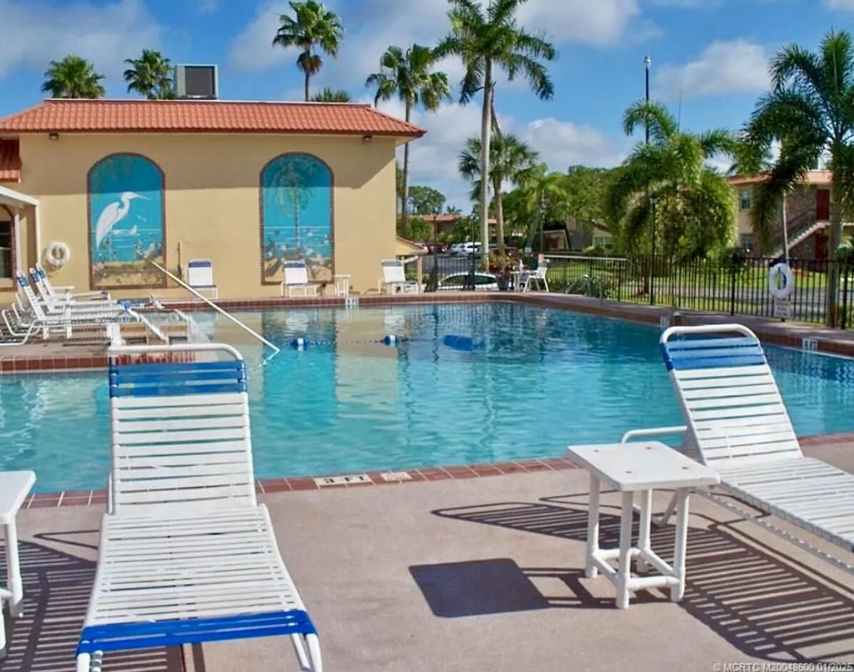 Golfers and river enthusiasts—this one's for you! This beautifully updated Monterey condo is available and offered fully furnished in a desirable 55+ community. The vibrant yacht club overlooks the St. Lucie River, where you can enjoy stunning sunsets, fish from the dock, or launch your kayak. As a resident, you have access to a private course featuring a par 30 golf course and a wide range of activities (bocce ball, shuffle board..etc)all included in your monthly fee. This second-floor end unit offers privacy and a bright, open feel w/ peek a boo water views Recent updates include laminate flooring throughout, 2 renovated bathrooms, newer appliances and AC, plus a new roof accordion shutters for peace of mind. Relax on your private balcony and enjoy the Florida lifestyle year-round. Don't miss the chance to own this special retreatwhether for the winter season or as your full-time home. Schedule a showing today!