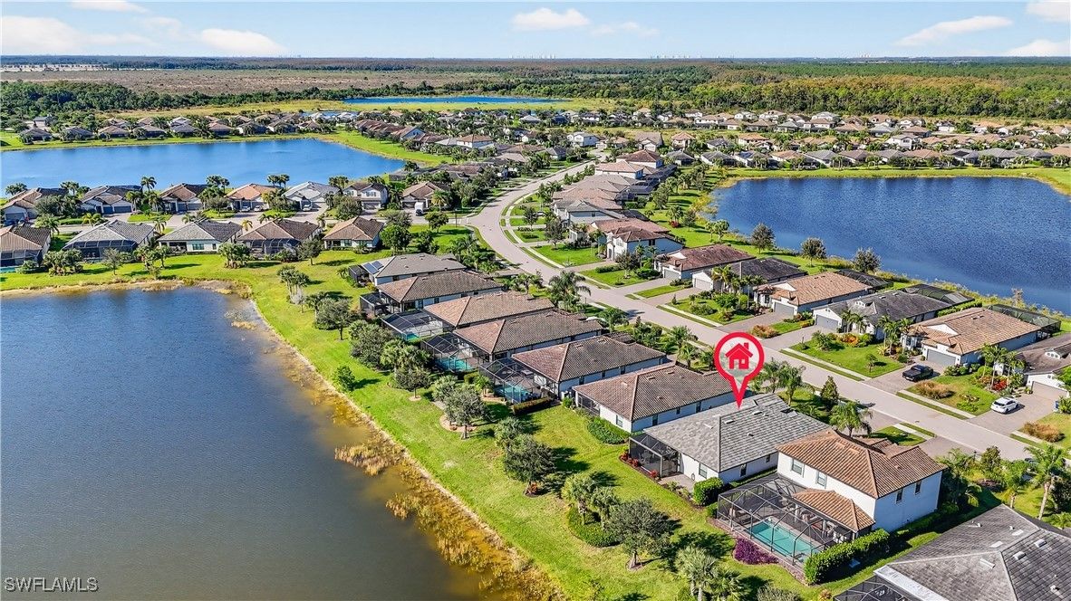 Welcome to this bright and welcoming 4-bedroom, 3-bathroom home located on one of the BEST HOMESITES in the highly sought-after community of THE PLACE AT CORKSCREW. Perfectly positioned on one of the best lakefront lots in the entire neighborhood, this oversized lot and residence offers breathtaking panoramic water views that can be enjoyed from the spacious open-concept living area, extended screened lanai, and additional outdoor patio—ideal for relaxing or entertaining. And there is plenty of room for a POOL! Inside, the home features a thoughtfully designed floor plan with abundant natural light, modern finishes, and a seamless flow between the kitchen, dining, and living spaces. The kitchen offers white cabinets, a center island with natural stone counter tops and stainless steel appliances. The primary suite shows the lake view and includes a luxurious ensuite bath with soaking tub, and two generous closets. With three guest bedrooms there is space for all of your friends and family. Living at The Place at Corkscrew means enjoying resort-style amenities every day. The community boasts an impressive lagoon-style pool with a waterfall and slide, a full-service restaurant and bar, café, and fitness center. Residents also enjoy pickleball, tennis, and basketball courts, a playground, dog park, and community events throughout the year. With its unbeatable lake views, spacious layout, and access to one of Southwest Florida’s premier lifestyle communities, this home truly offers the best of Florida living. The Place is conveniently located close to the best shopping and restaurants that Estero has to offer and is only miles from RSW International Airport.