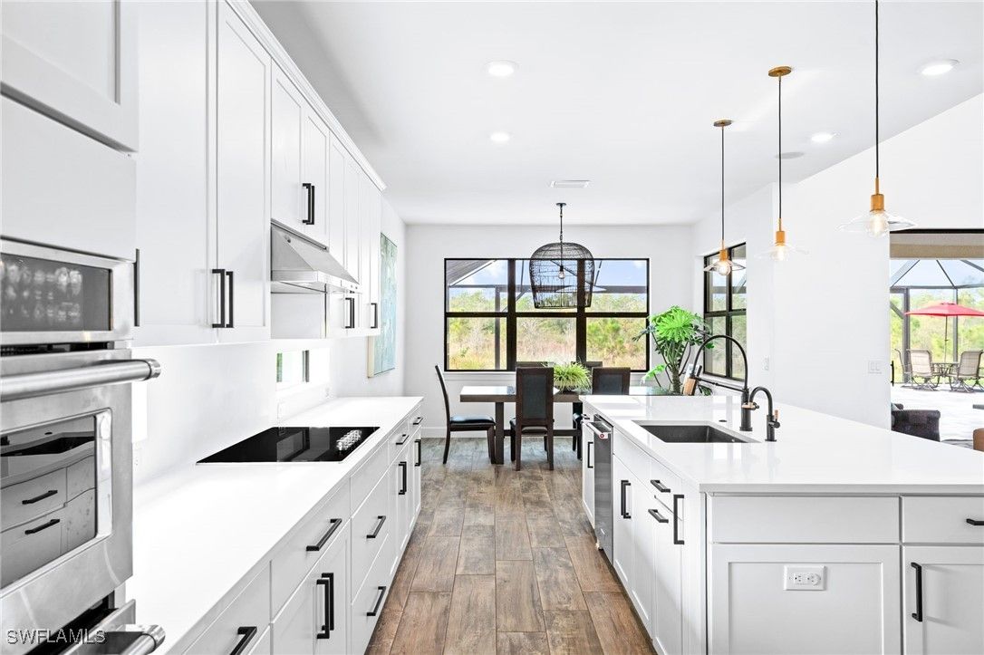 BEAUTIFUL POOL HOME WITH CUSTOM UPGRADES - OVERSIZED LANAI - SW PRESERVE VIEWS - IN THE PLACE AT CORKSCREW! This luxurious Heatherton residence features 5 Bedrooms + Den, 4.5 Bathrooms with a 3-CAR EXTENDED GARAGE and 4248 sq. ft. of beautifully designed living space. Enhanced with high-end finishes and designer details throughout. The main level showcases a custom-built coffee bar/butler’s pass-through with quartz countertops, an OVERSIZED PANTRY with new custom shelving, BUTLERS PANTRY/WINE CLOSET, PORCELAIN TILE FLOORS, a first-floor ensuite bedroom and bathroom, powder room, a custom drop-zone/mudroom with built-ins, and a private office/den featuring built-in cabinetry and desk. The GOURMET KITCHEN offers white shaker cabinets, QUARTZ COUNTERS, stainless steel appliances, double oven, and reverse osmosis system, all overlooking a dramatic TWO-STORY GREAT ROOM with a fireplace. Additional upgrades include a WHOLE-HOME KINETICO WATER FILTRATION system, SONOS SOUND SYSTEM, NEW BUILT-IN CLOSETS throughout, designer lighting, a newly UPDATED LAUNDRY ROOM with cabinets, counters, and utility sink. Upstairs, luxury vinyl flooring leads to a stunning Owner’s Suite with French doors to a sitting room, preserve-view windows, DUAL CUSTOM WALK-IN CLOSETS, and a spa-like bathroom with quartz vanities, freestanding soaking tub, and large walk-in shower. A guest suite with ensuite bathroom and custom closet, and Jack-and-Jill bedroom layout complete the upper level. Step outside to a custom SALTWATER POOL with SUN SHELF and 360-DEGREE SPILLOVER SPA, an oversized 50' x 45' Lanai with a 40-ft PICTURE WINDOW SCREEN, and private southwest-facing preserve views—perfect for sunset evenings. This property is NOT IN A FLOOD ZONE, offering added peace of mind. Living at The Place at Corkscrew offers unmatched RESORT-STYLE AMENITIES including a 100’ waterslide pool, restaurant, bourbon bar, café, outdoor bar, fitness center, movement studio, tennis, pickleball, bocce, basketball, playground, dog park, childwatch services, and spa treatments—all with low HOA fees. This is luxury living at its finest! PUBLIX GROCERY STORE... JUST 1.4 MILES AWAY... IS OPEN along with DUNKIN DONUTS, UPS STORE, LEGNO ITALIAN RESTAURANT, NAIL AND HAIR SALON, HEARTLAND DENTAL, and more to come! THIS PROPERTY QUALIFIES FOR A 1% LENDER INCENTIVE IF USING PREFERRED LENDER, INQUIRE FOR MORE DETAILS** Several Renderings that showcase furniture have been virtually staged
